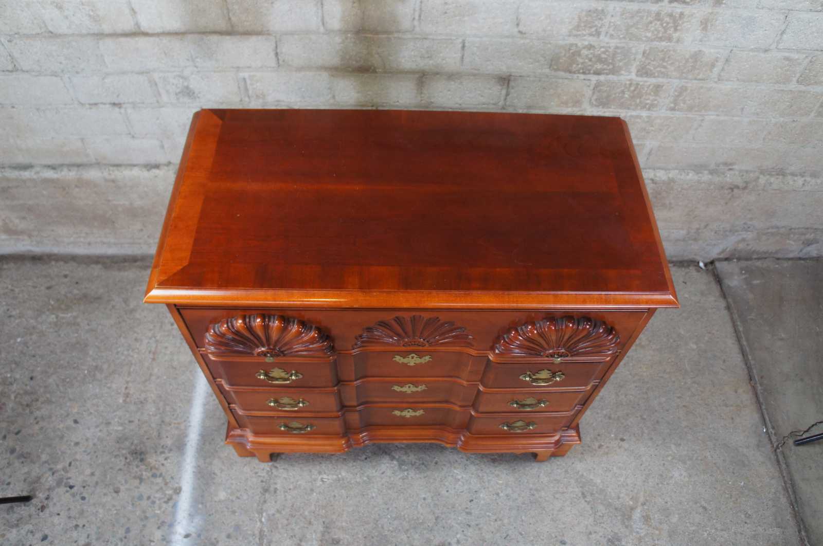 Late 20th century American Craftsman blockfront chest by Stanley Furniture. Made from cherry with classic chippendale styling. Features 4 drawers and brass hardware. # 05-13-19