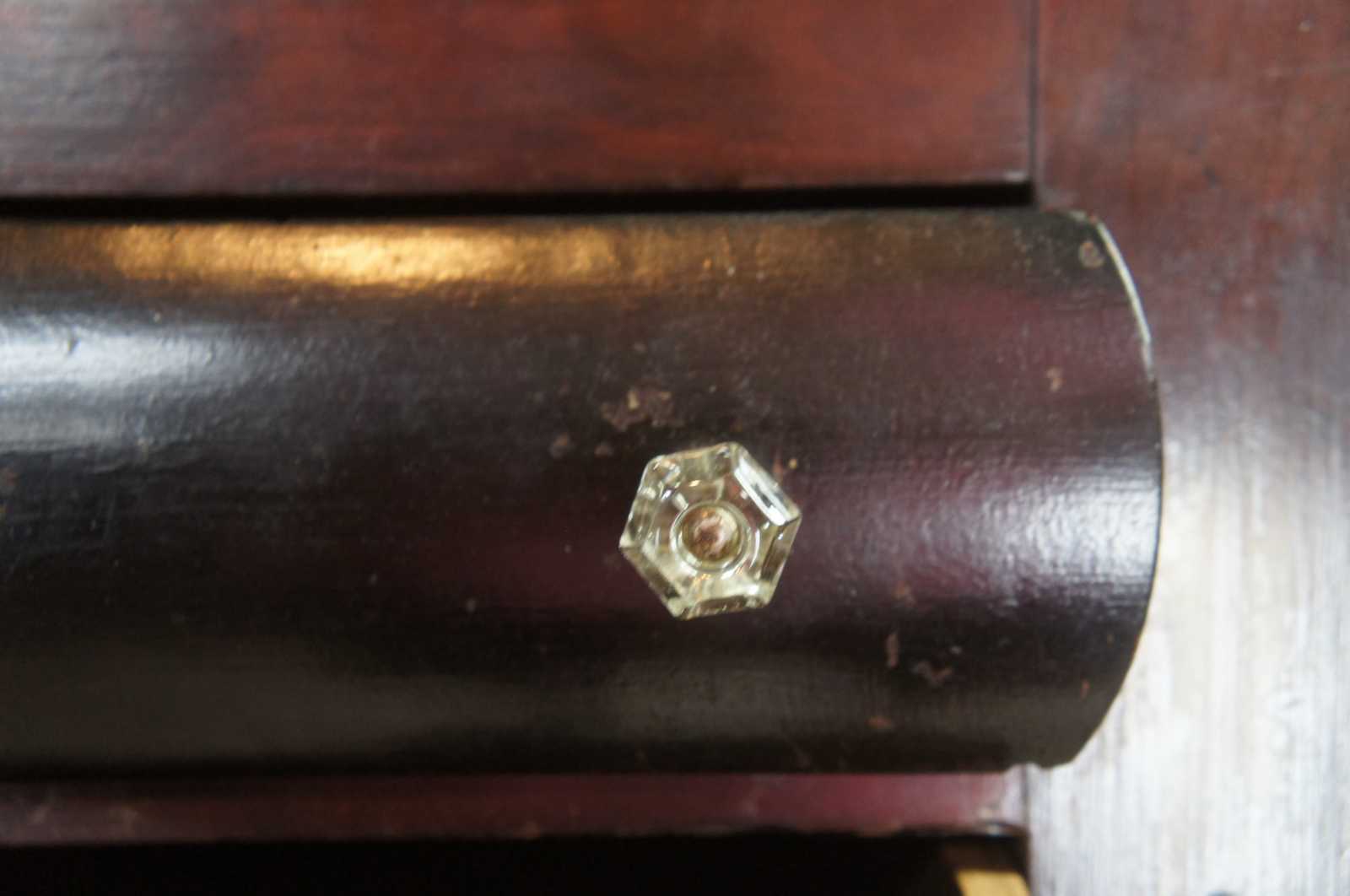 Mid 19th century American Empire tall boy chest. Features a rectangular form with scrolled front. Made from walnut with 6 drawers, glass knobs and double casters.
