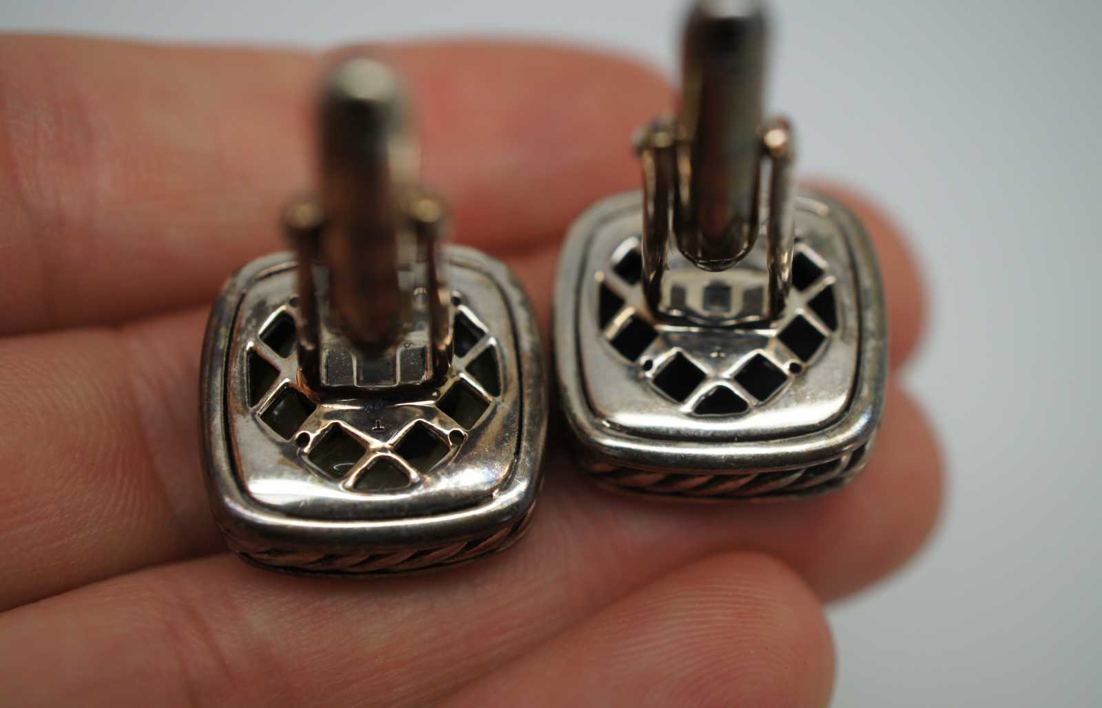 Vintage David Yurman sterling silver cufflinks with rope twist cable edges and square onyx center. Includes original bag.