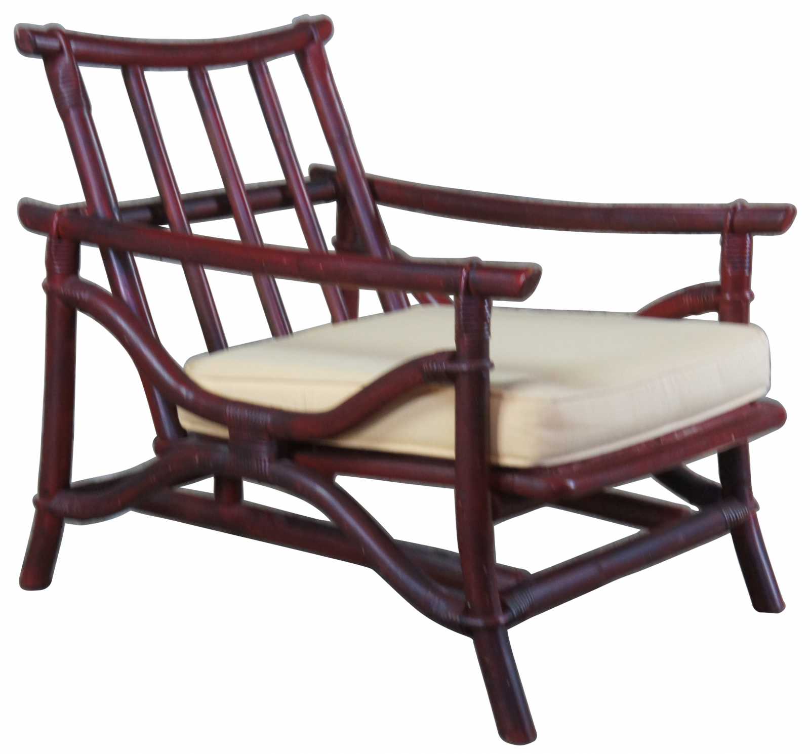 Vintage mid century 1960s Ficks Reed lounge chair designed by John Wisner for the Far Horizons collection introduced in 1954.. Made of bamboo and rattan featuring chinoiserie inspiration.
