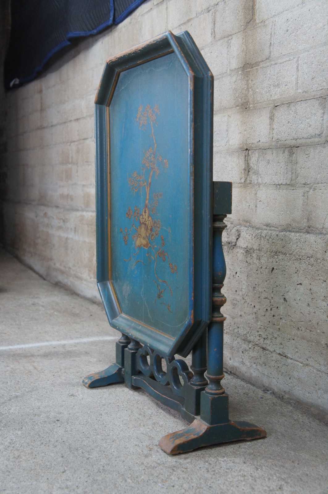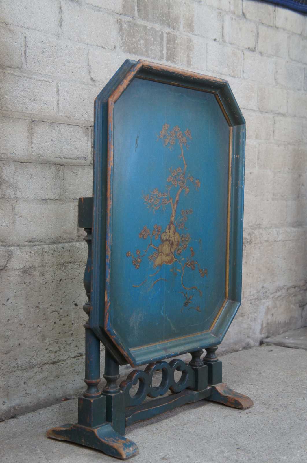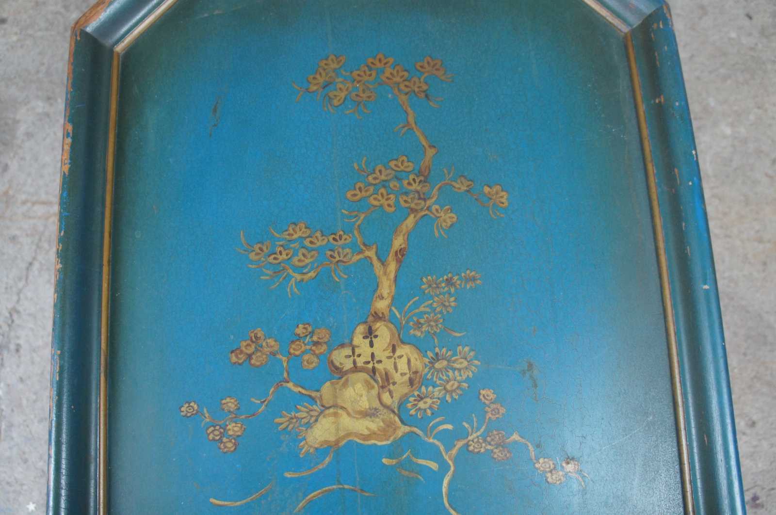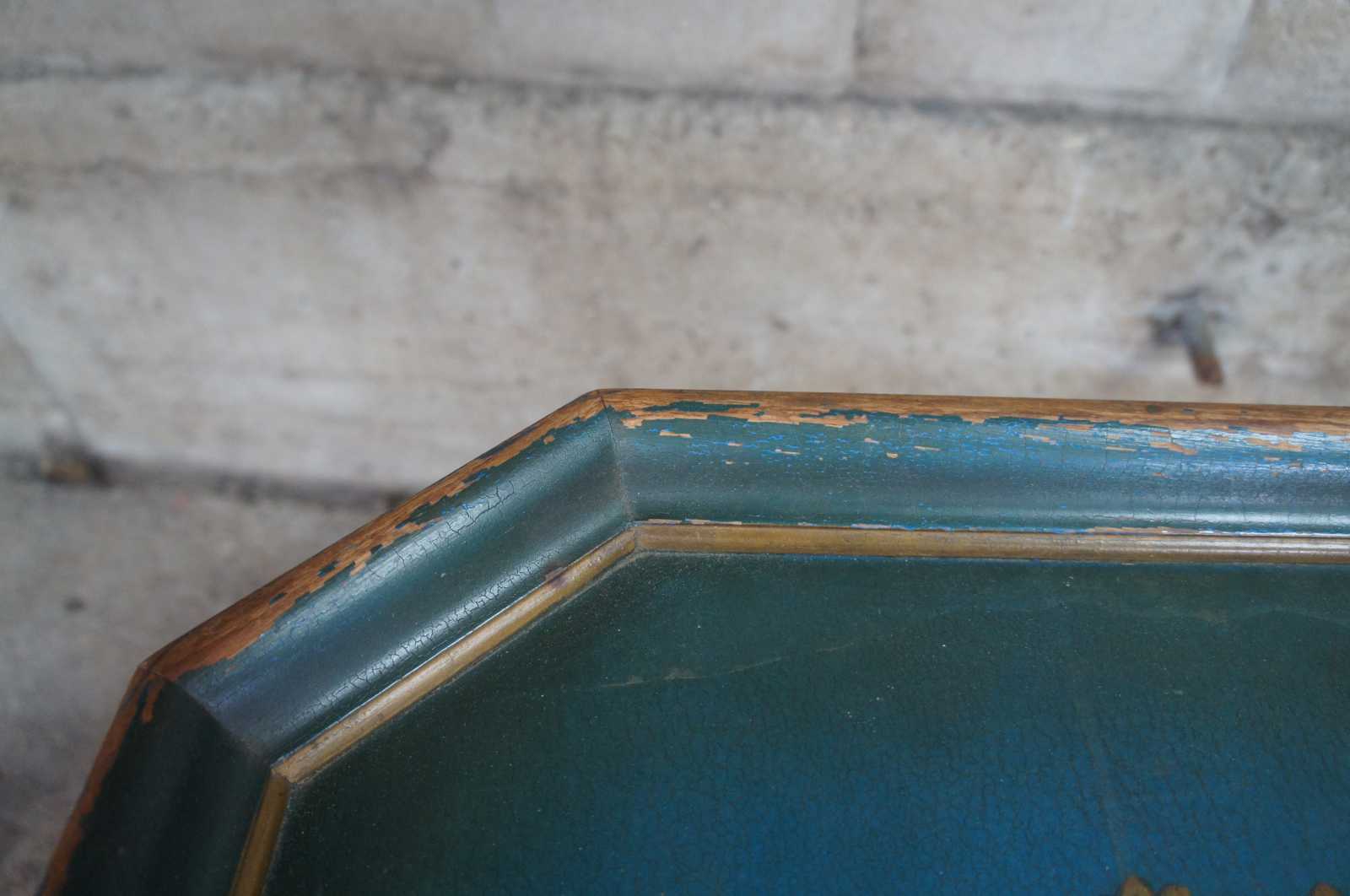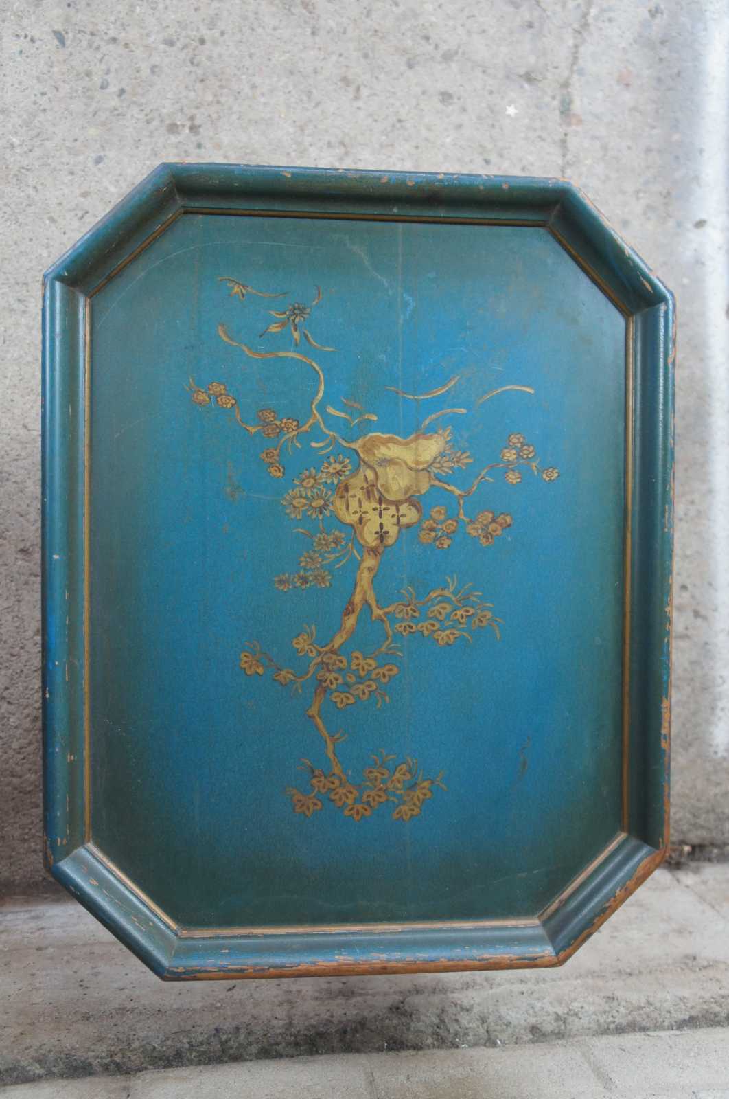 Early 20th century William & Mary style side/ tea table. Features a gateleg design with turned supports and octagonal tray with ogee edge. Finished in a bohemian blue with cherry blossom tree in gold.