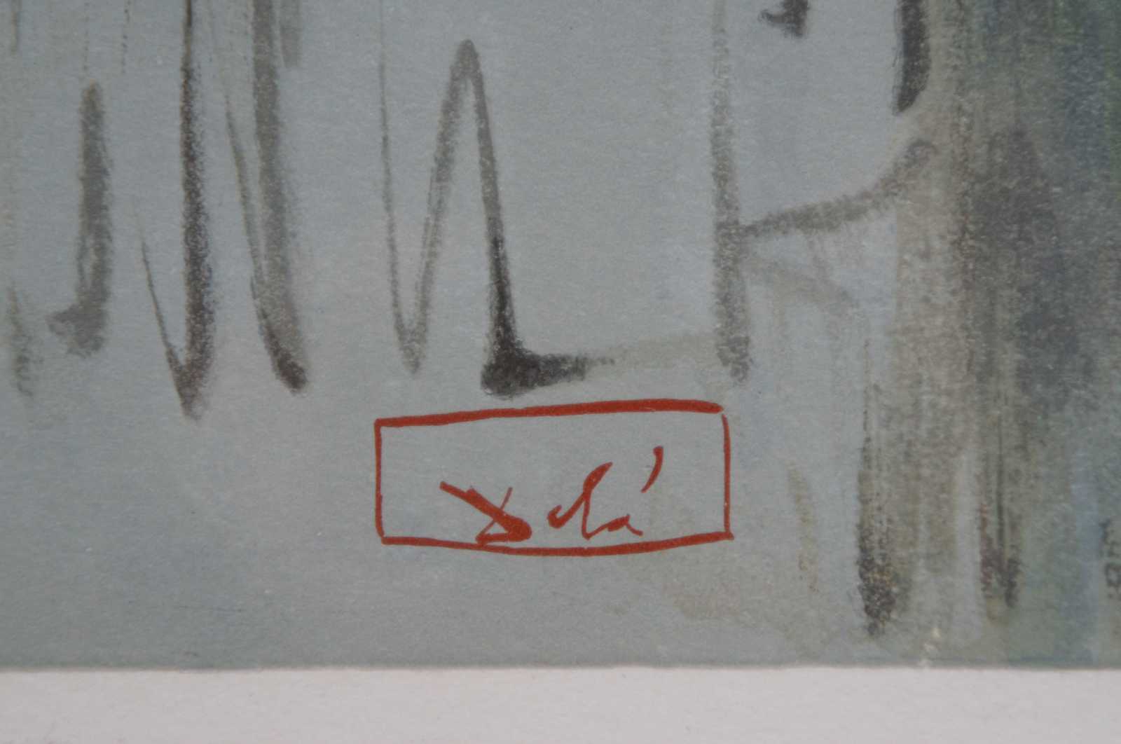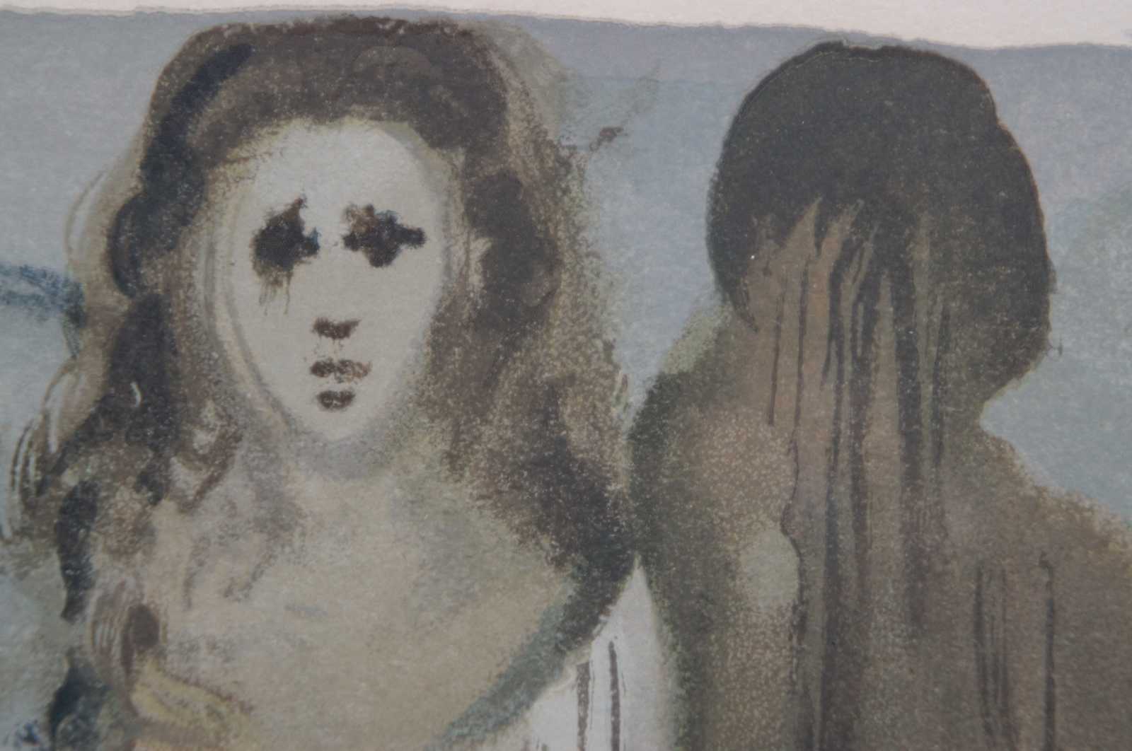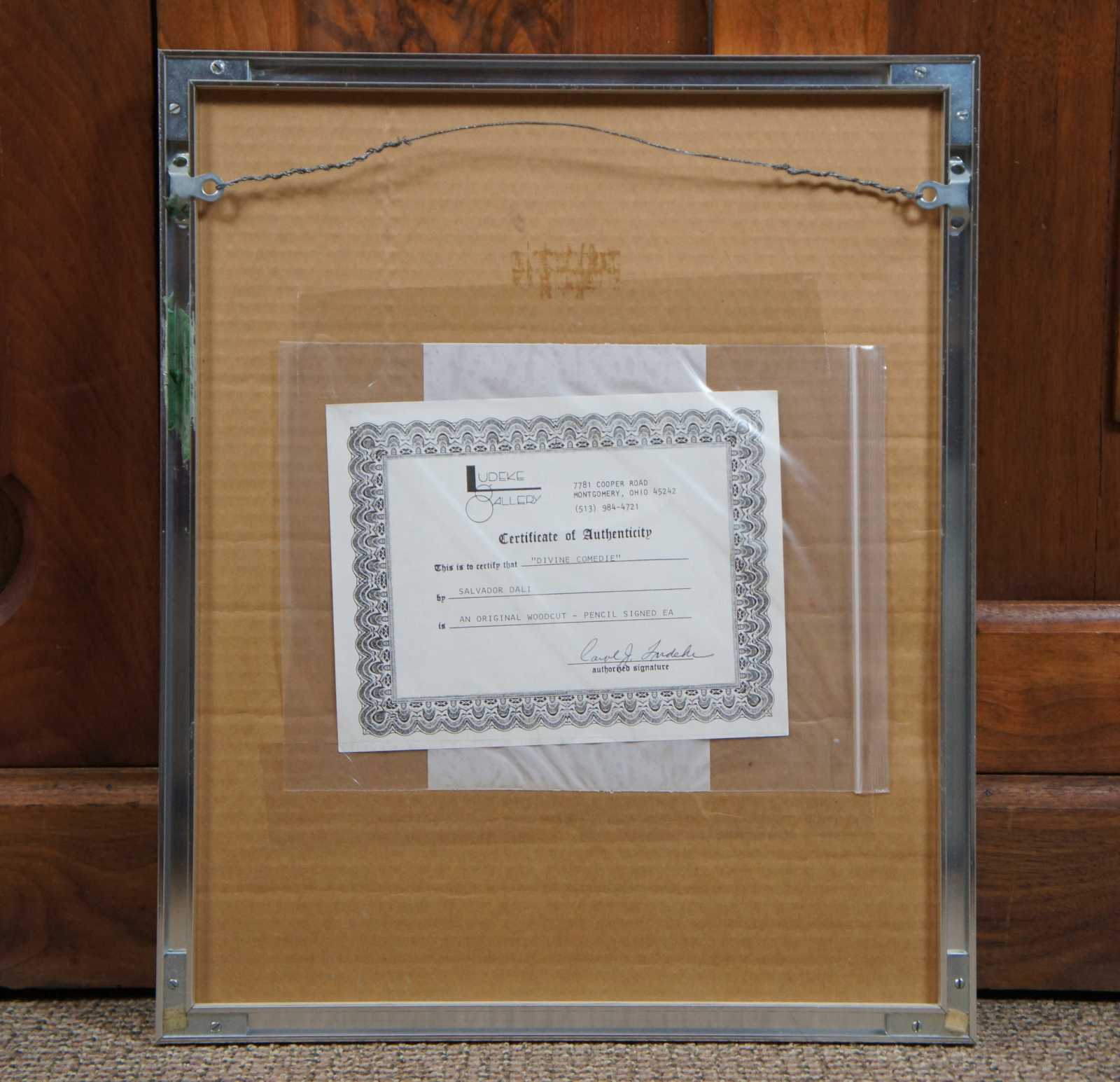 Framed original woodcut artist’s proof print, pencil signed by Salvador Dali - Purgatory Canto 16 from the “Divine Comedie” series. Includes certificate of authenticity.