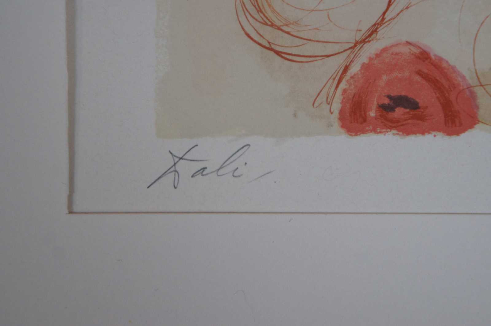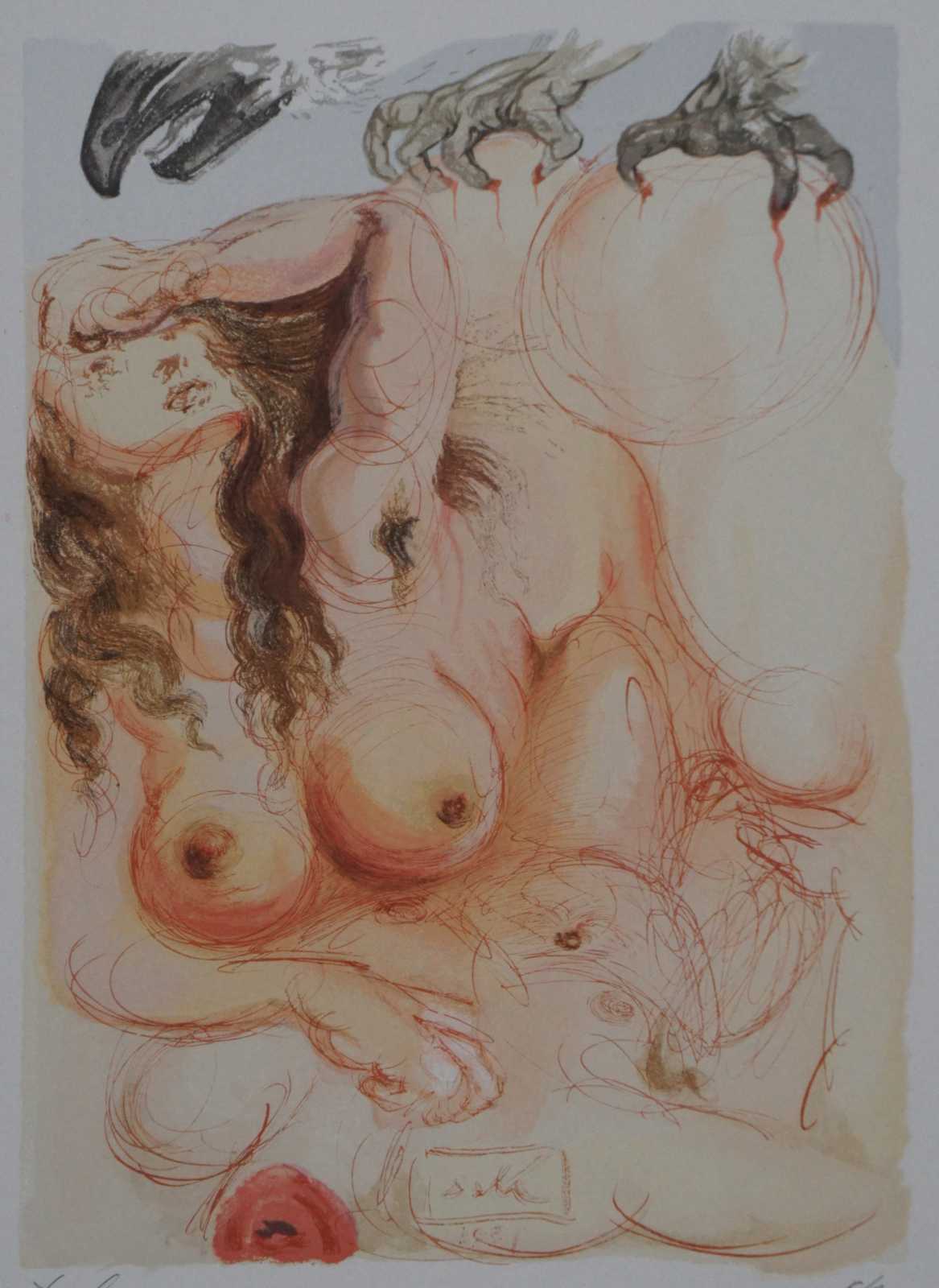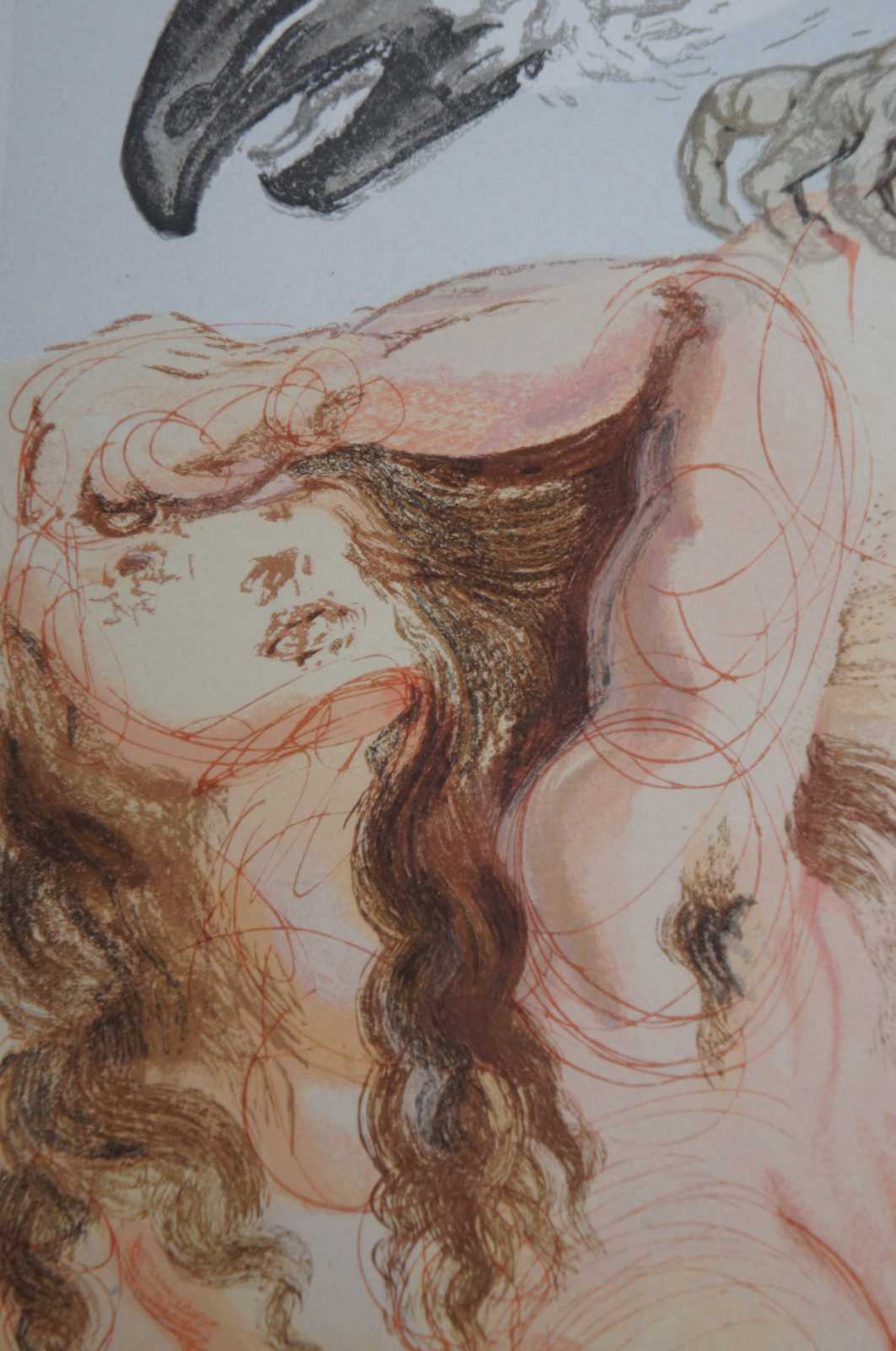 Original woodcut artist’s proof print on BFK Rives paper, pencil signed lower left by Salvador Dali – Plate 43 – Chant/Canto 9 – from Le Purgatoire (Purgatory) – “Le Songe” (The Dream) from the “Divine Comedie” series. Original certificate of authenticity covered 10 separate prints – photocopy included.