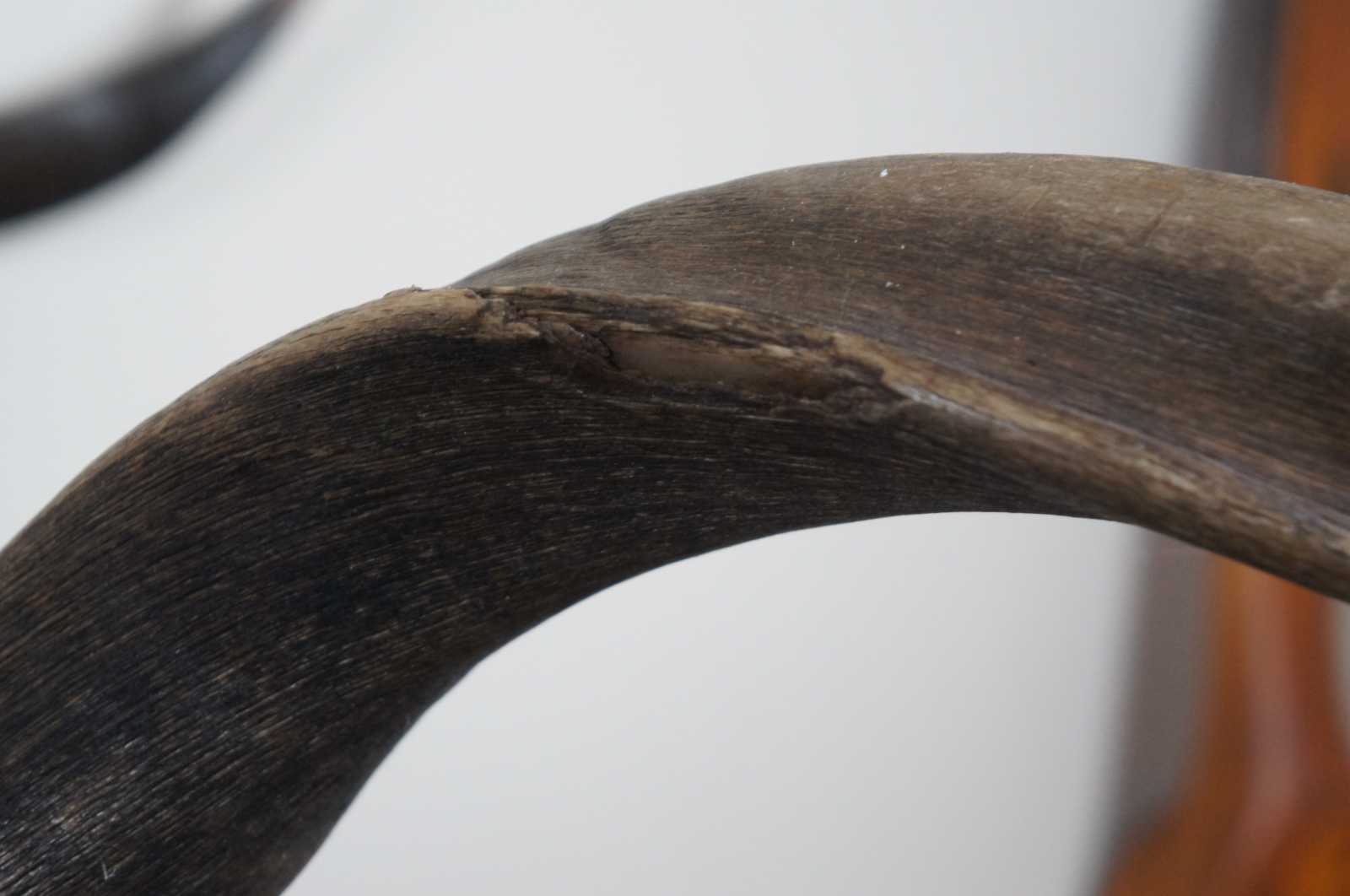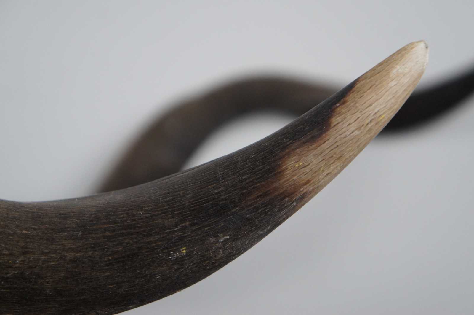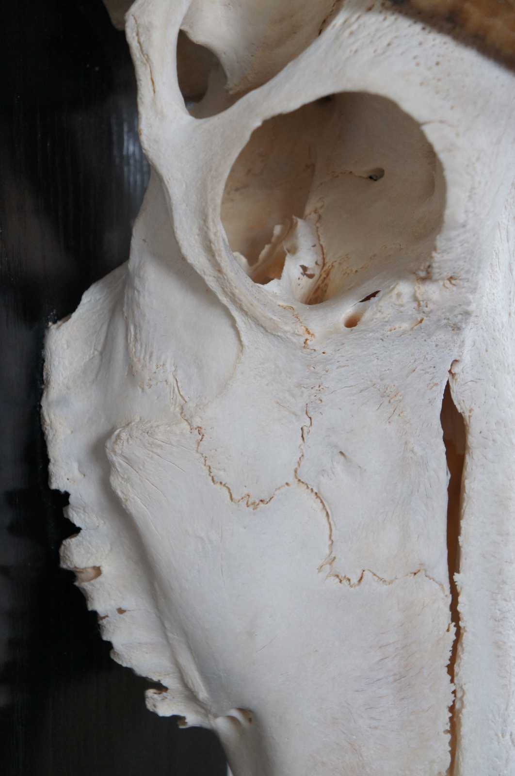 32” x 18” x 43” (Width x Depth x Height); horns measure 36"