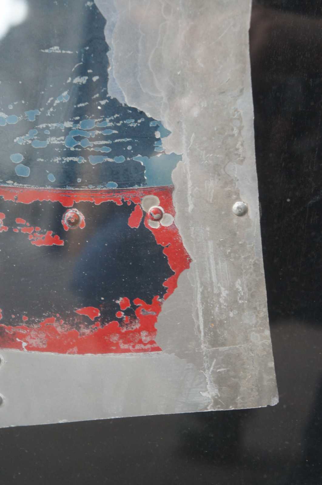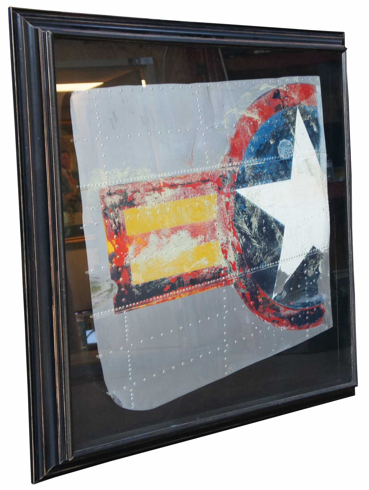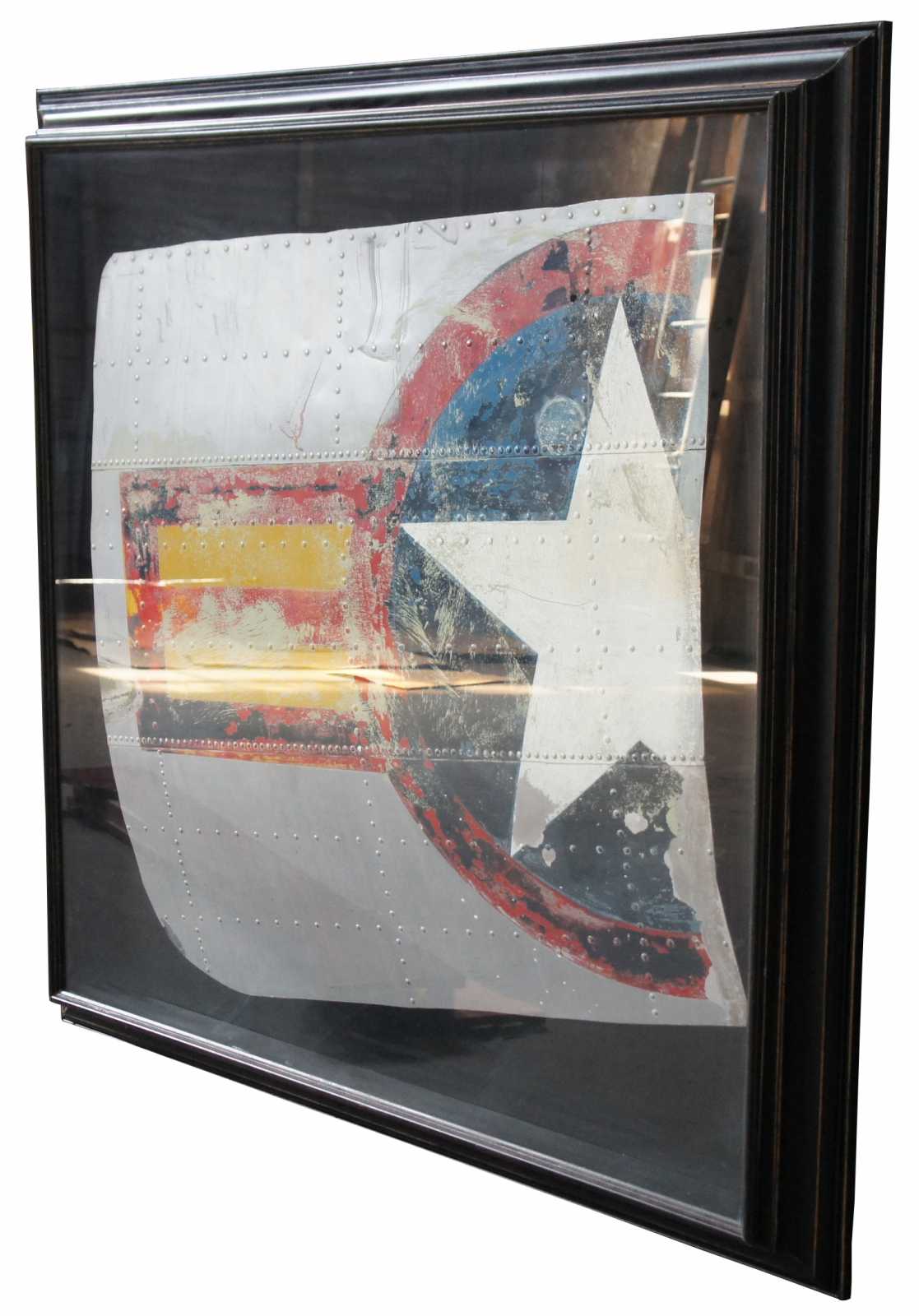 Antique World War II era United States Army Air Force airplane fuselage segment, mounted in a shadowbox frame and featuring the stars and bars decal insignia.