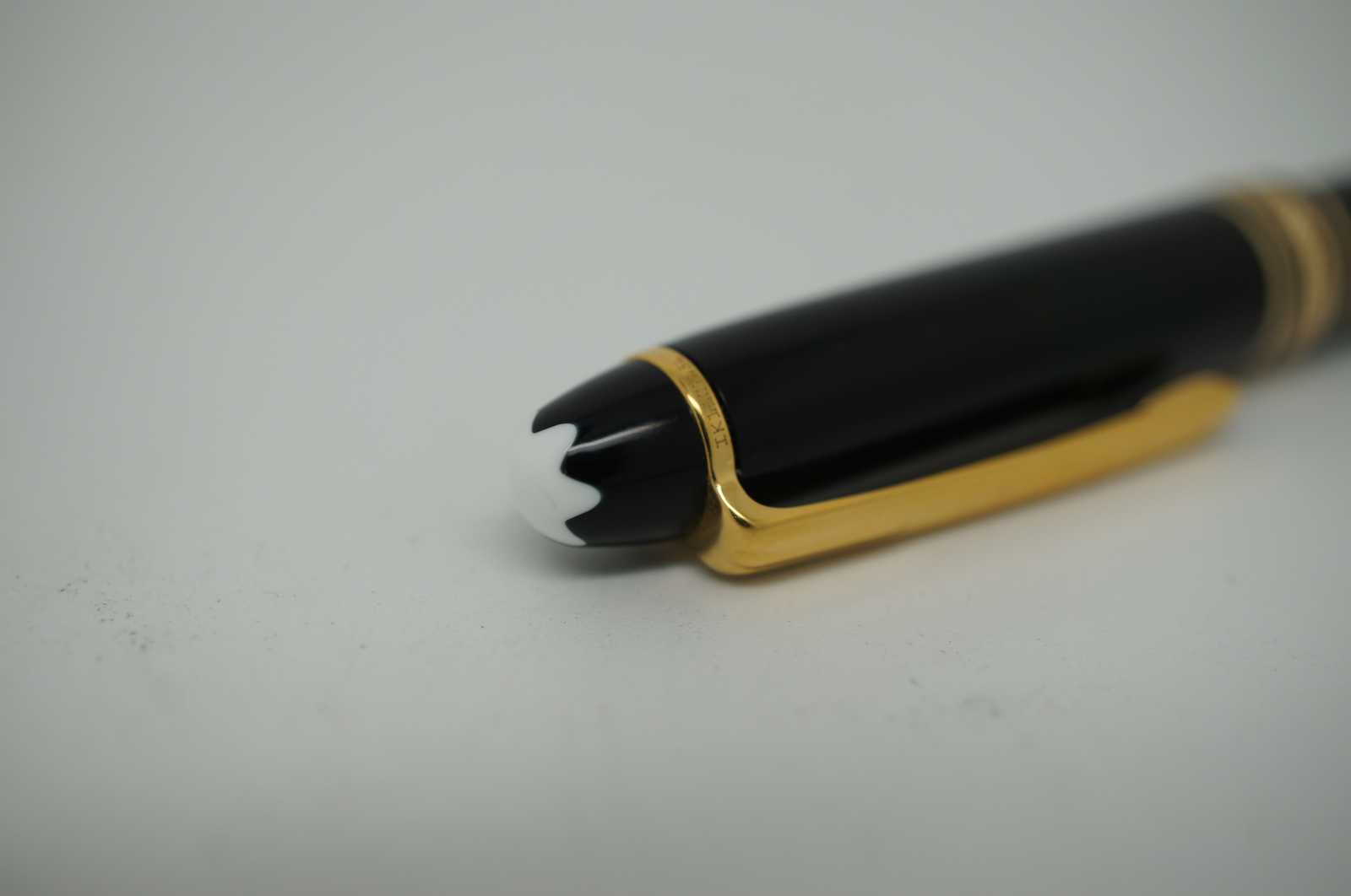 Vintage Montblanc Meisterstuck black and gold small size ballpoint pen. Serial number IK1107656.