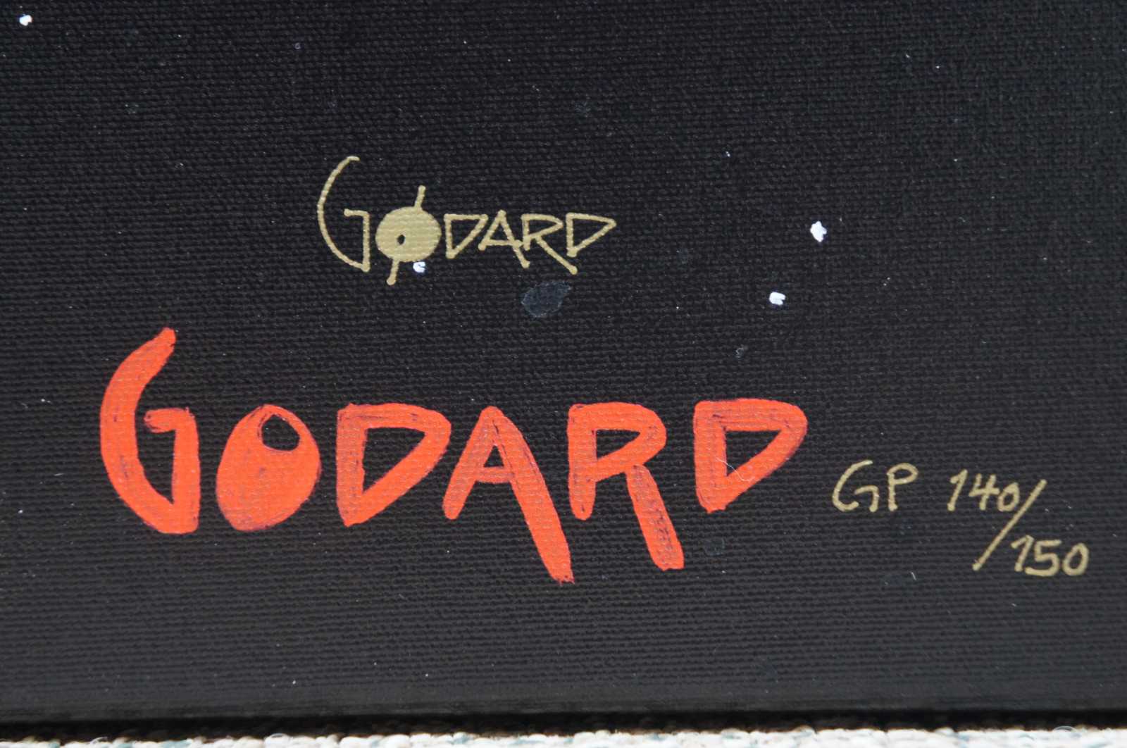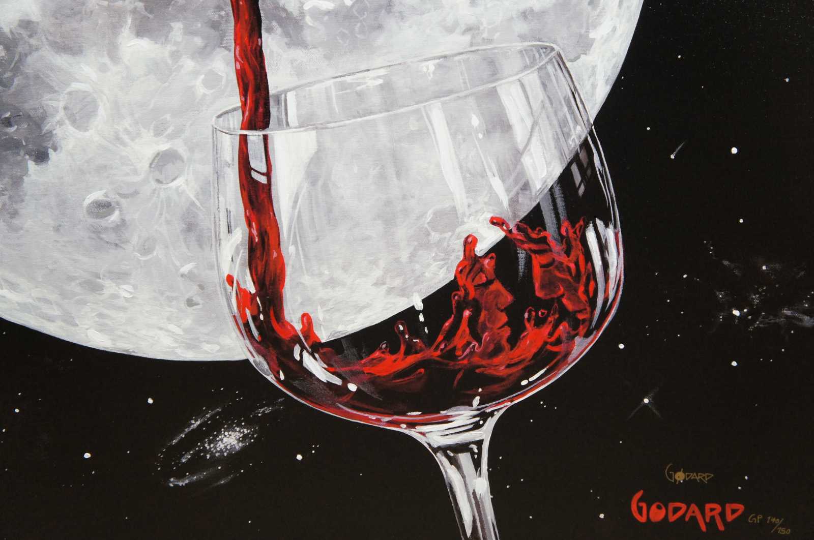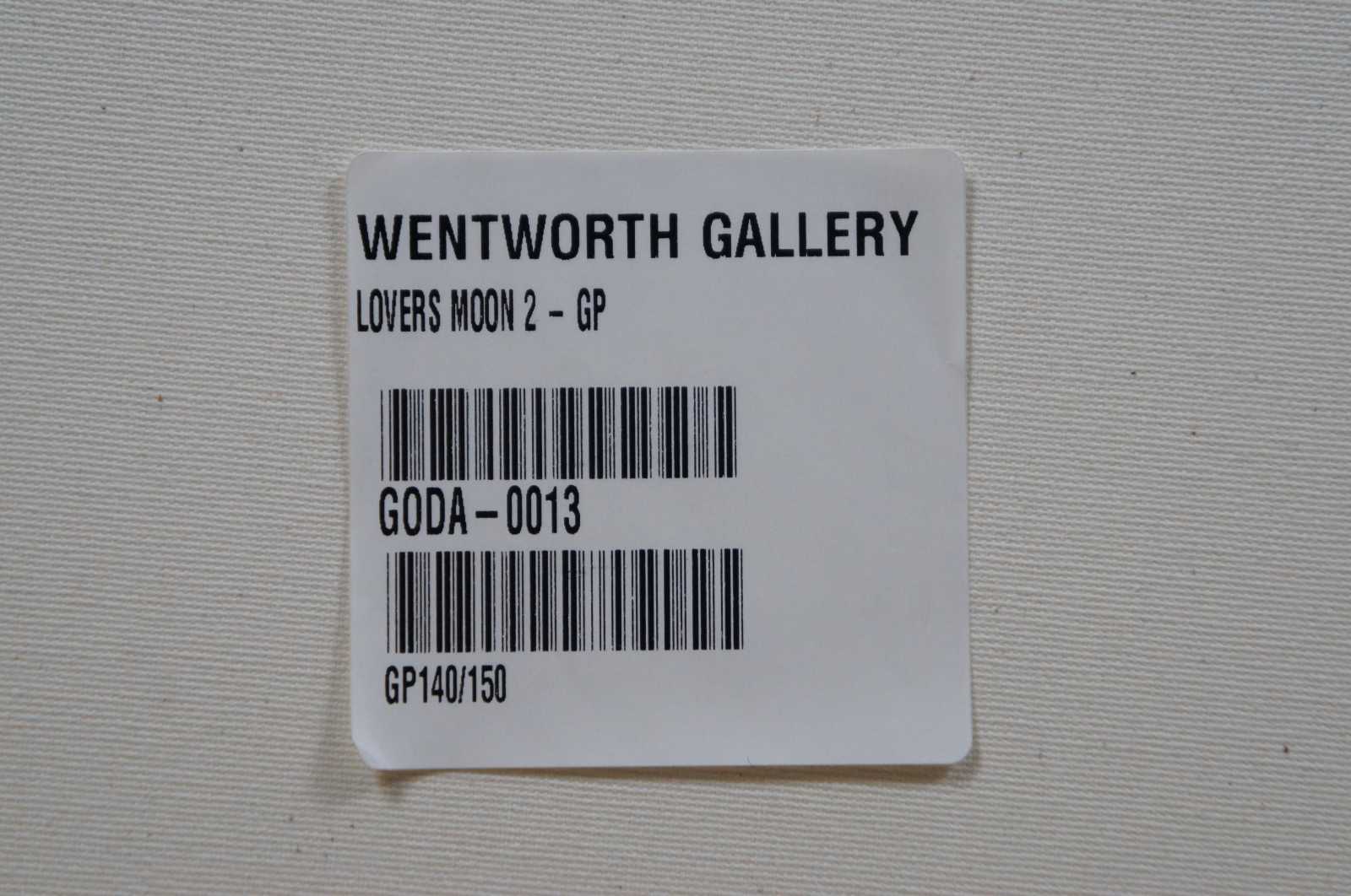 Limited edition, hand enhanced Gallery Proof giclee on canvas of “Lovers Moon II” by Michael Godard, signed and numbered in gold (number 140 of 150), produced by Max Art Productions.