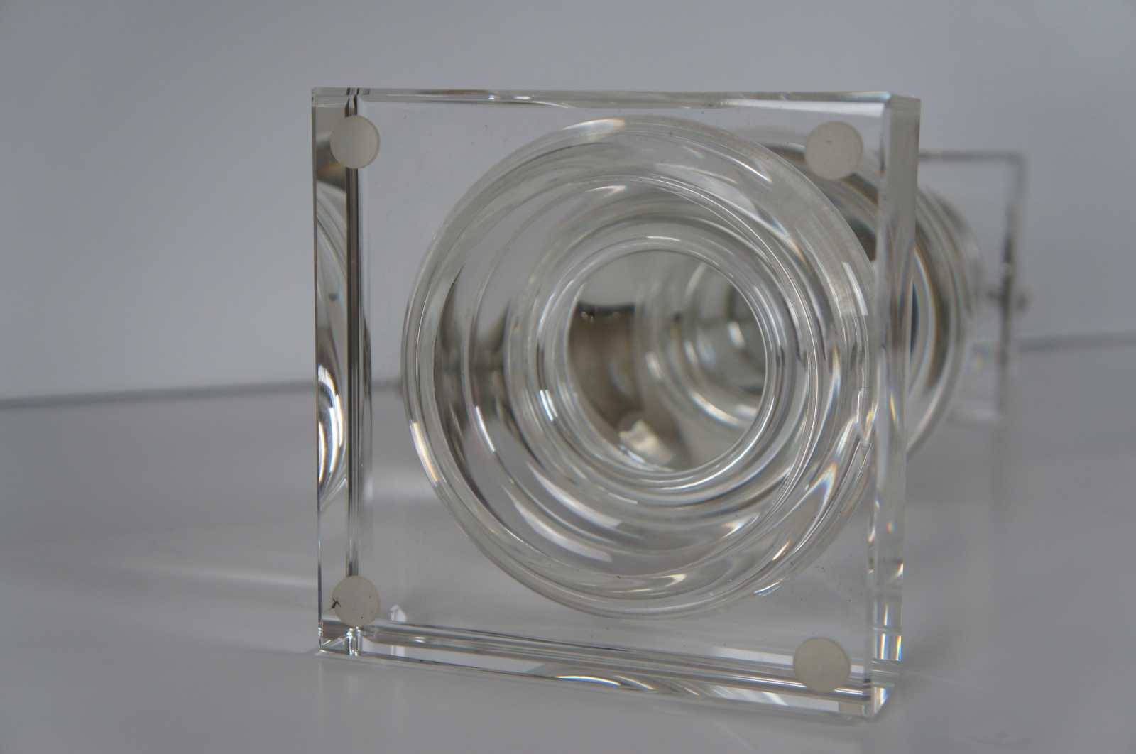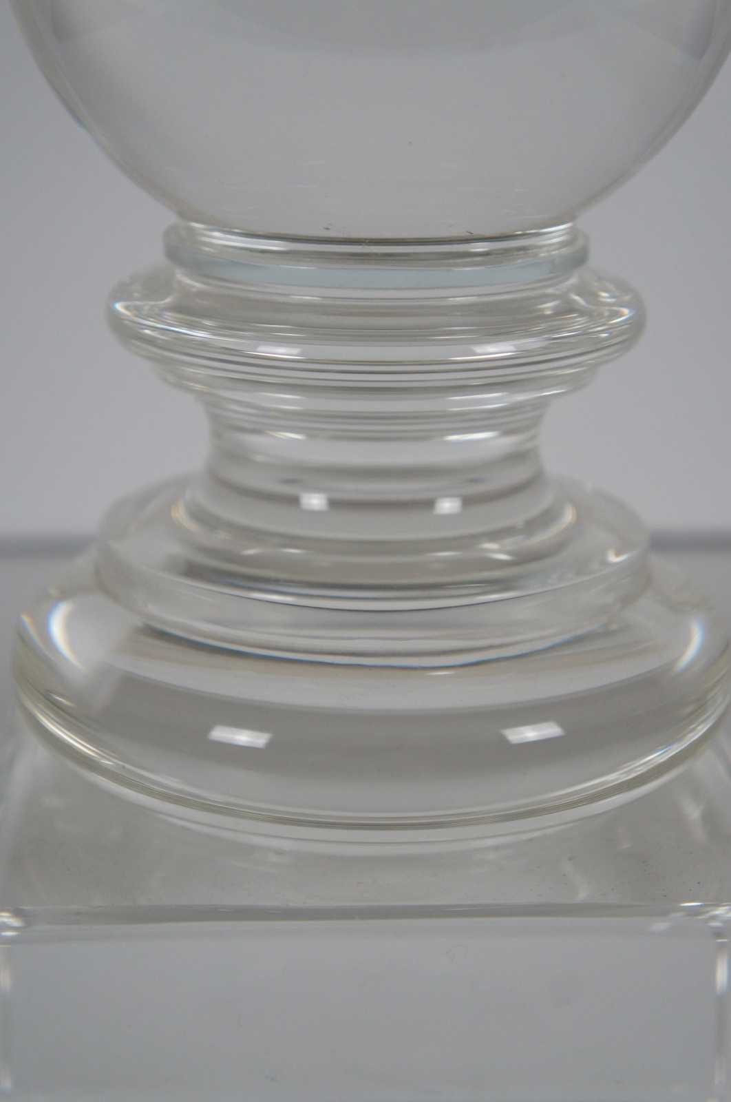 Inspired by the beauty of classic sweeping staircases, this solid crystal glass lamp is elegantly illuminating.
