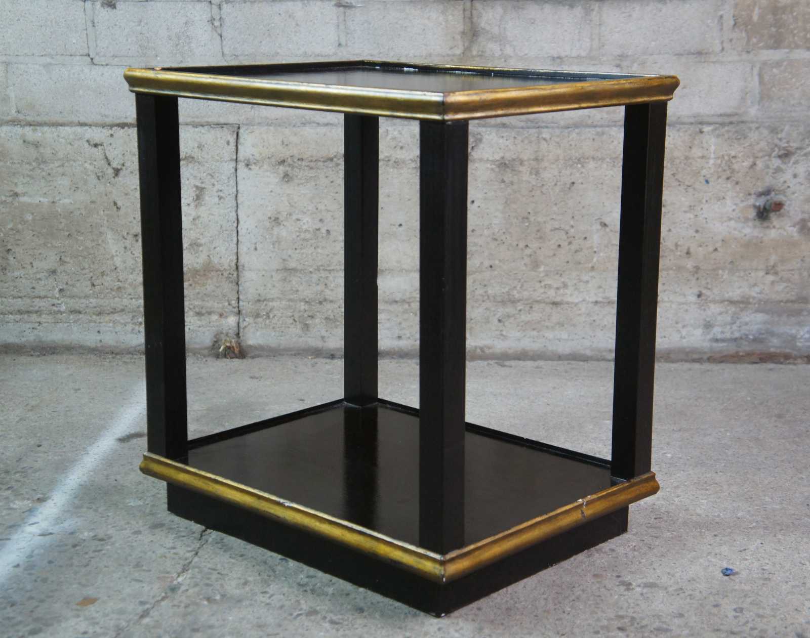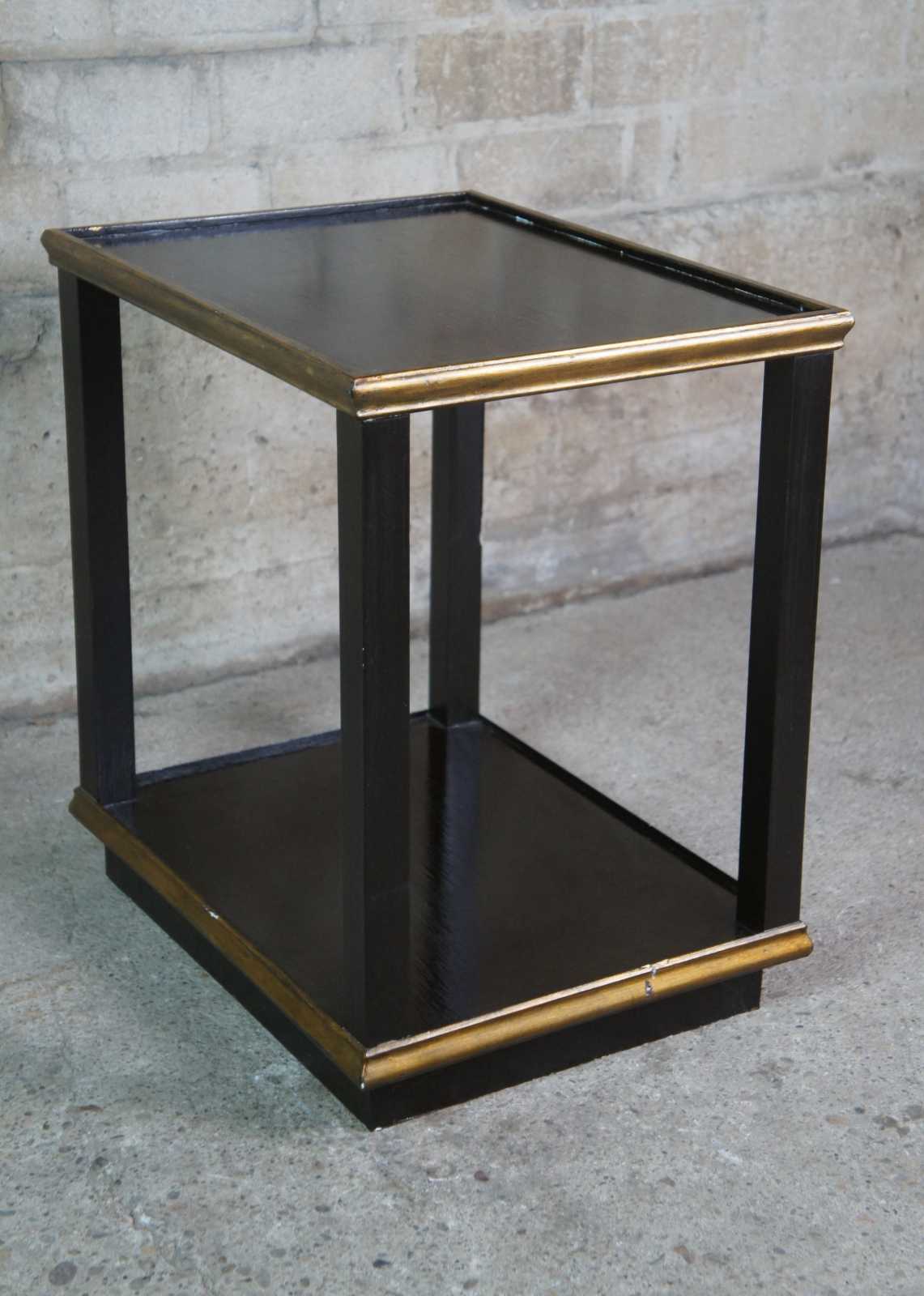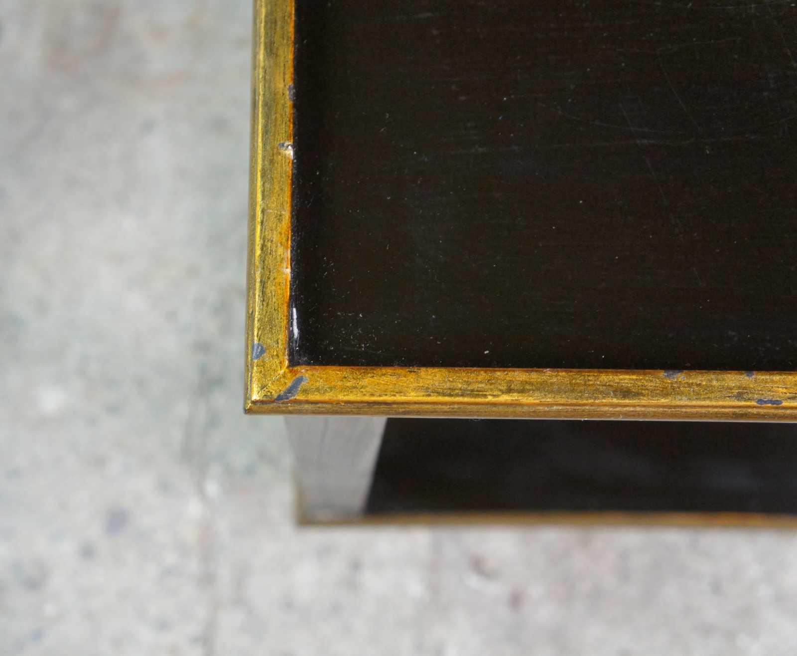 Late 20th century Black & Gold Accent Table. Rectangular form with platform base and two tieres for display.