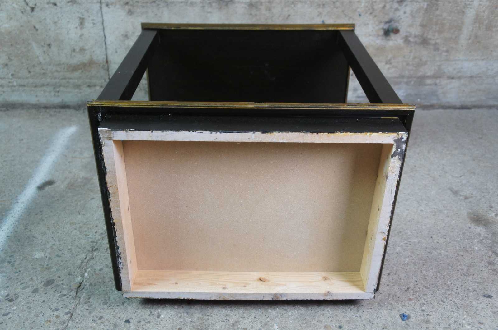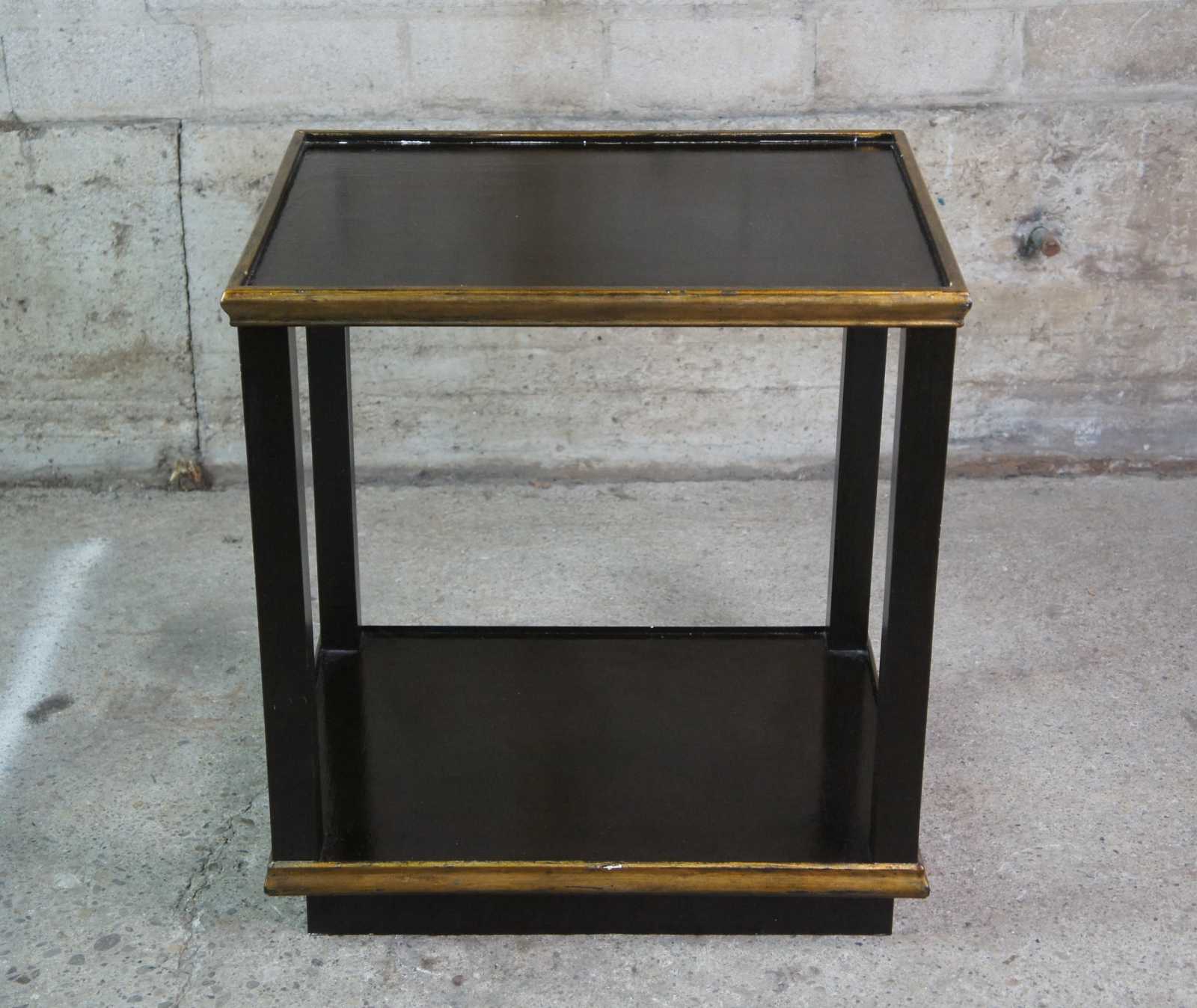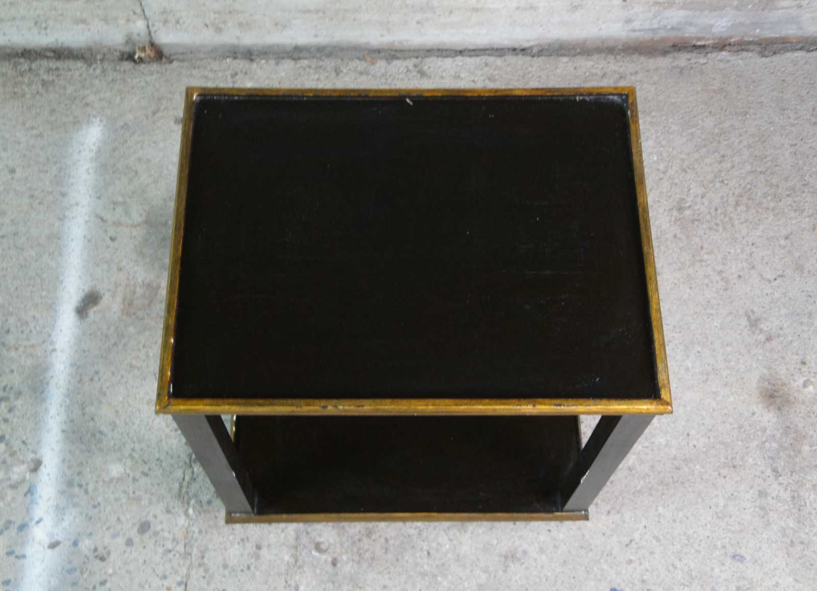 Late 20th century Black & Gold Accent Table. Rectangular form with platform base and two tieres for display.