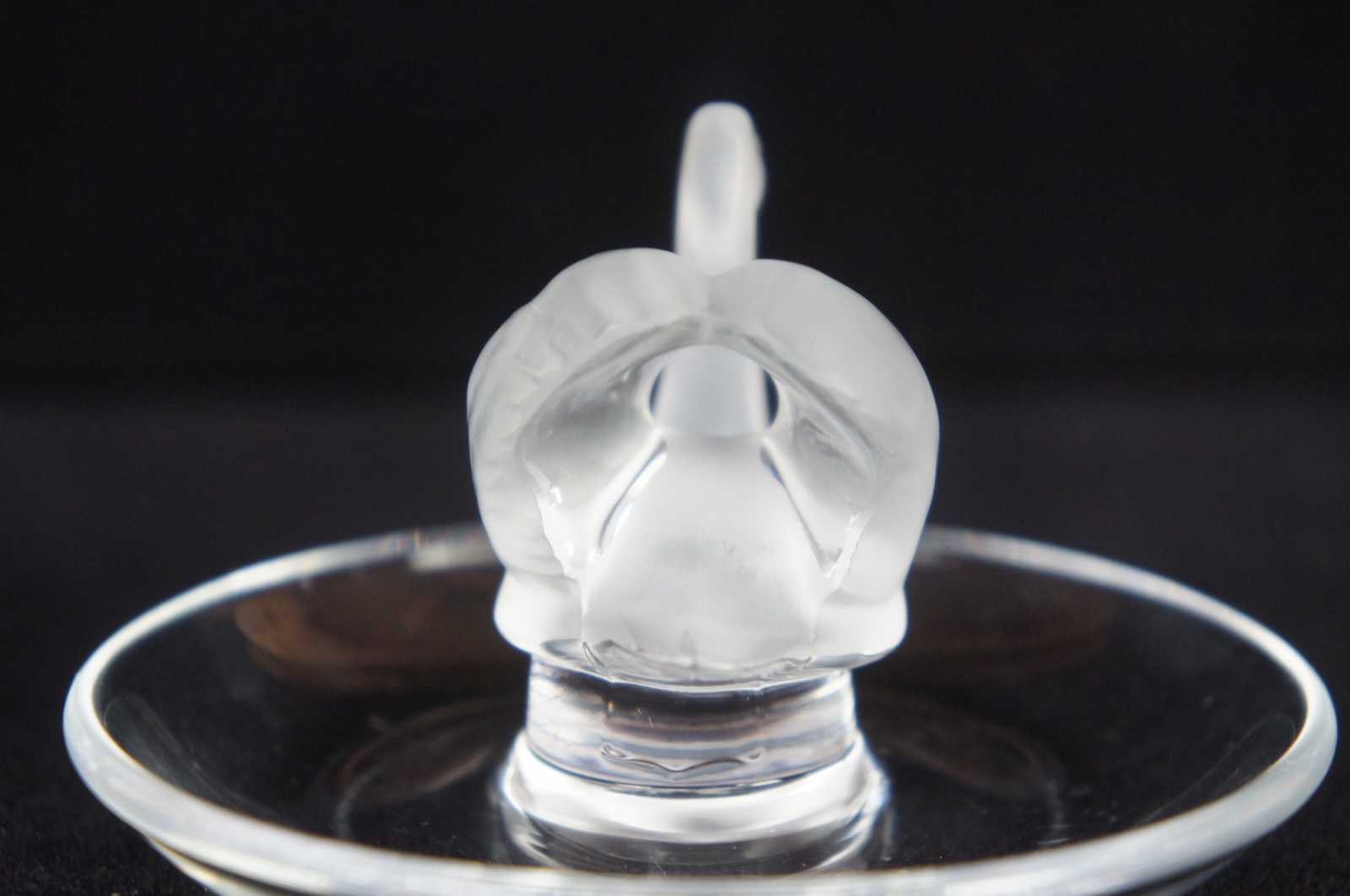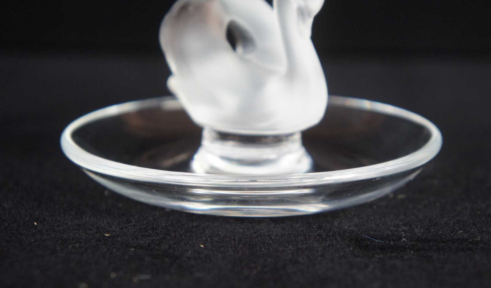 2 Available – Vintage Lalique French crystal ring holder dish with frosted glass swan centerpiece.
