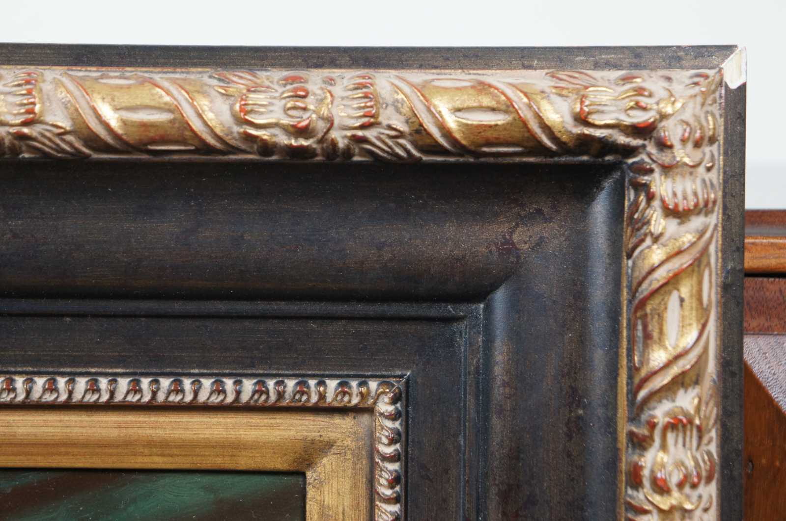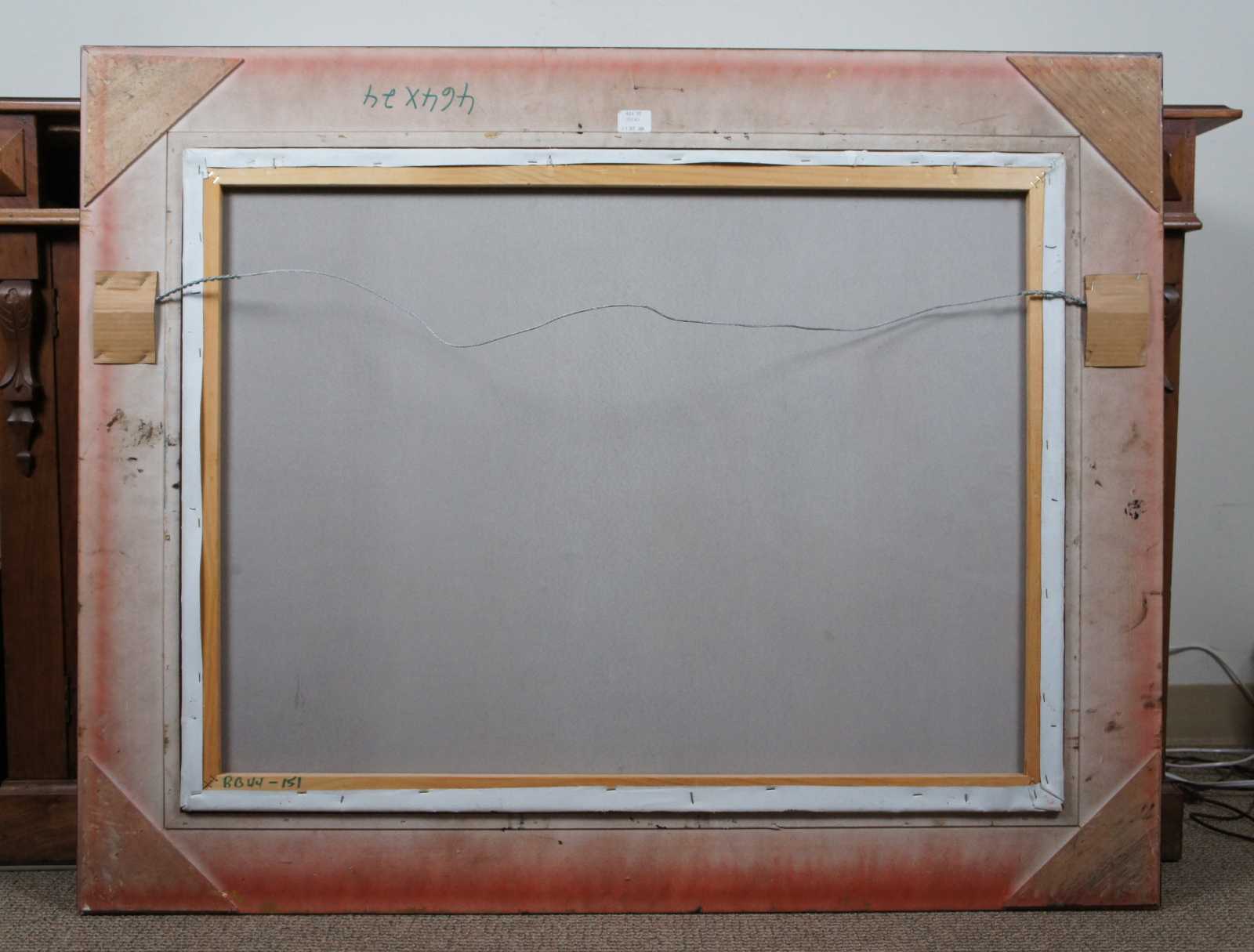 Signed impressionist style oil on canvas painting of an elegant patio or balcony, signed Edwin in lower corner.