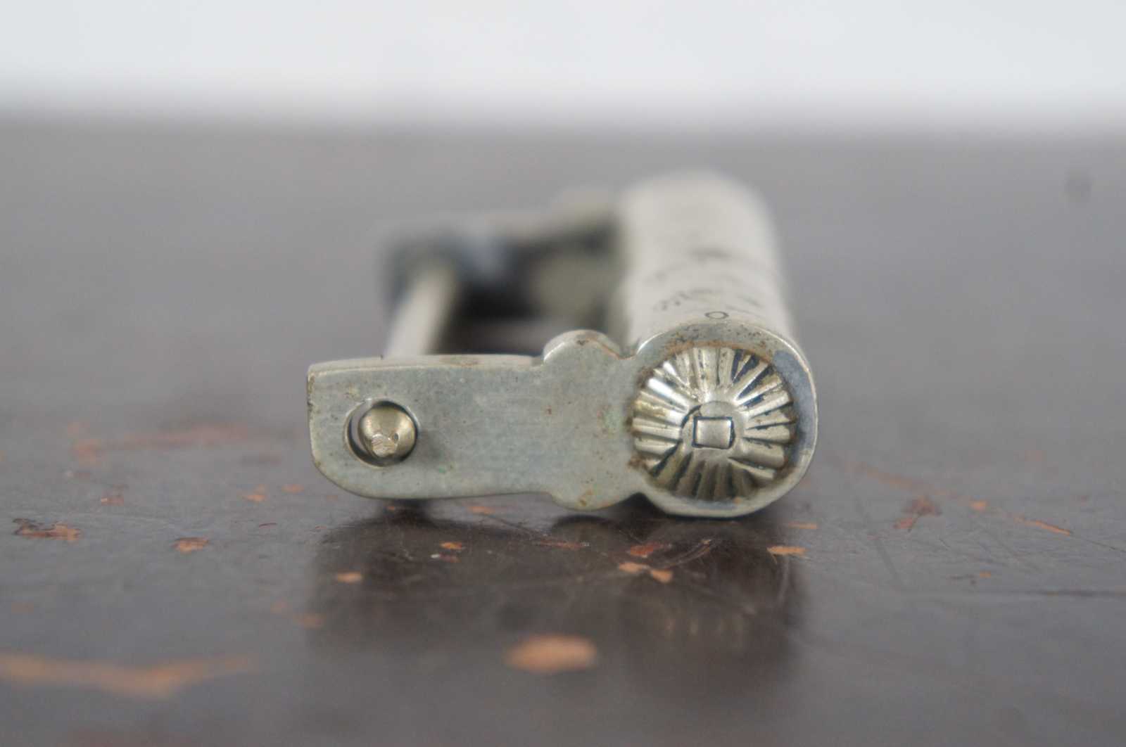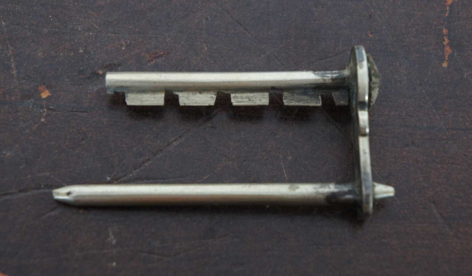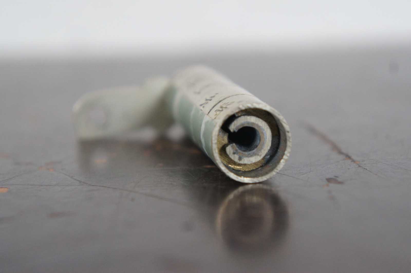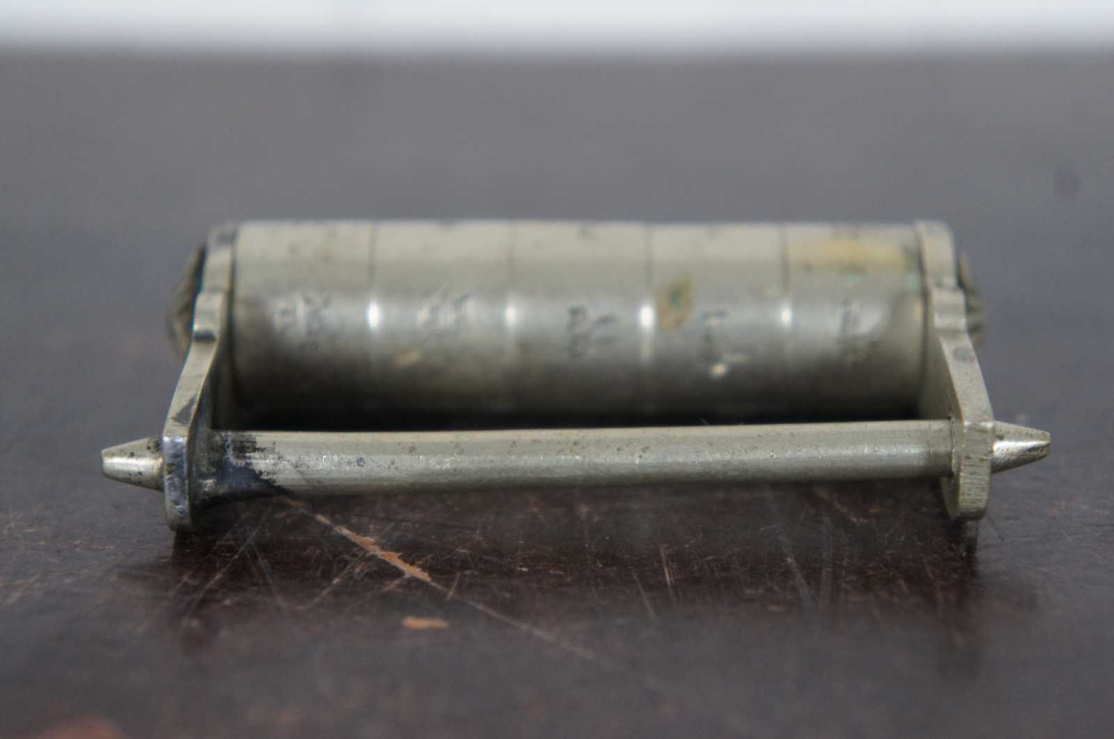 Antique metal cylinder poem padlock engraved with Chinese characters; currently taped in place at the solution/combination.
