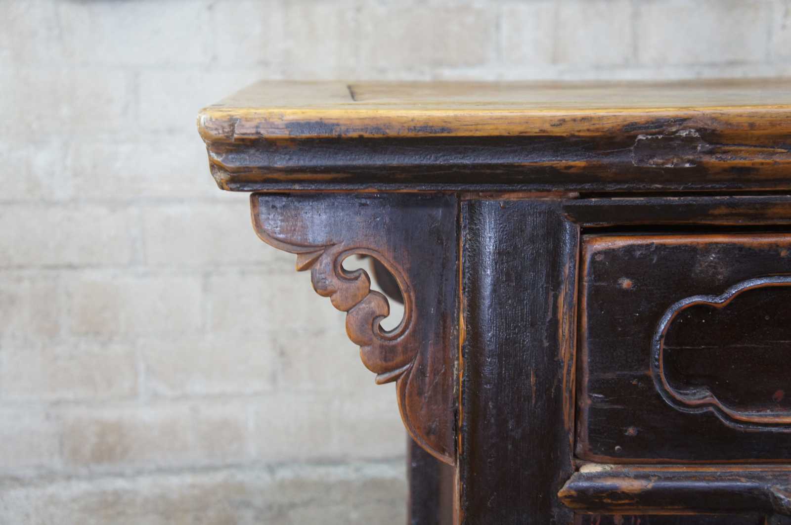 Good antique condition, wear and distressing commensurate with age and use, finish loss, slight bow to top,