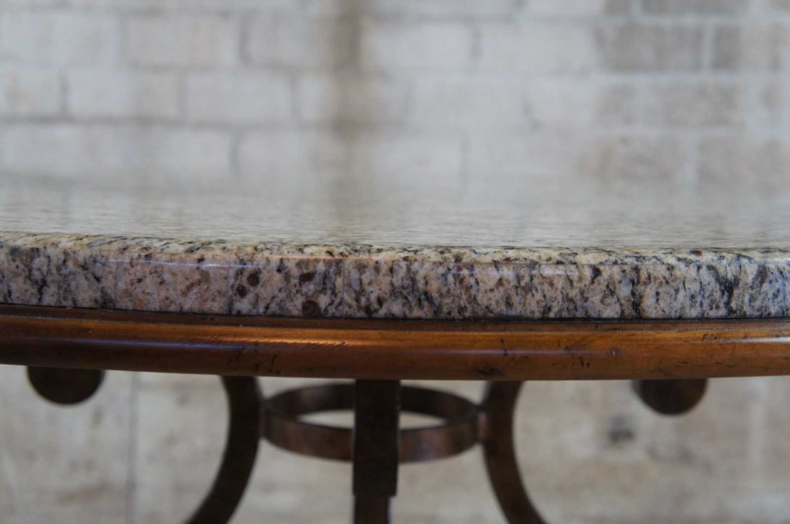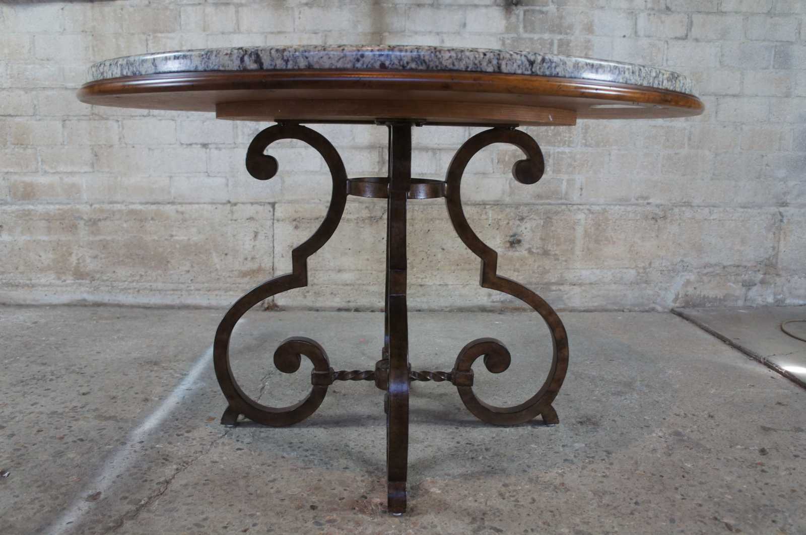 Vintage Drexel Heritage Gourmet dining or breakfast table. Made of granite with scrolled and twisted iron base. 586-620ST-JGG