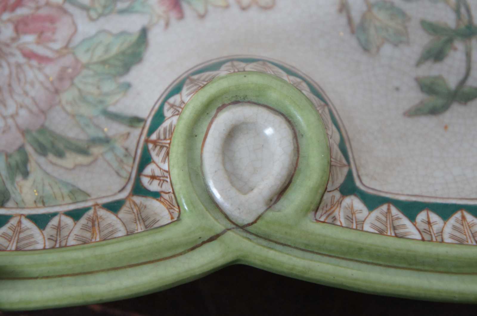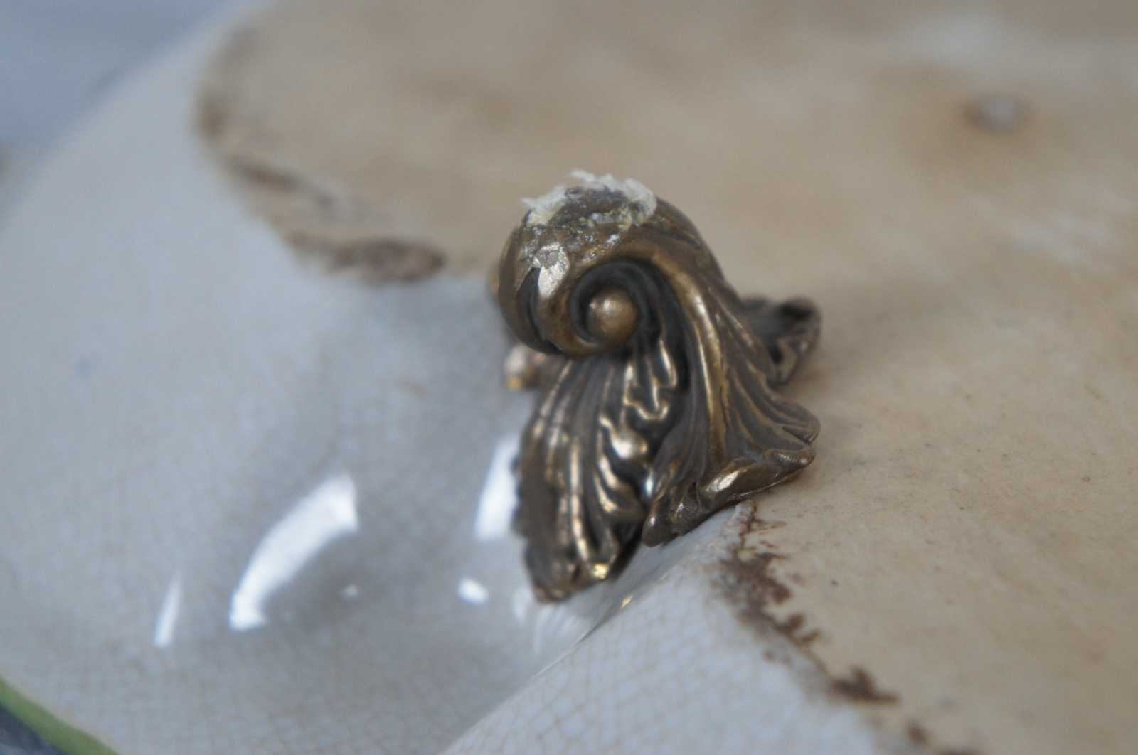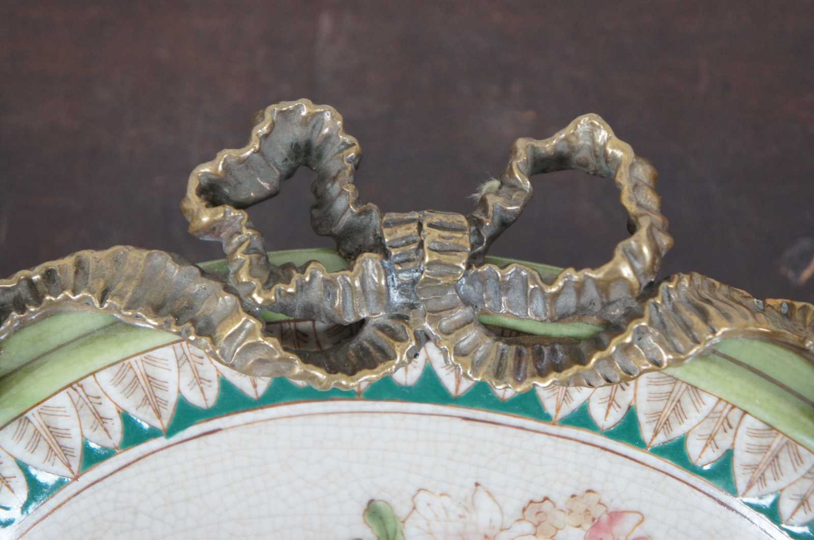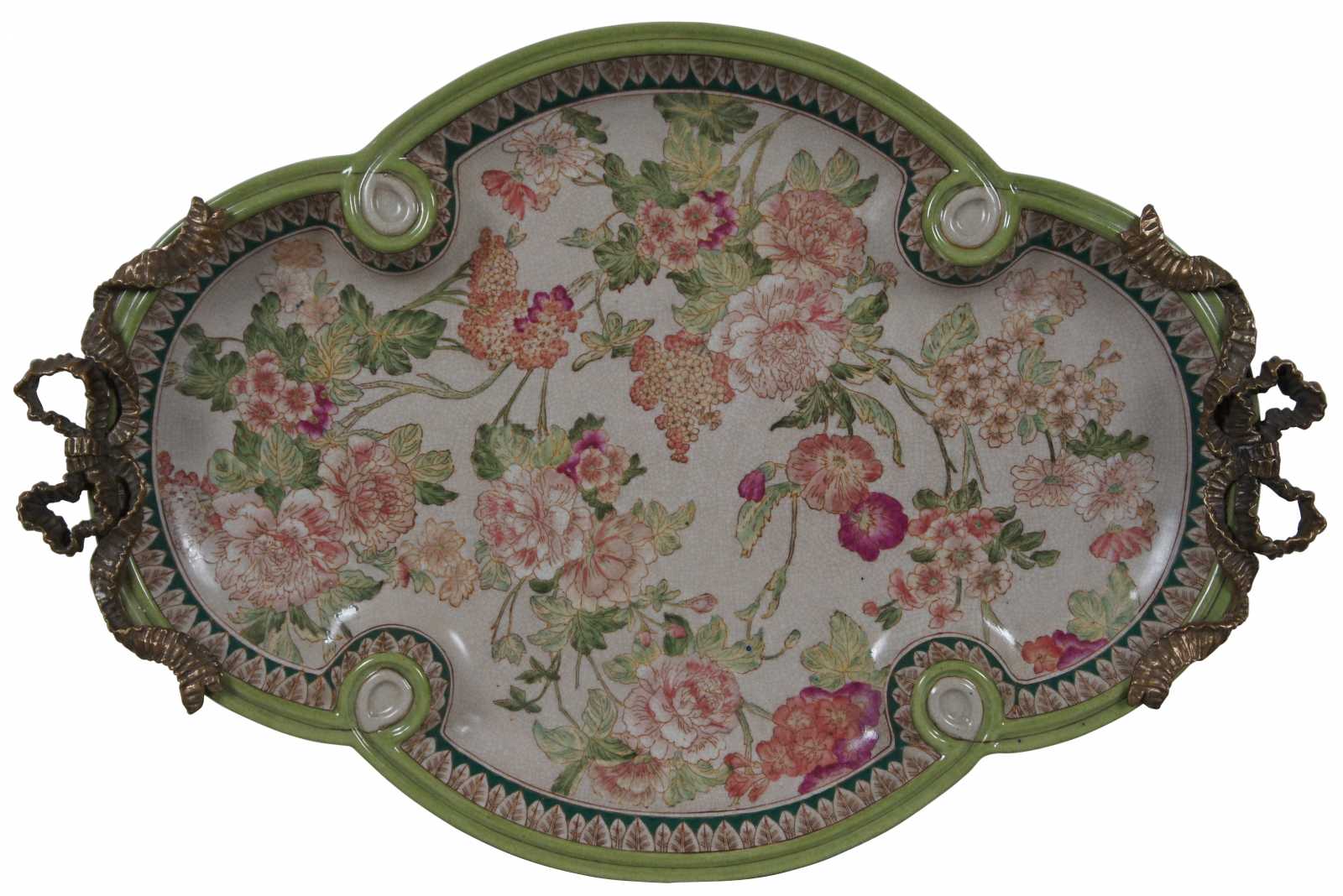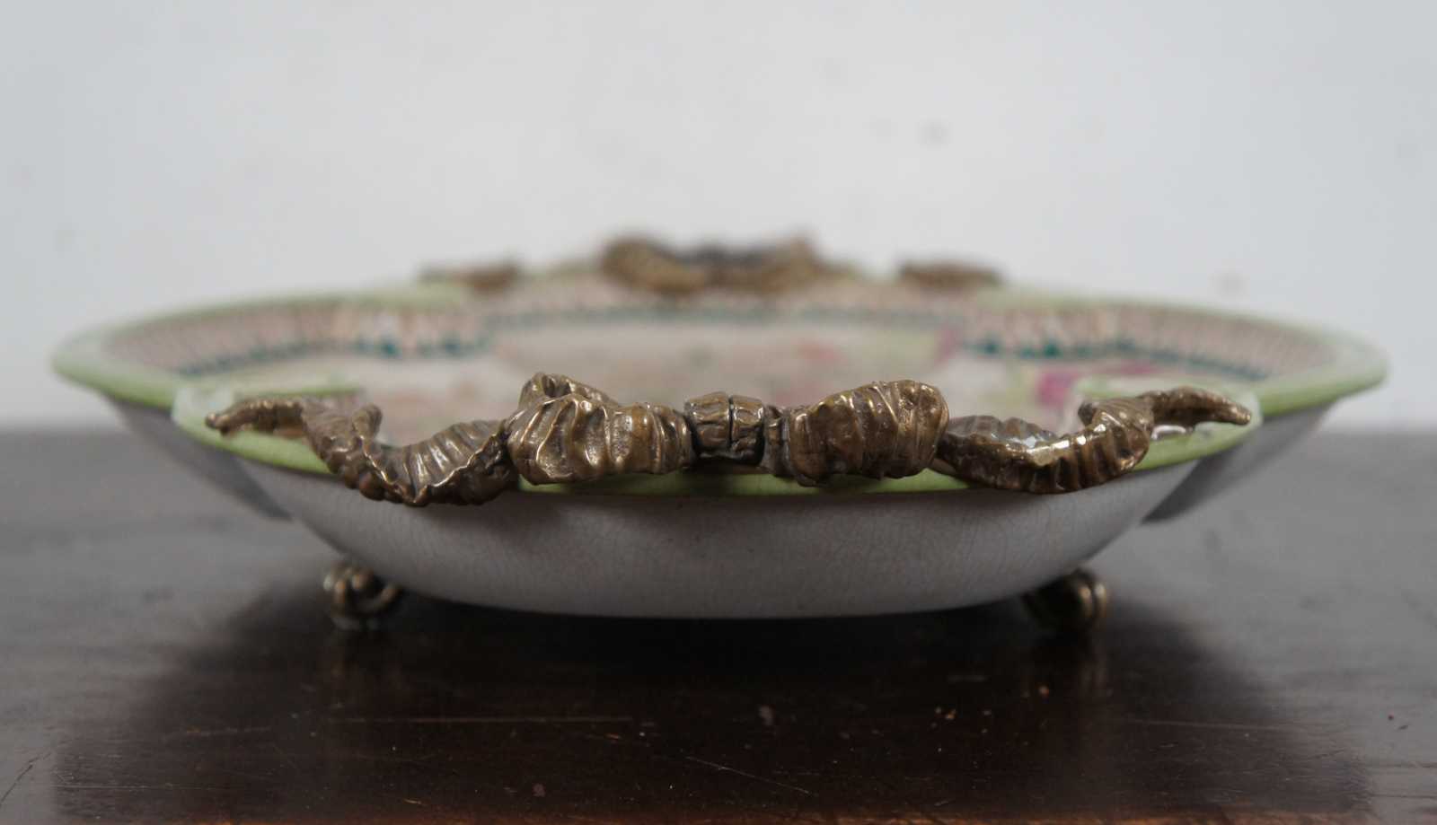 Ornate dish or platter by Wong Lee with brass feet and ribbon shaped handles.