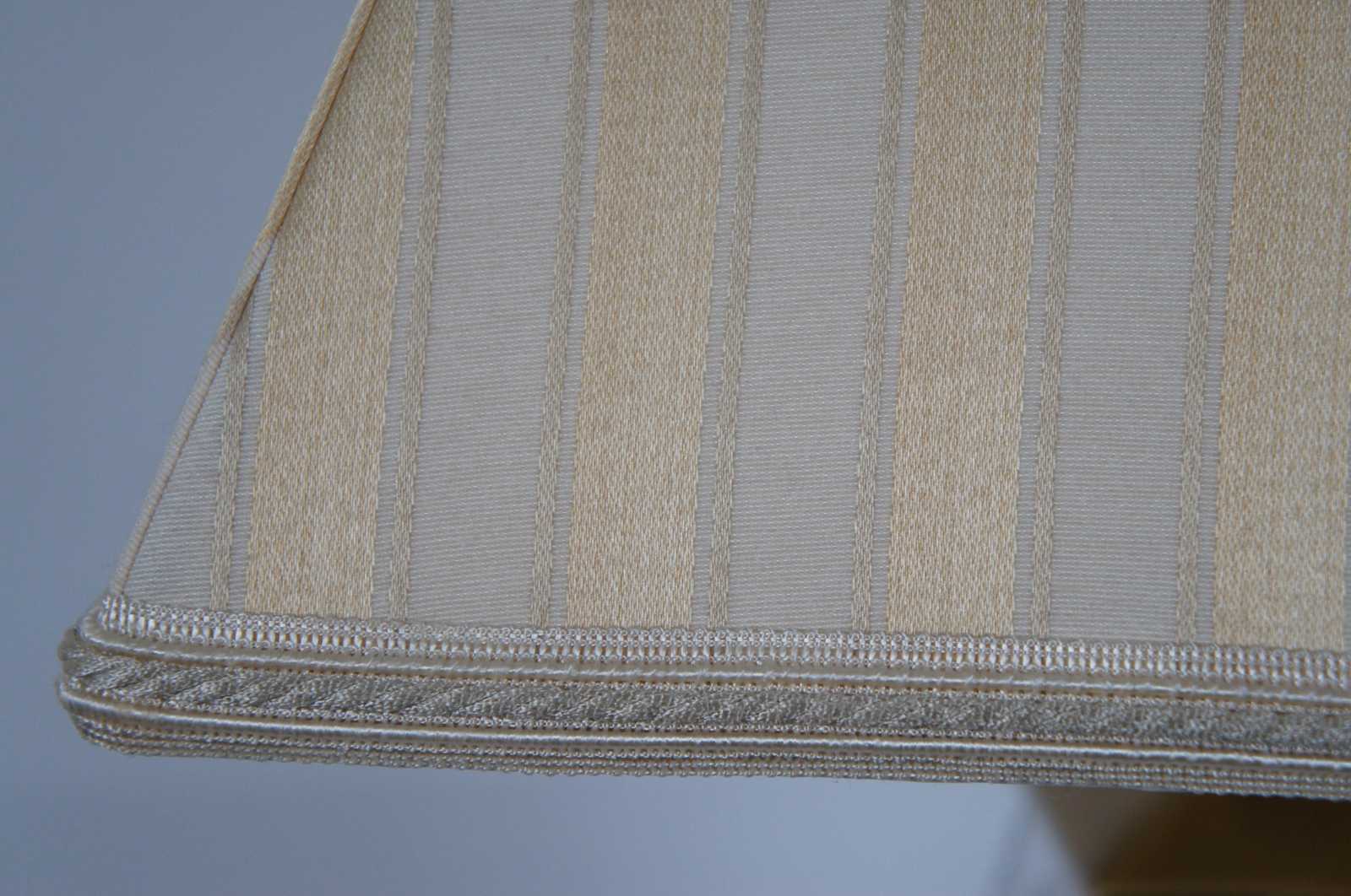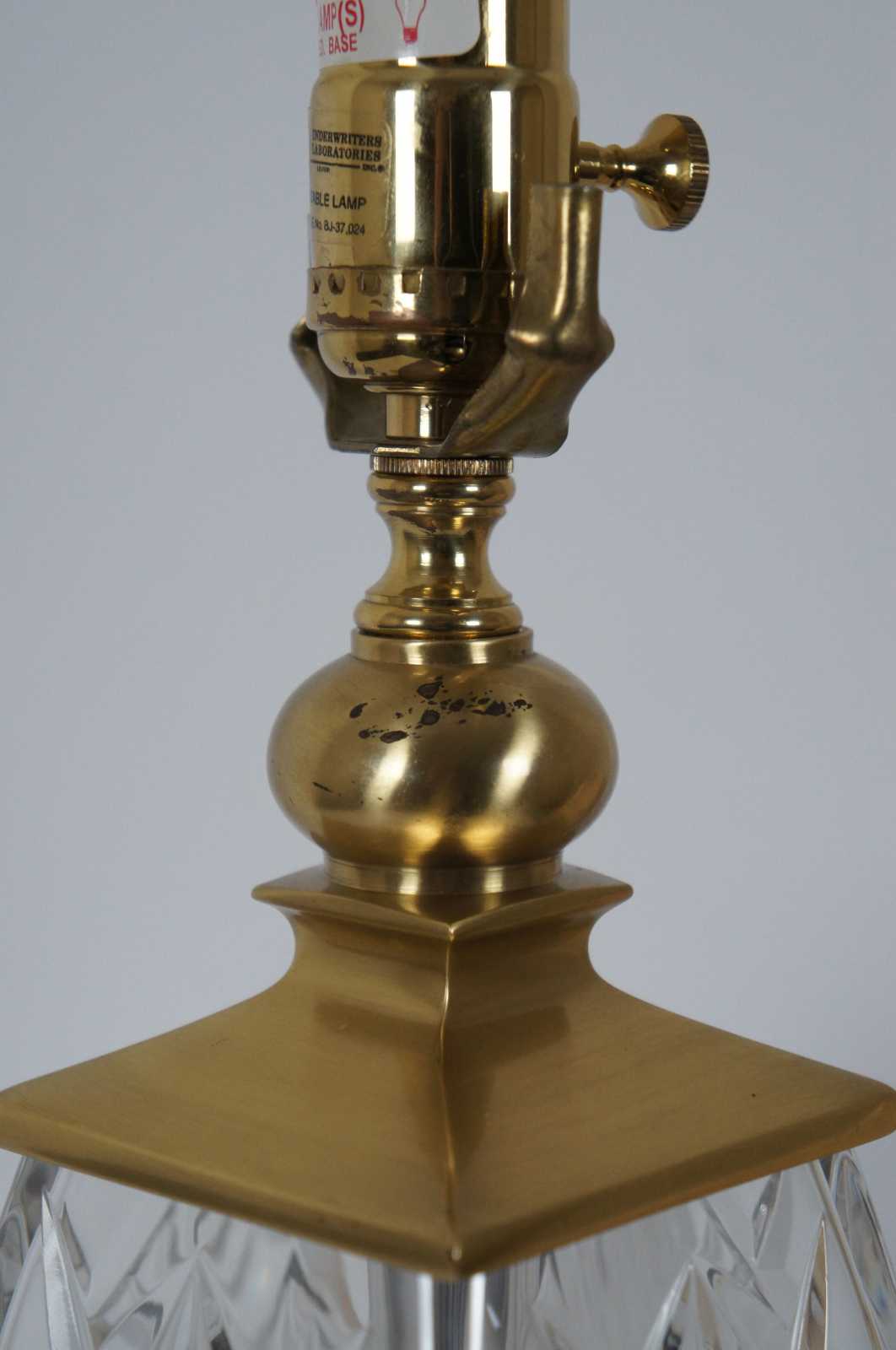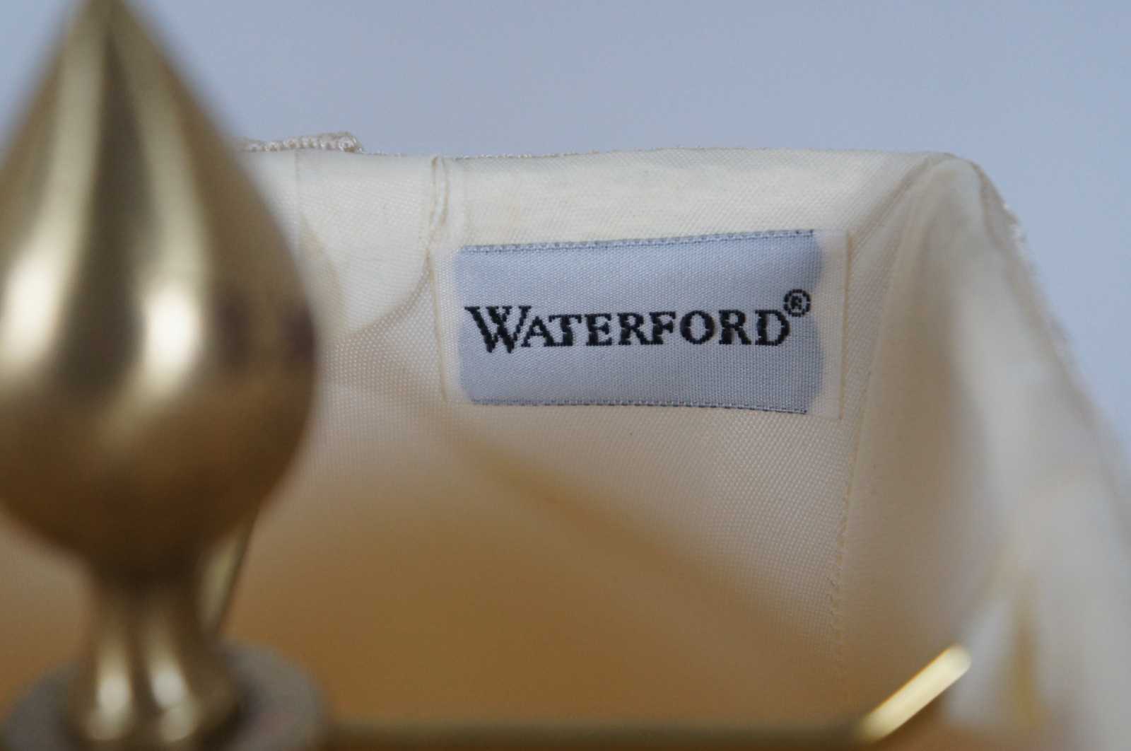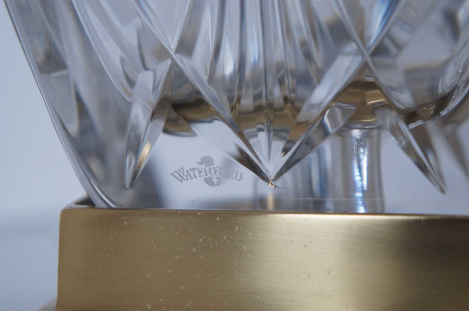 Waterford Finn cut crystal and Versailles brass table lamp with striped silk shade. 108-892-19-00