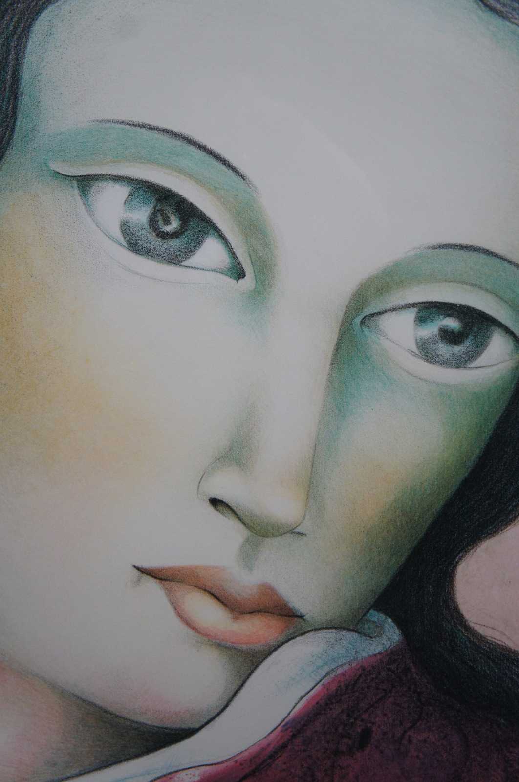 Still in his early twenties, Miguel found a style, which has become his signature. Moved by deep respect and admiration, he began a series of large faces of women, enlarging and stylizing the eyes,and endowed them with mystery of illusive and provocative expressions. He has created them in an ambiance of everyday life, giving them a voice which has inordinately proved to speak to the hearts of a universal following.