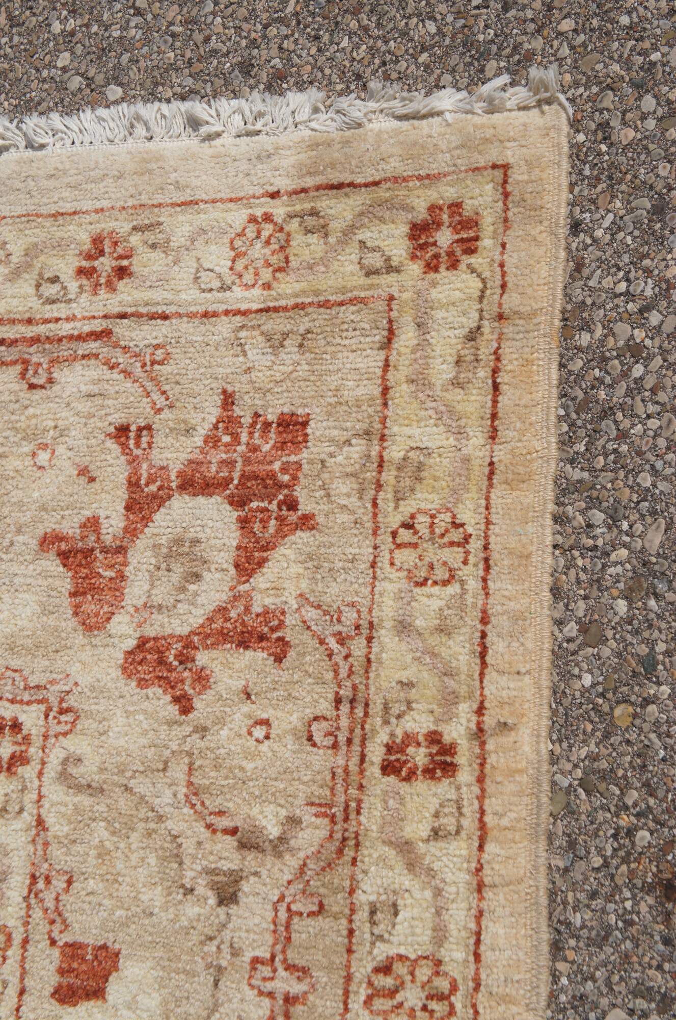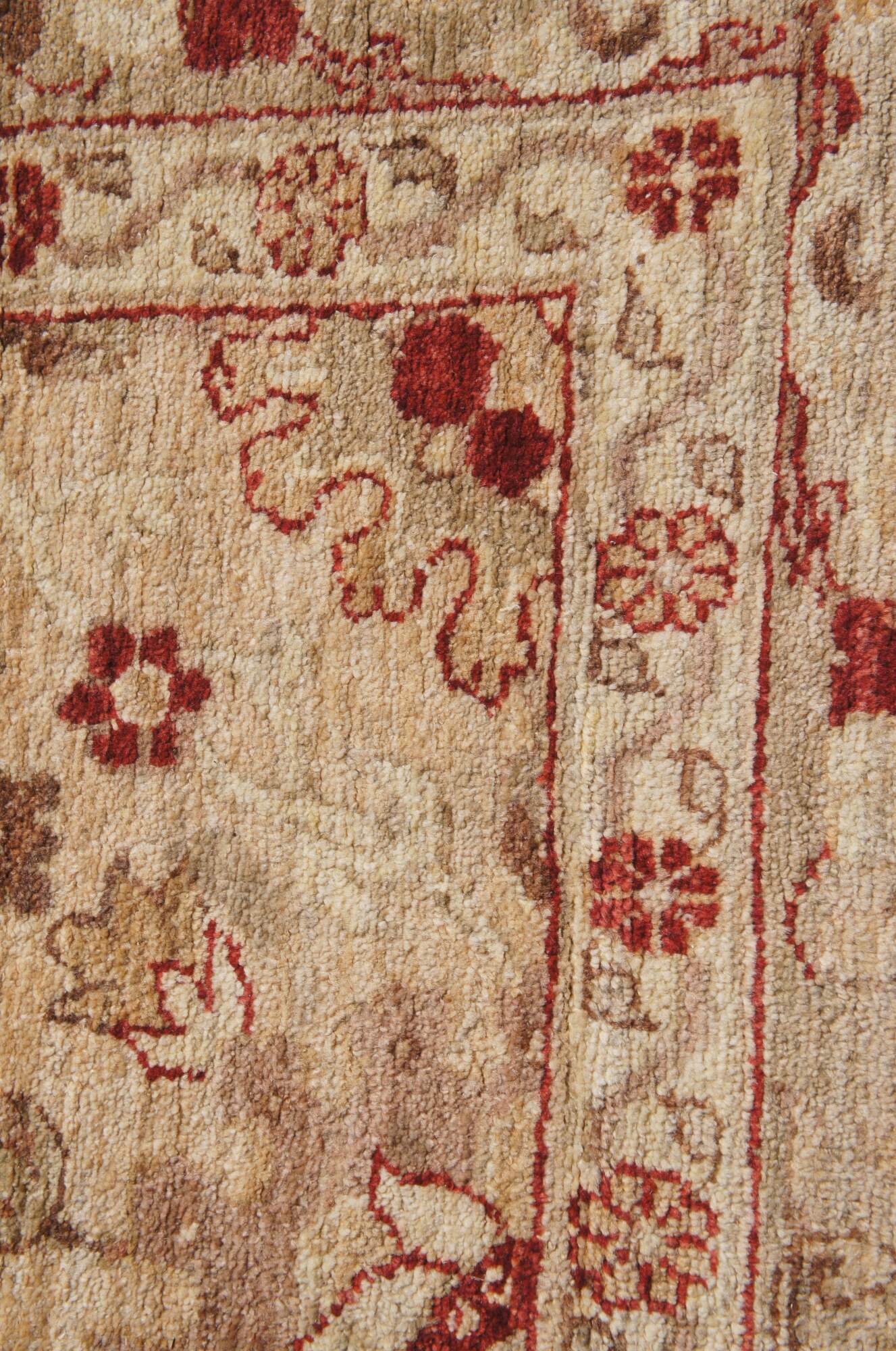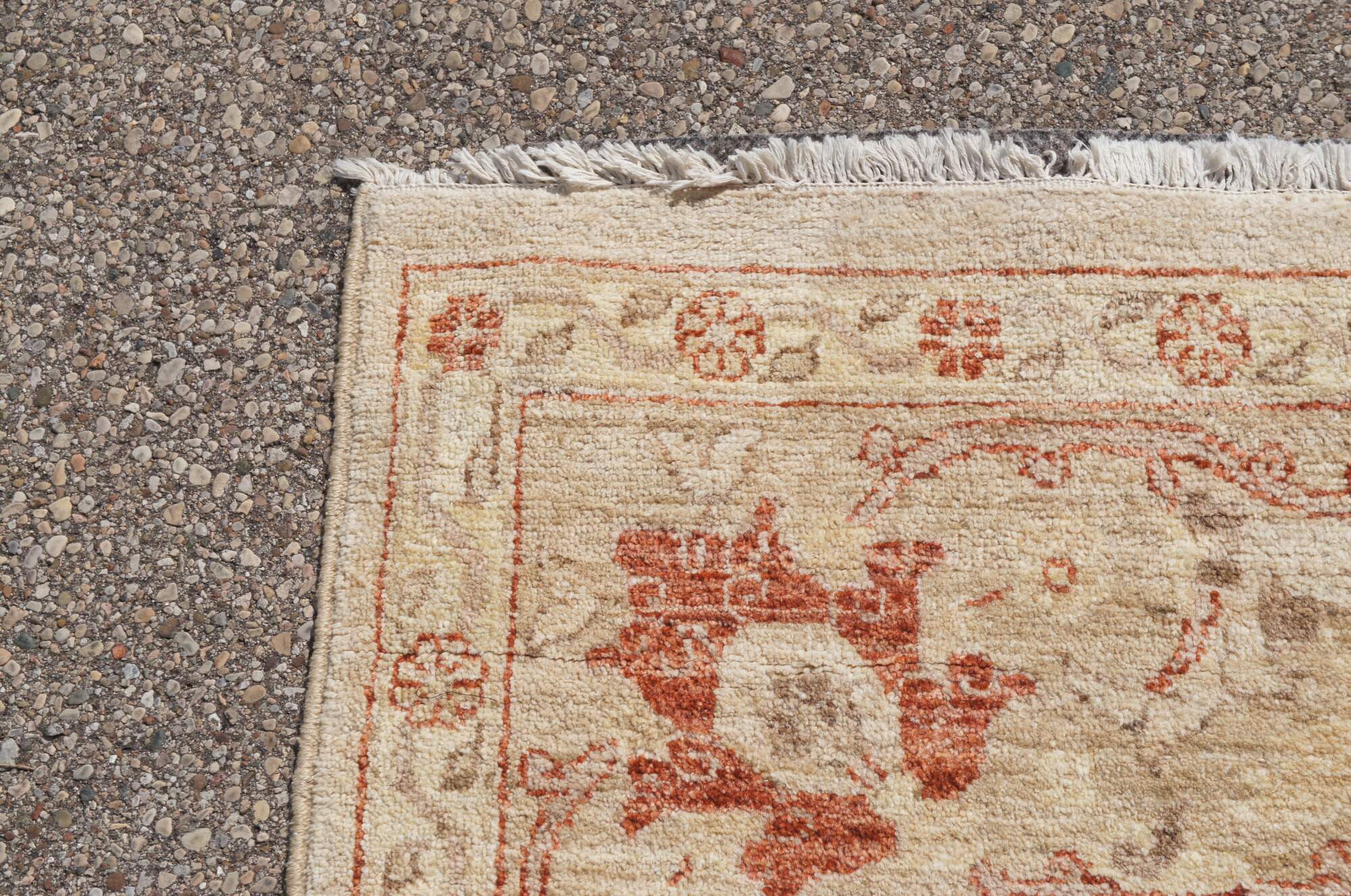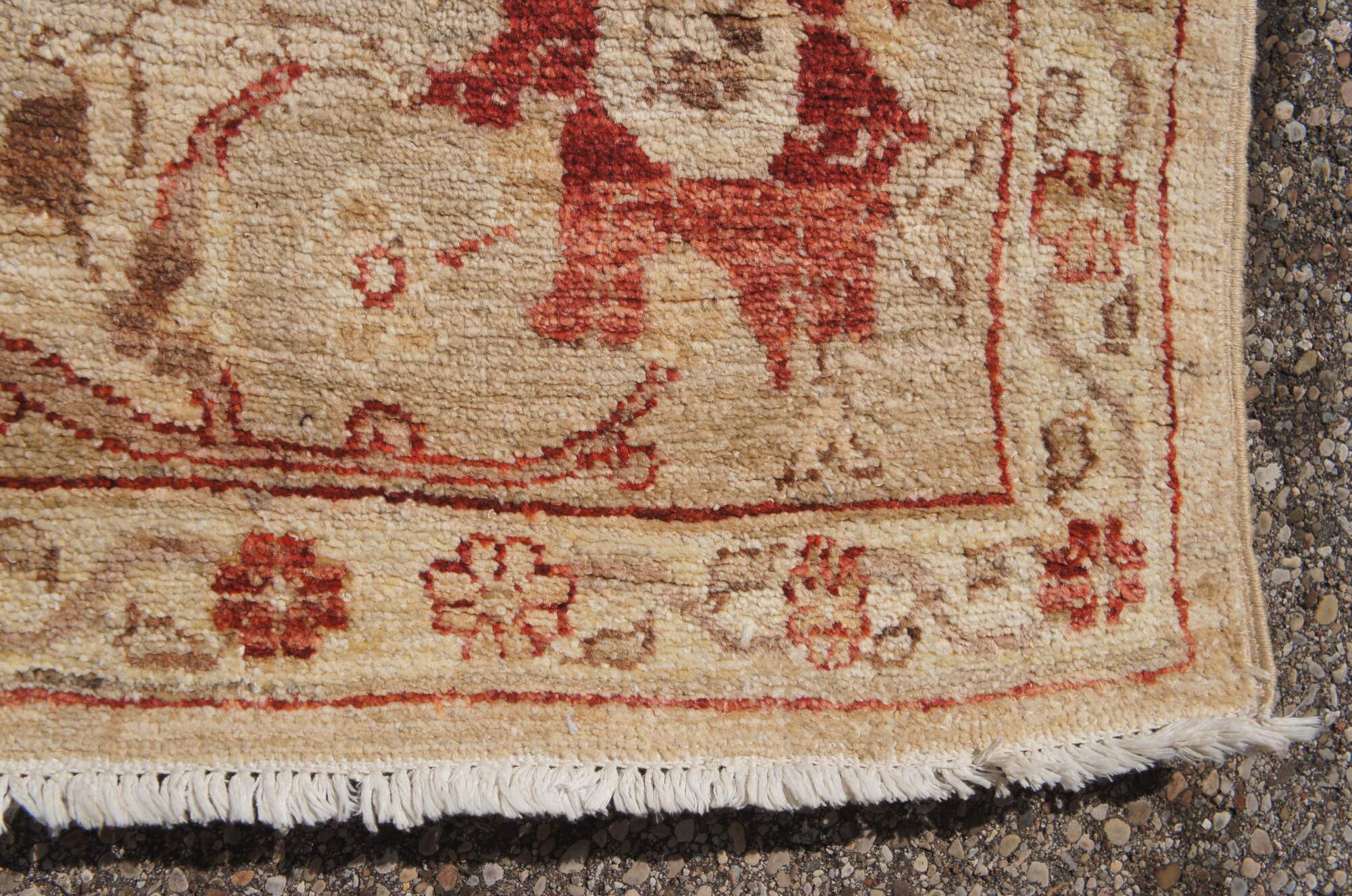 Vintage red & beige floral all over rug. Features a vibrant geometric design. 225 knots per square inch