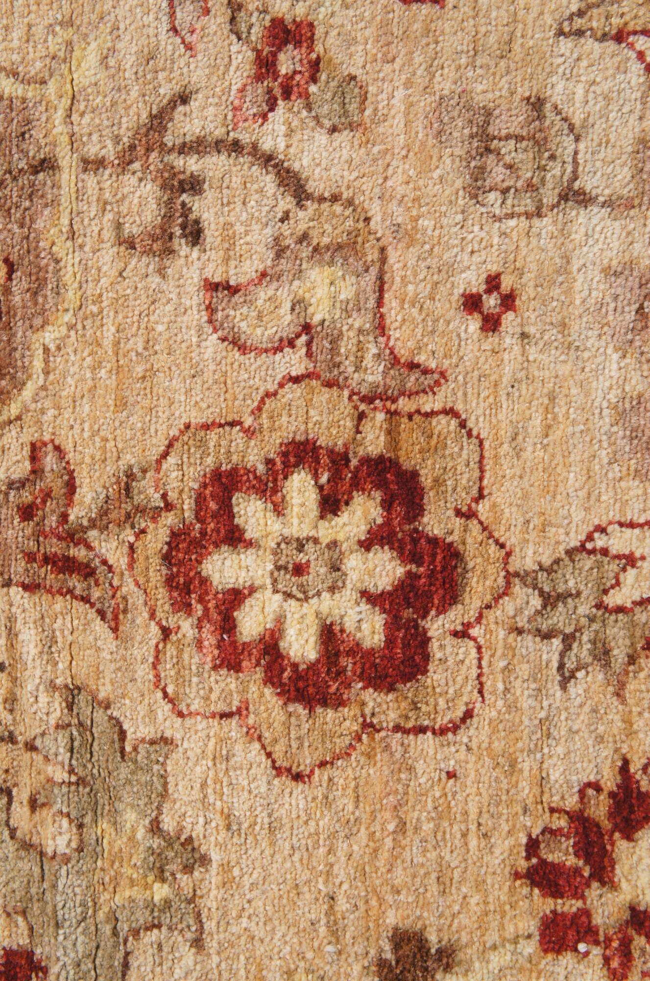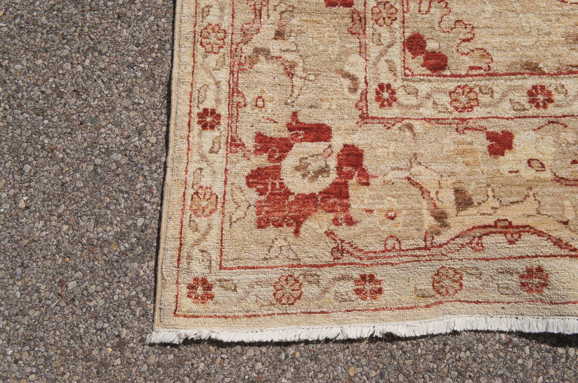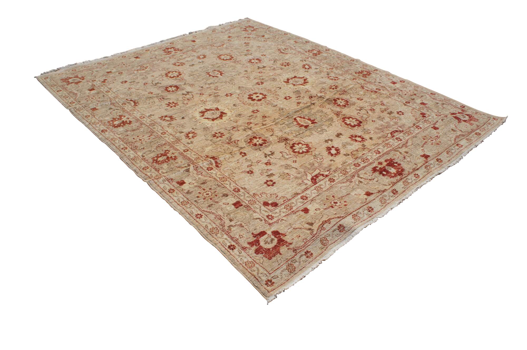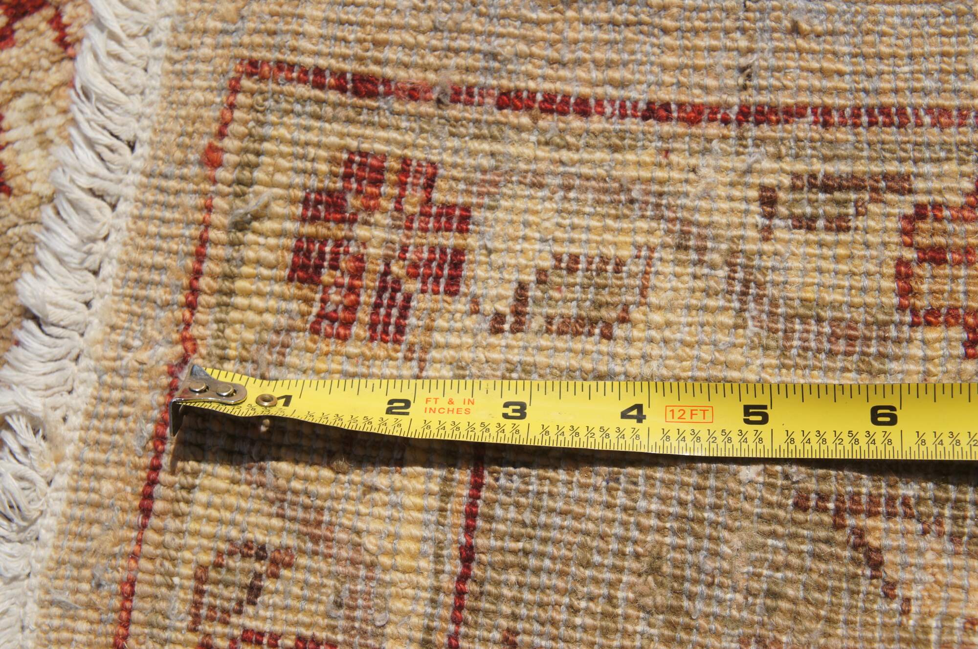 Vintage red & beige floral all over rug. Features a vibrant geometric design. 225 knots per square inch