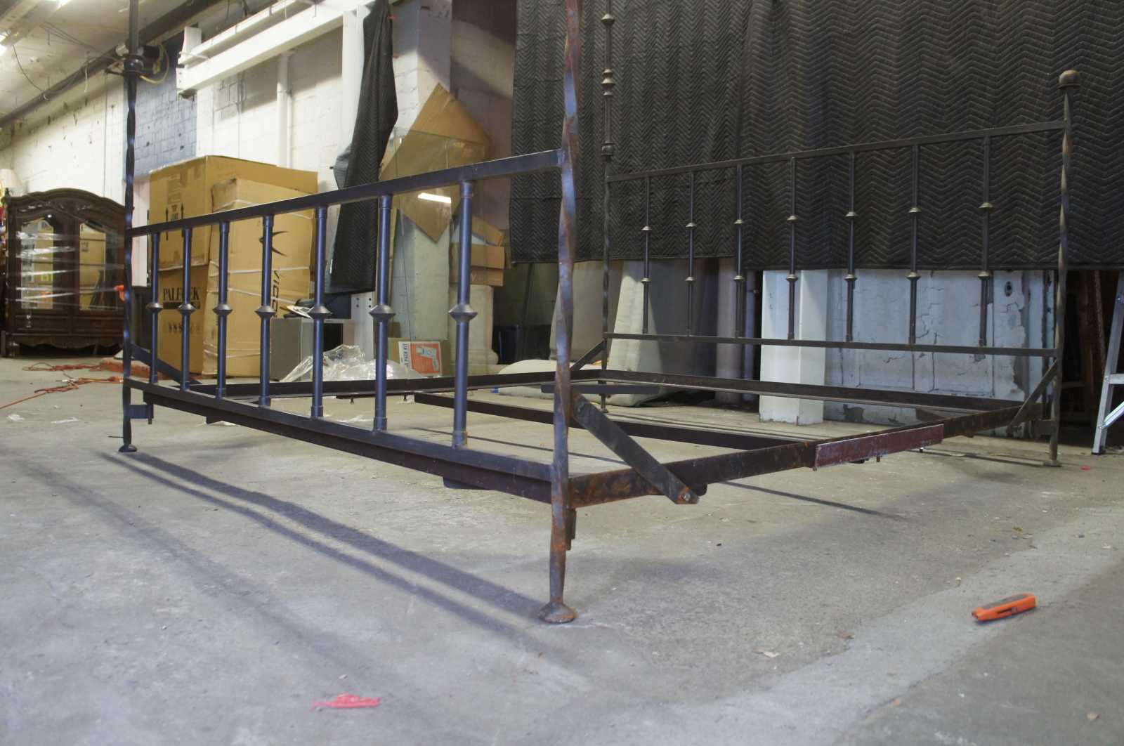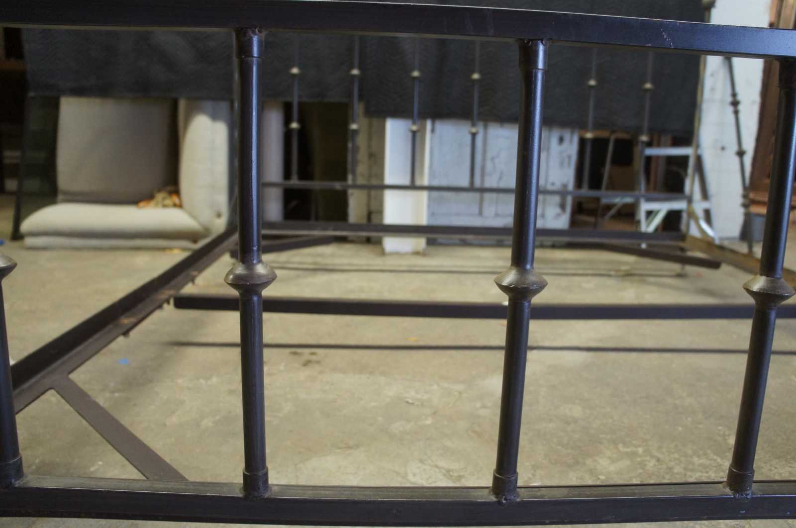 Kreiss Provence Grande Kings Poster Bed. Made from wroungt iron with scrolled posts with modern orbed deisgn