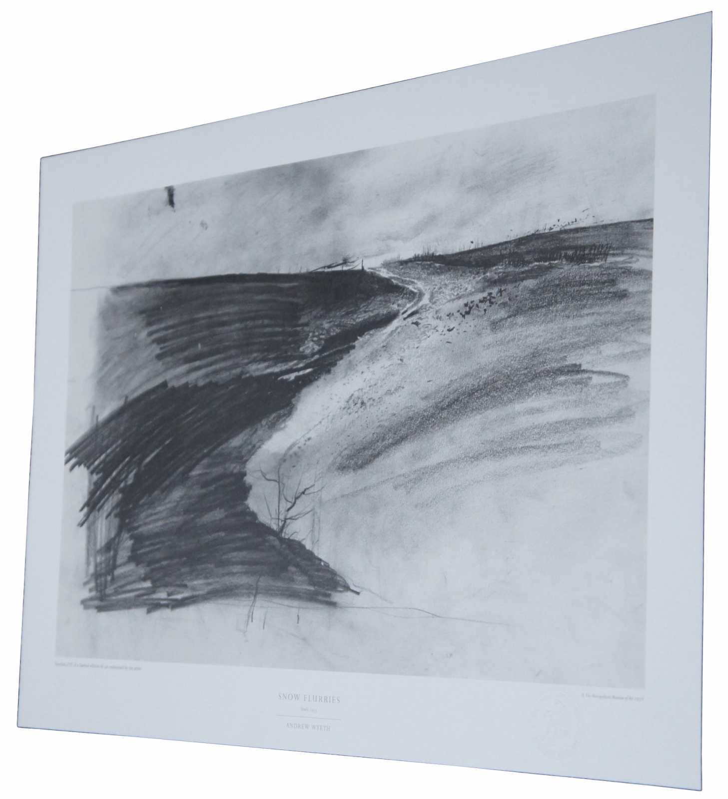 Snow Flurries – Study 1953” by Andrew Wyeth. From a portfolio of 10 facsimile collotype prints of drawings by Andrew Wyeth. Produced by The Metropolitan Museum of Art, 1976. The portfolio is certified and signed by Andrew Wyeth which was produced in a limited edition of three hundred sets. Photocopy of original certification included. This was set 218/300 printed by the craftsmen of the Triton Press New York, July 4th, 1976.
