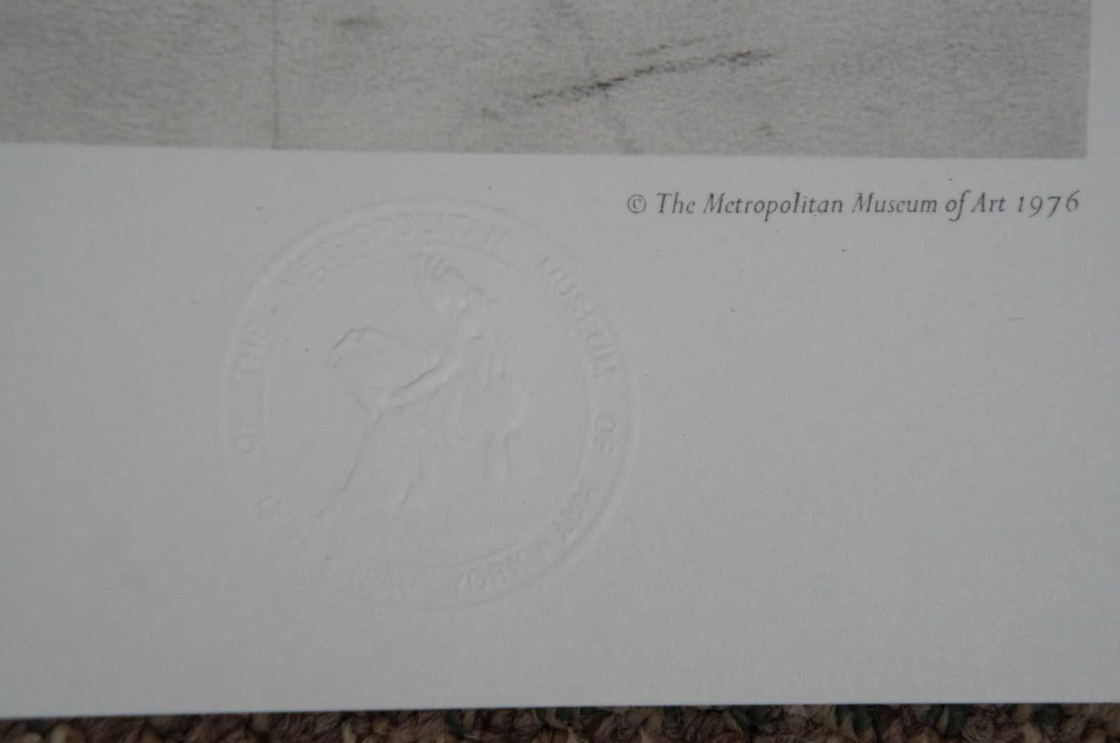 Nogeeshik – Study, 1972” by Andrew Wyeth. From a portfolio of 10 facsimile collotype prints of drawings by Andrew Wyeth. Produced by The Metropolitan Museum of Art, 1976. The portfolio is certified and signed by Andrew Wyeth which was produced in a limited edition of three hundred sets. Photocopy of original certification included. This was set 218/300 printed by the craftsmen of the Triton Press New York, July 4th, 1976.