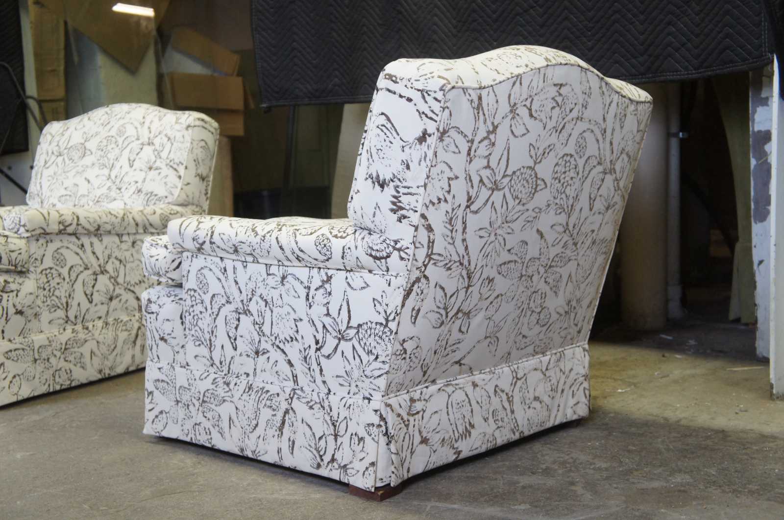 Pair of Mid Century flroal arm chairs. Renovated by LT Laquaglia Inc of Dayton Ohio.