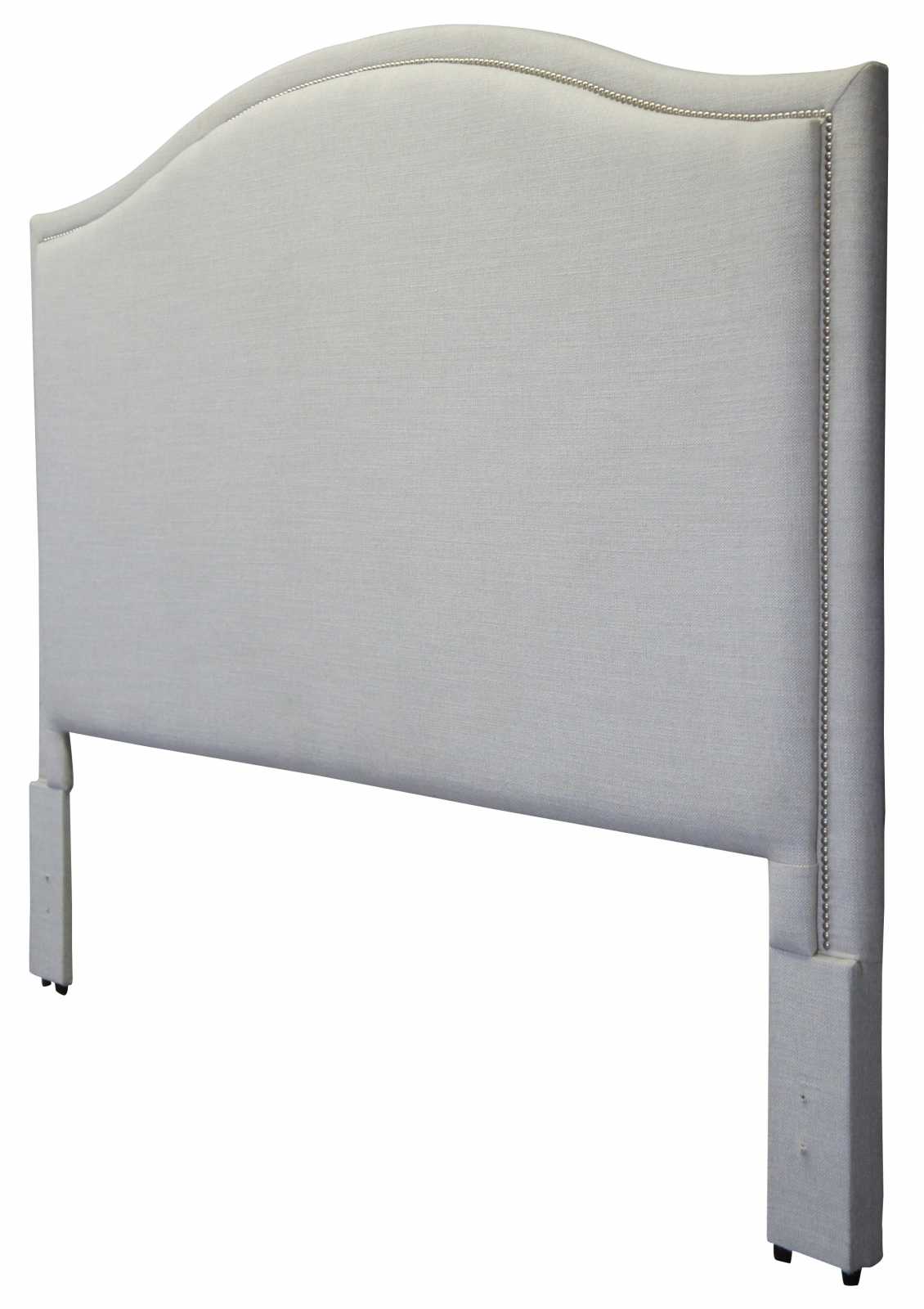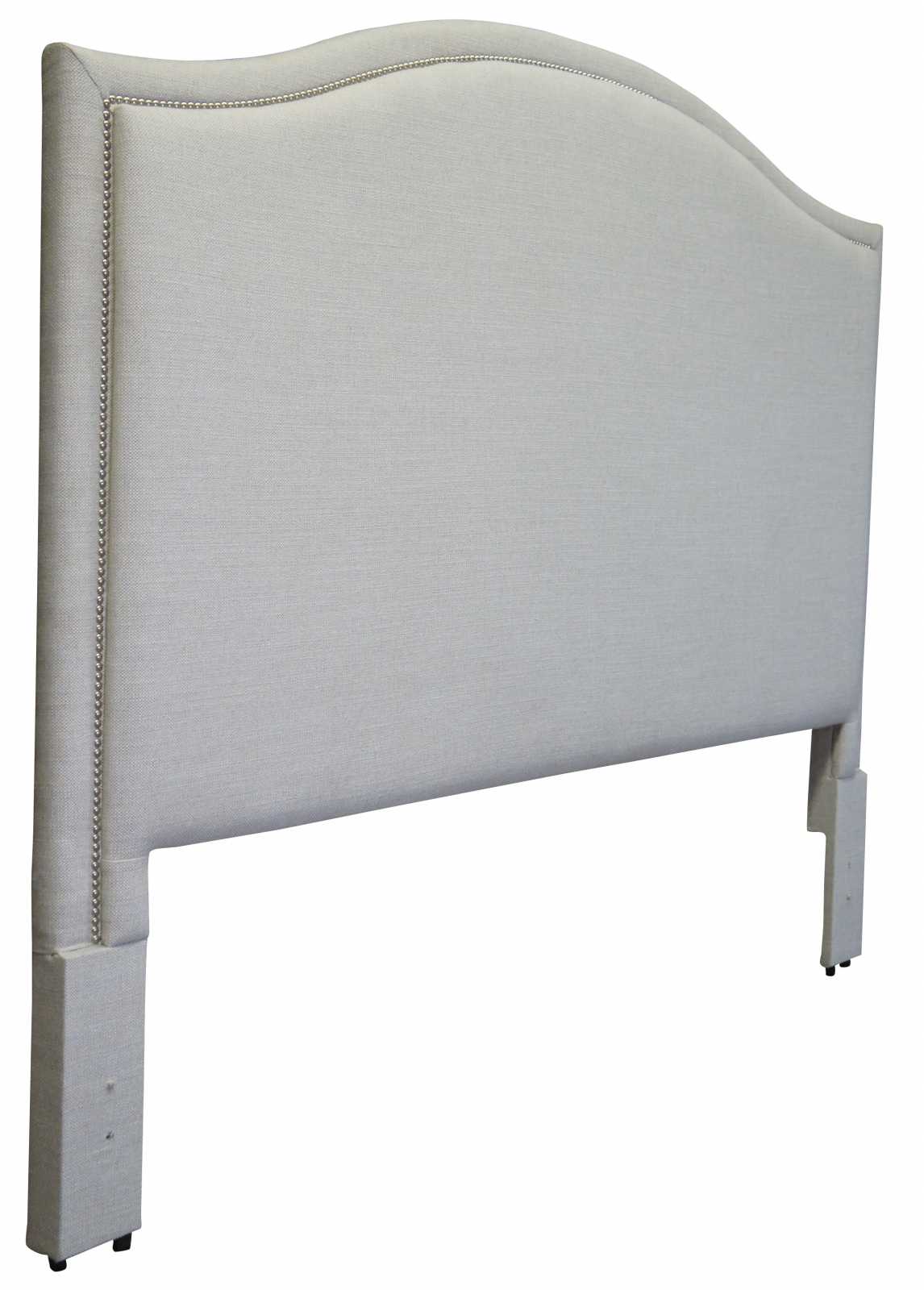 Bassett Furniture Vienna Linen Upholstered Queen Headboard. Features a camelback design with linen fabric 1431-1 and nickel finished nailhead trim.