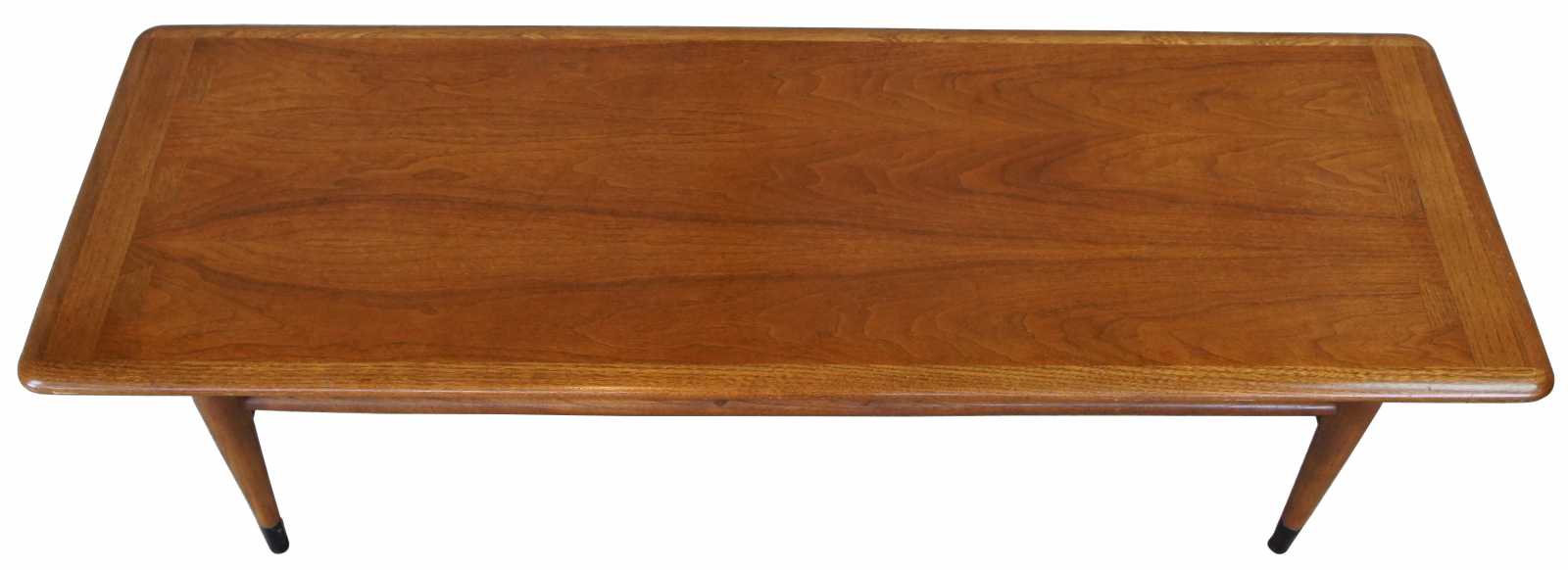 Circa 1966 Lane series 900-0 Acclaim coffee table. A rectangular form made from walnut with a two tone top feturing tongue and groove design.