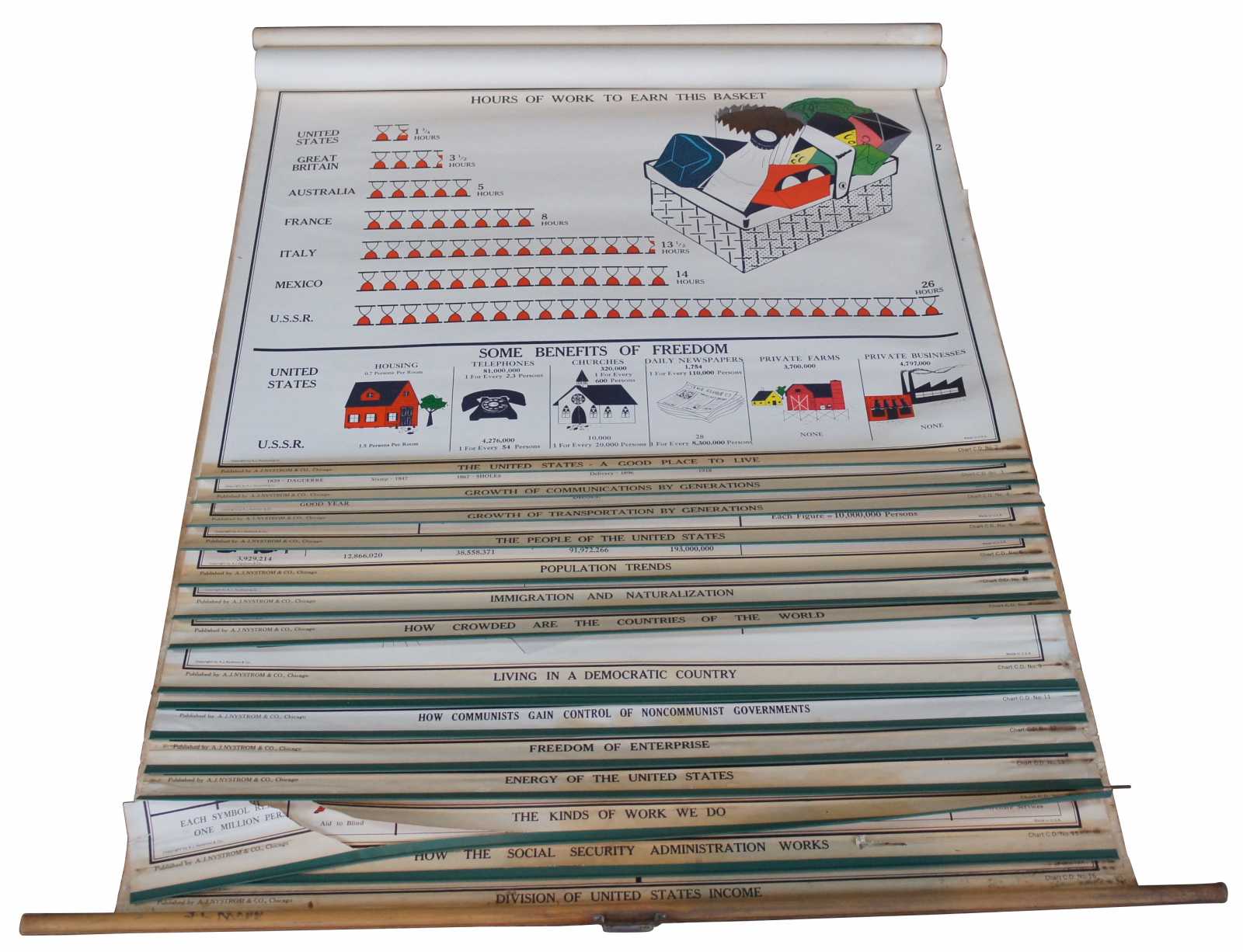 Uncle Sam Grows Up, The United States - A Good Place to Live, Growth of Communication by Generations, Growth of Transportation by Generations, The People of the United States, Population Trends, Immigration and Naturalization, How Crowded are the Countries of the World, Living in a Democratic Country, How Communists Gain Control of Noncommunist Governments, Freedom of Enterprise, Energy of the United States, The Kinds of Work We Do, How the Social Security Administration Works, and Division of United States Income.