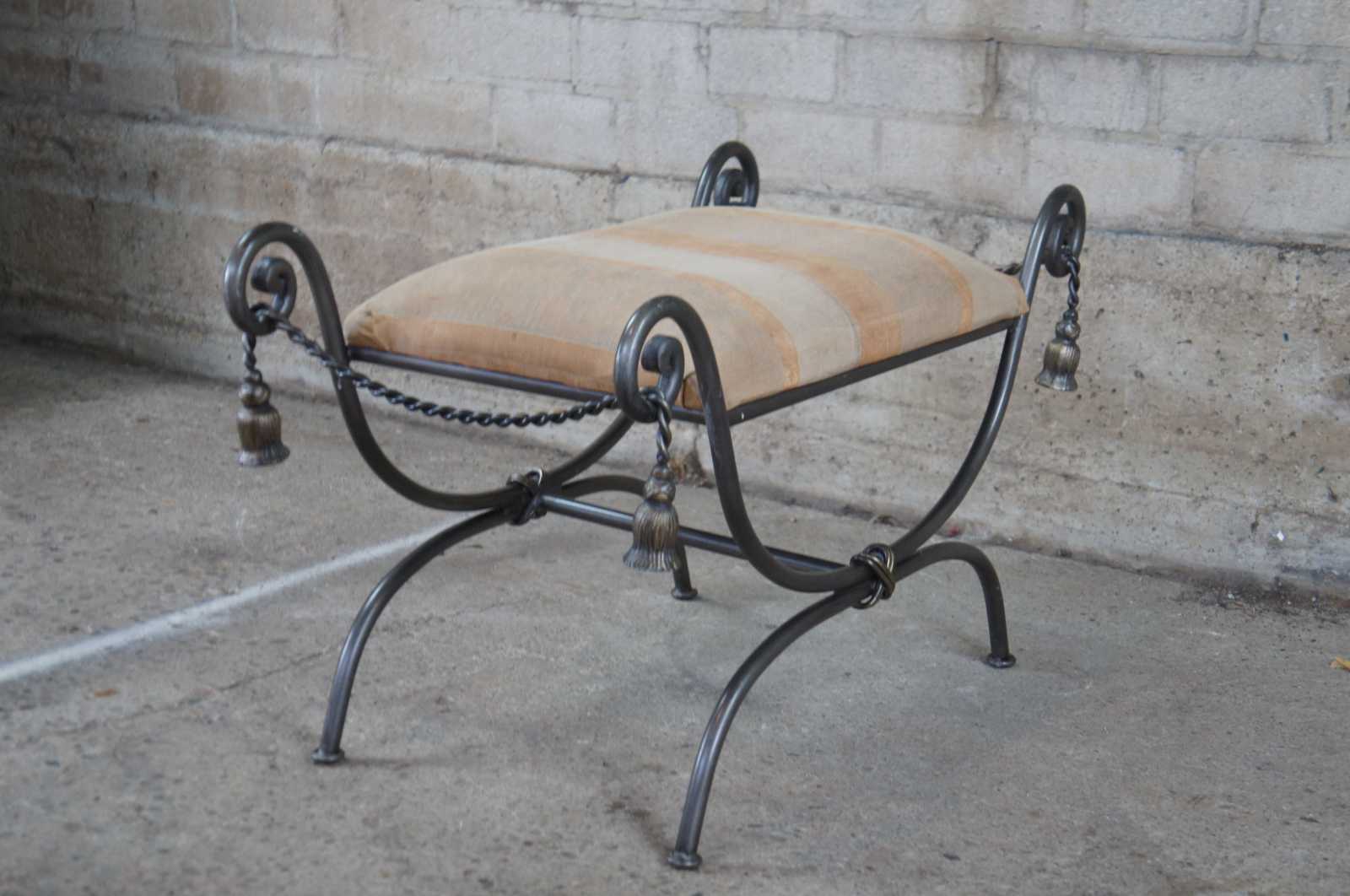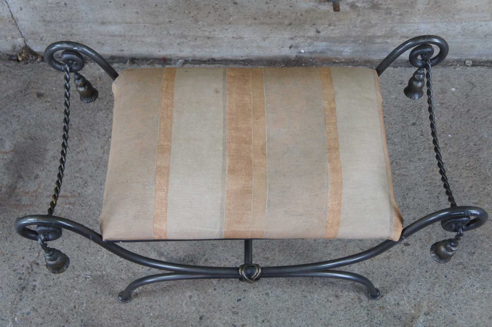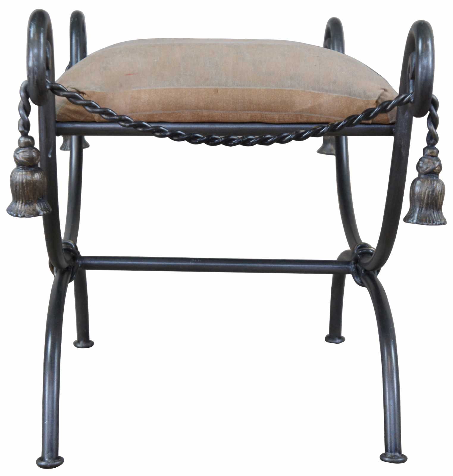 Vintage 2001 Ethan Allen scrolled iron vanity bench or stool. 13-7167