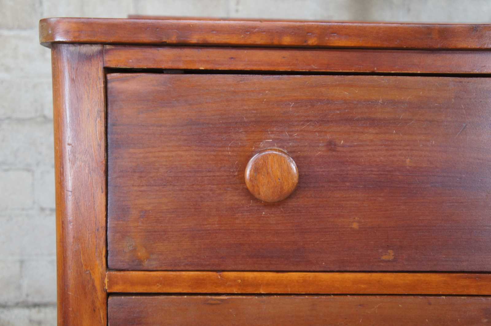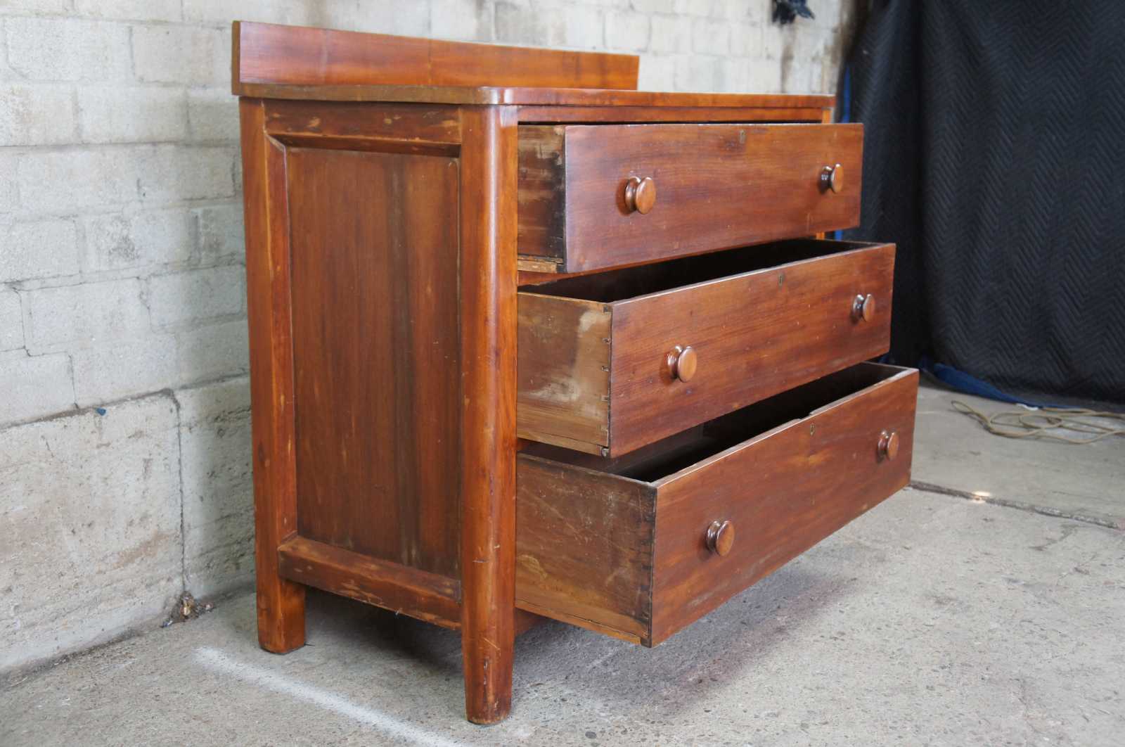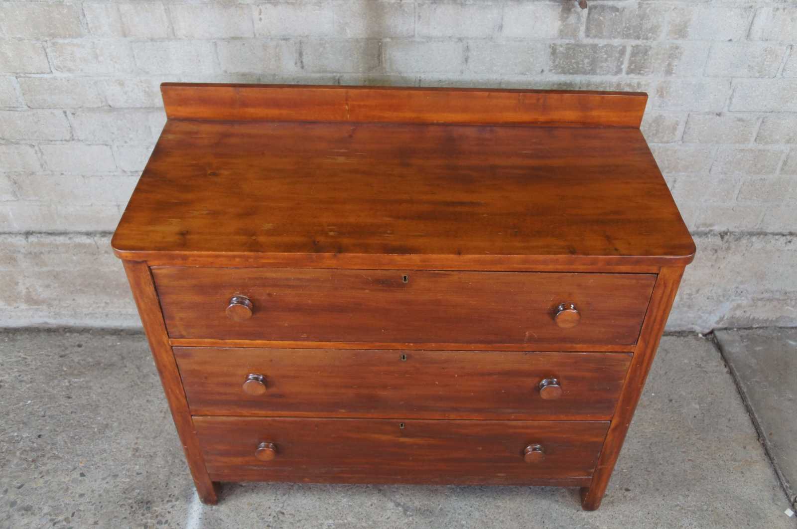 Civil War era chest of drawers. Made of cherry featuring three hand dovetailed drawers with turned knobs, paneled sides, and backsplash.