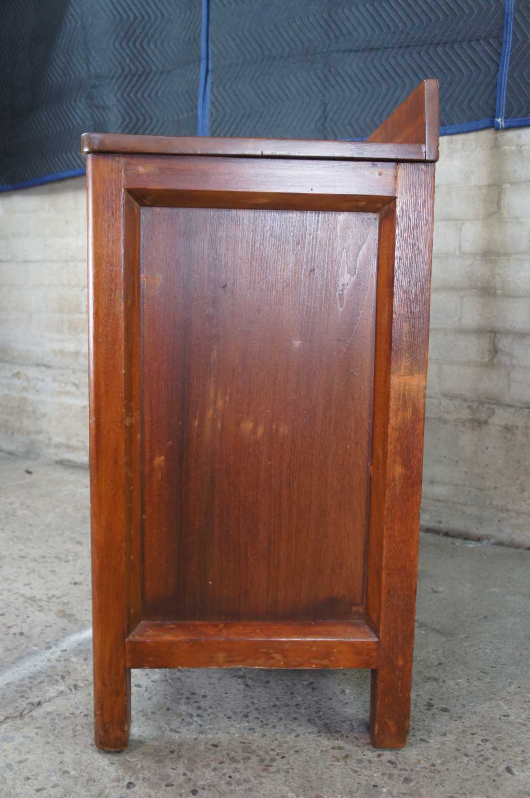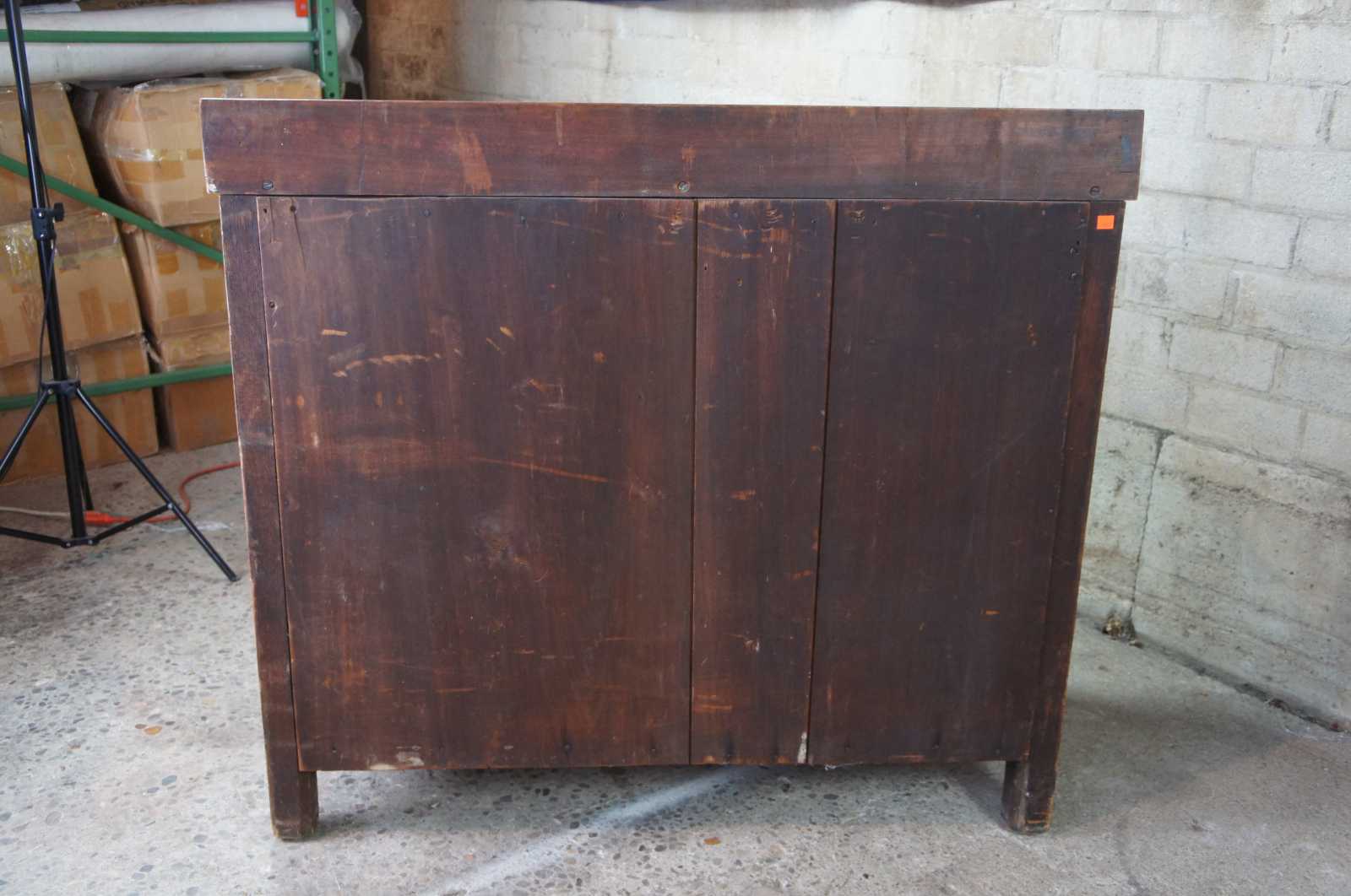 Good antique condition, wear and distressing commensurate with age and use, upper lock has been replaced, no bottom lock, no key.
