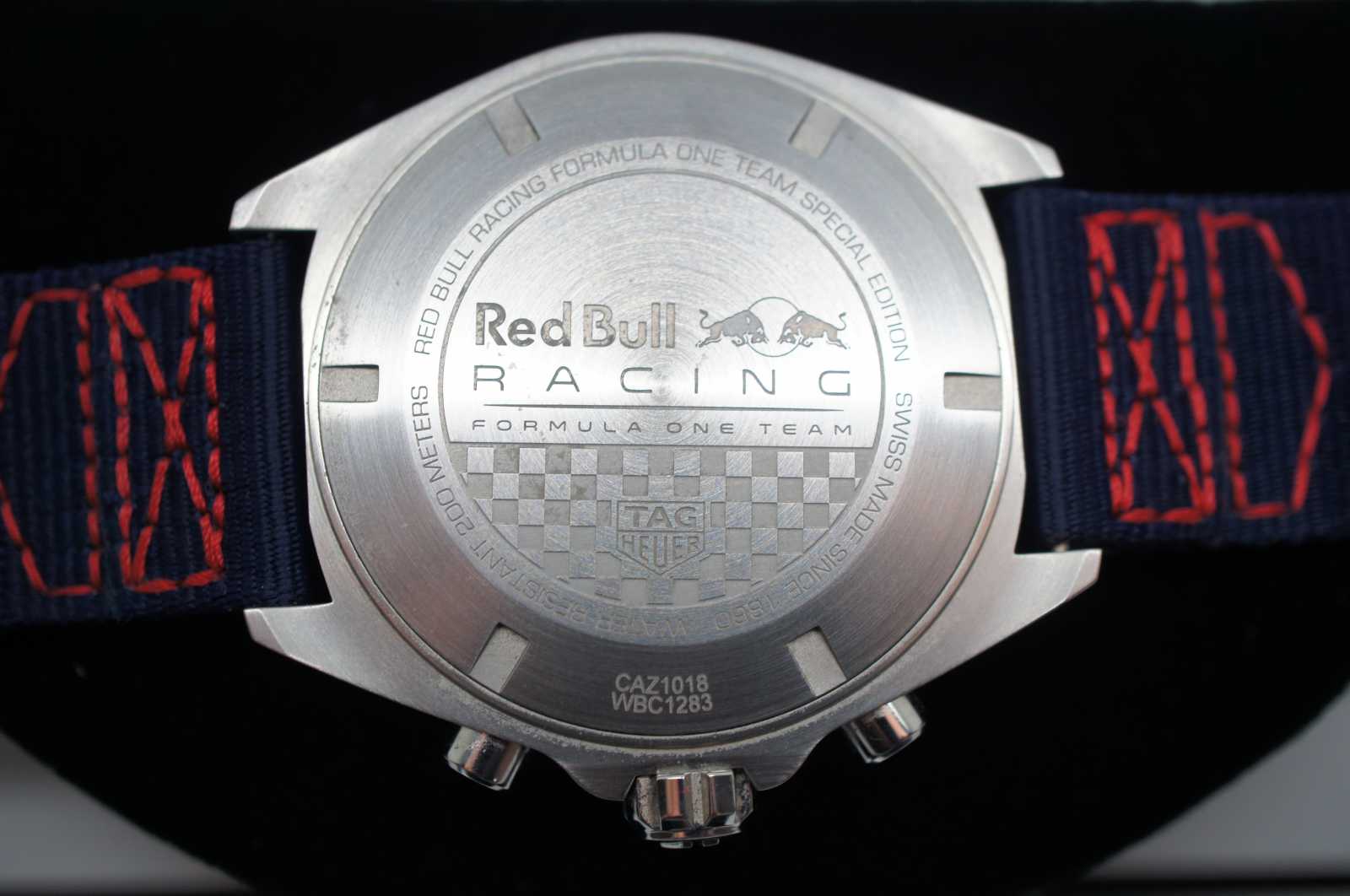 Tag Heuer CAZ1018/WBC1283 Red Bull Racing Formula One Team Special Edition wrist watch with nylon band.