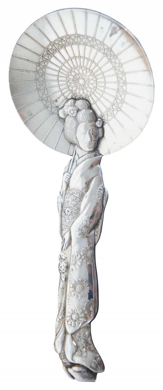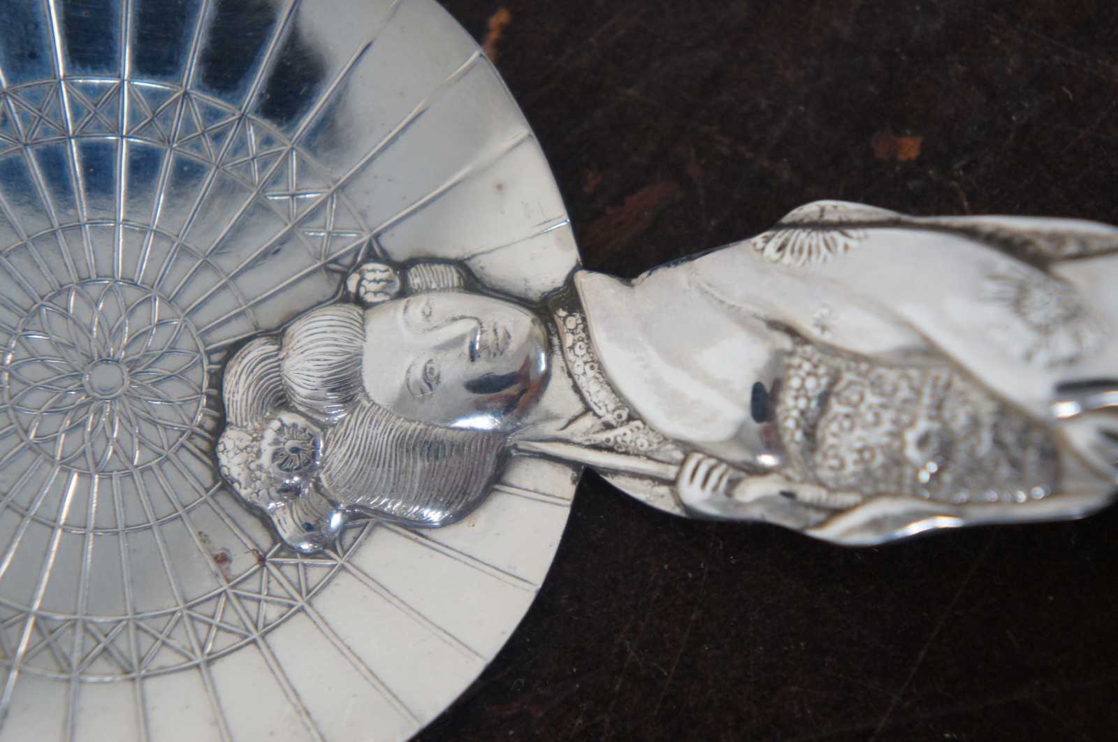 Vintage sterling silver geisha shaped spoon, engraved on the reverse commemorating the Al Malaikah Temple, XVIII Olympiad 1964, Tokyo, Mark T. Gates Potentate. Al Malaikah is a division of the Shriners. Includes box.