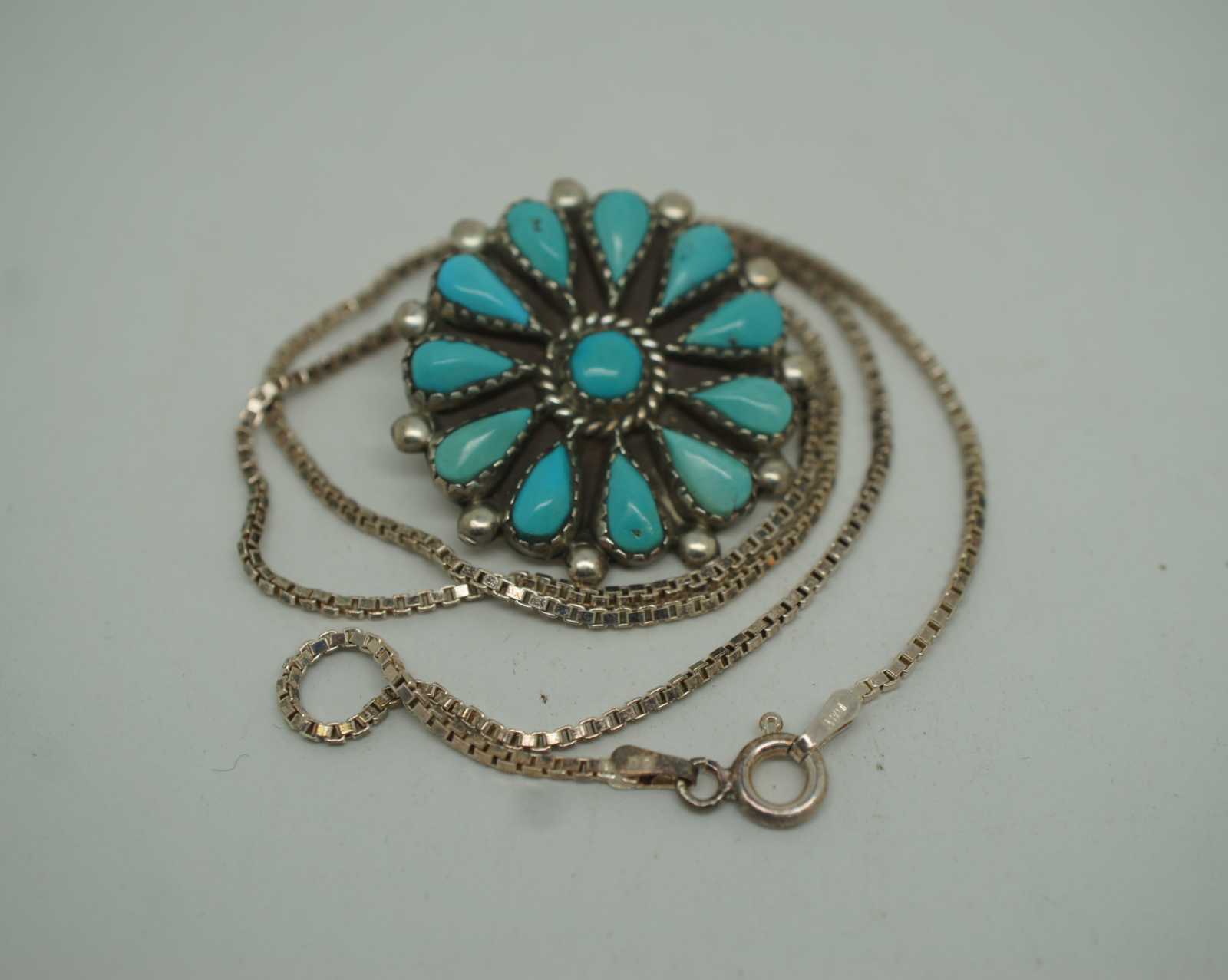 Zuni Petit point Jewelry began around 1920-1930 and was a unique form of Turquoise Jewelry created by the Zuni Indians. A Petit Point stone is a tiny round, oval, rectangle, pear or square shaped stone hand cut by a Zuni Indian Lapidarist. It is special Jewelry that is impressive wearable art.