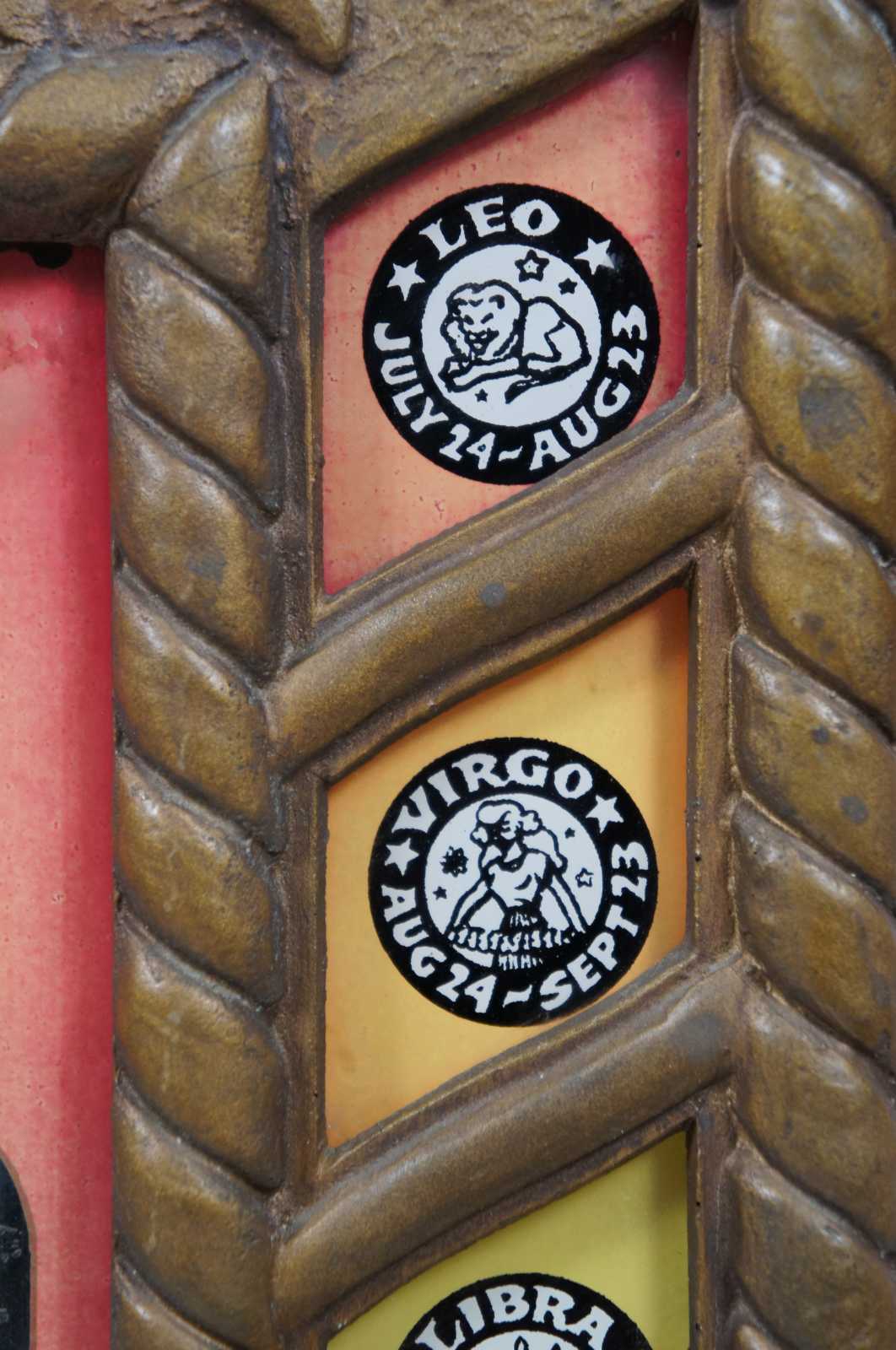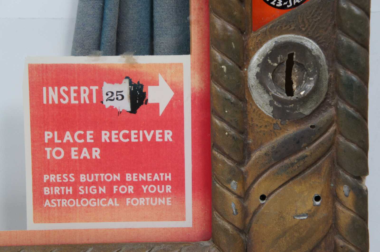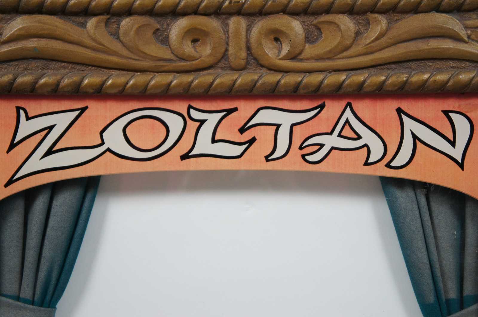 Original front cabinet proscenium door or window from a 1969 Zoltan the Astrological Wonder machine by Prophetron of Massachusetts. Zoltan the Astrological wonder was the true inspiration for the Movie Big with Tom Hanks. Approximately 50 manufactured by Prophetron.