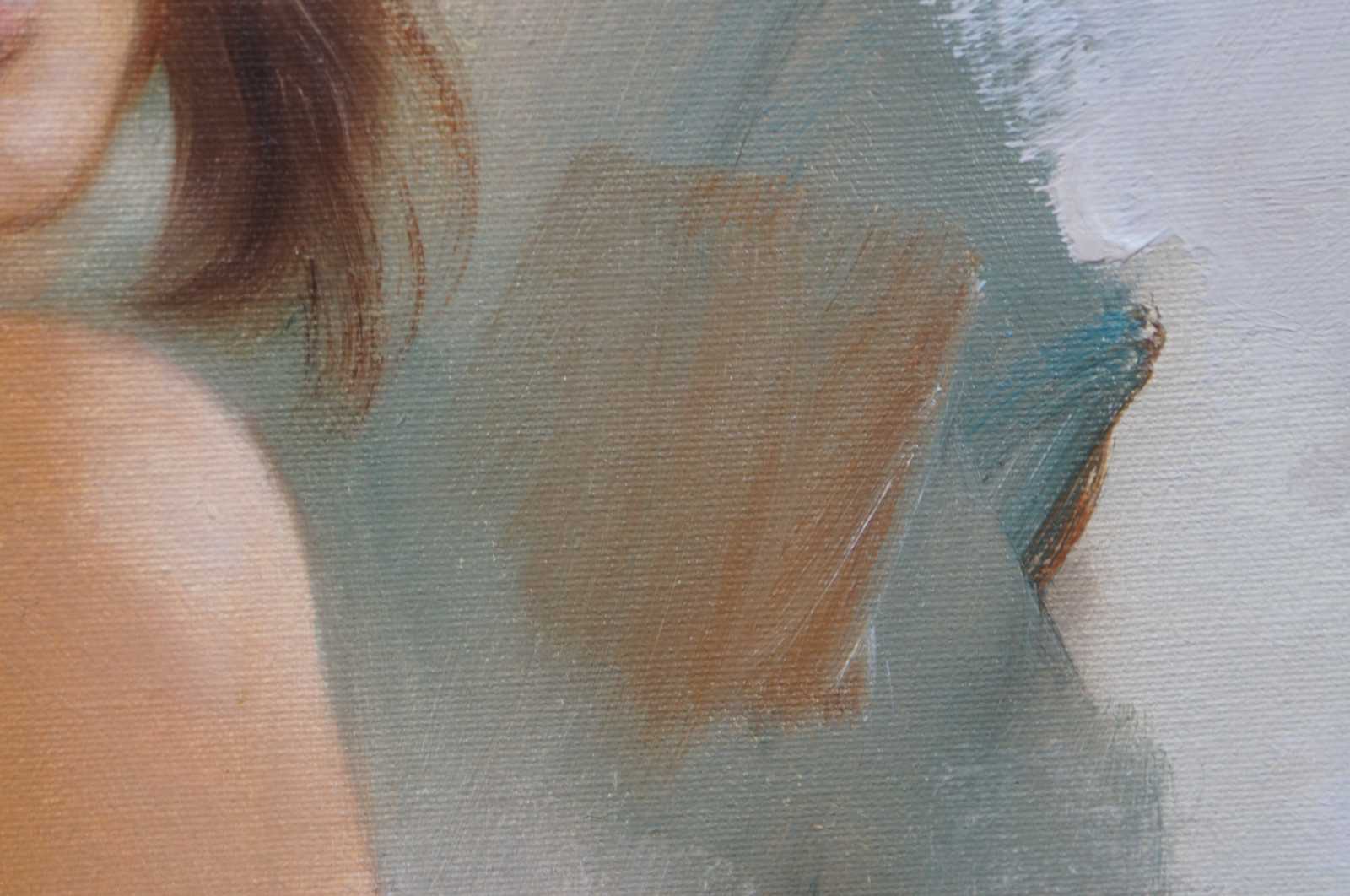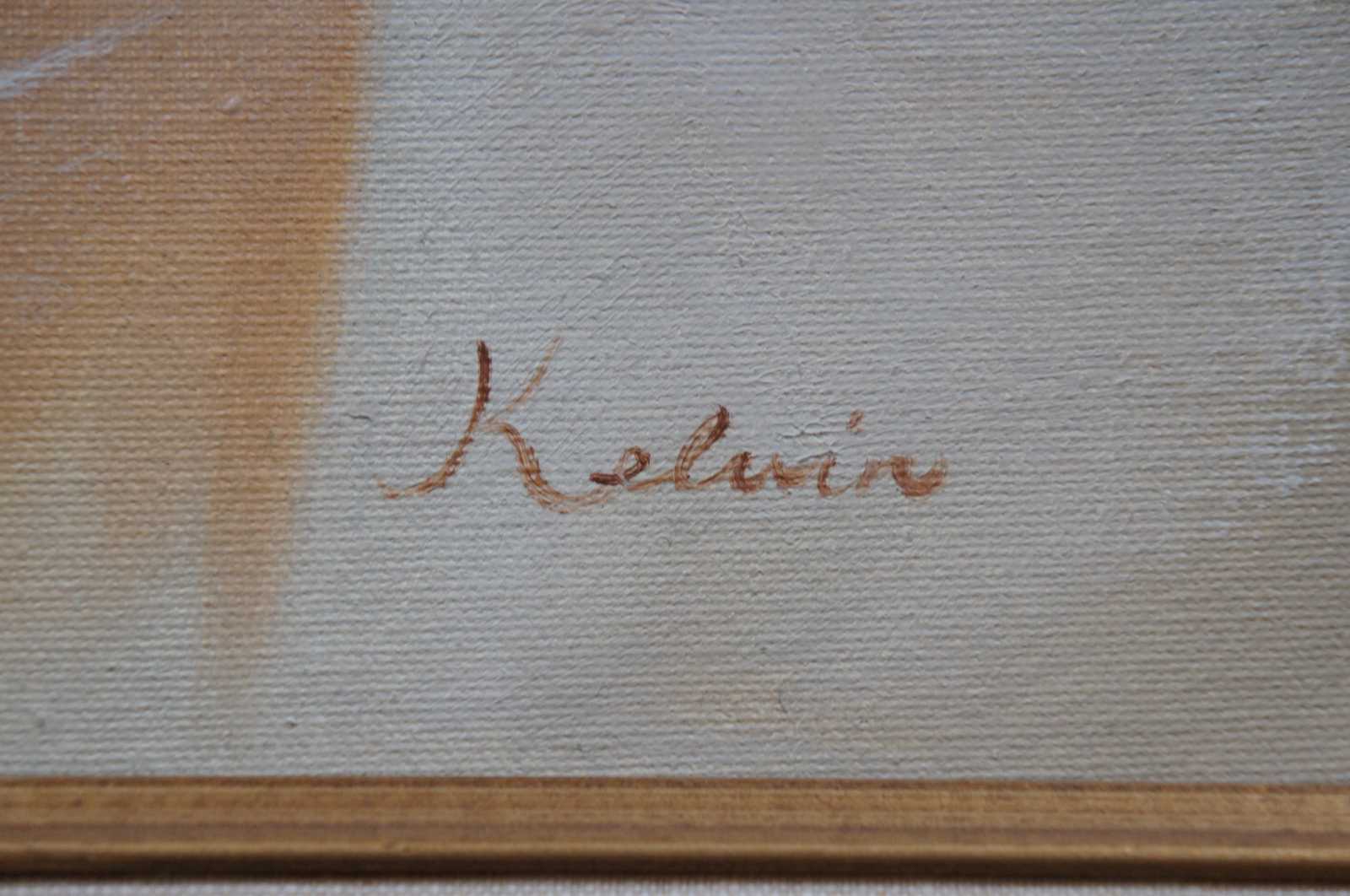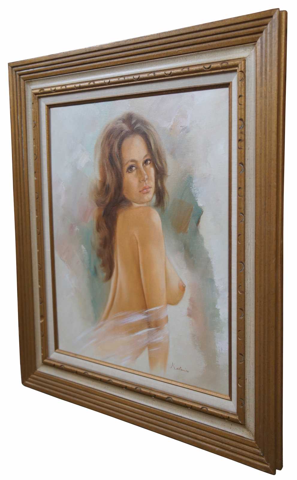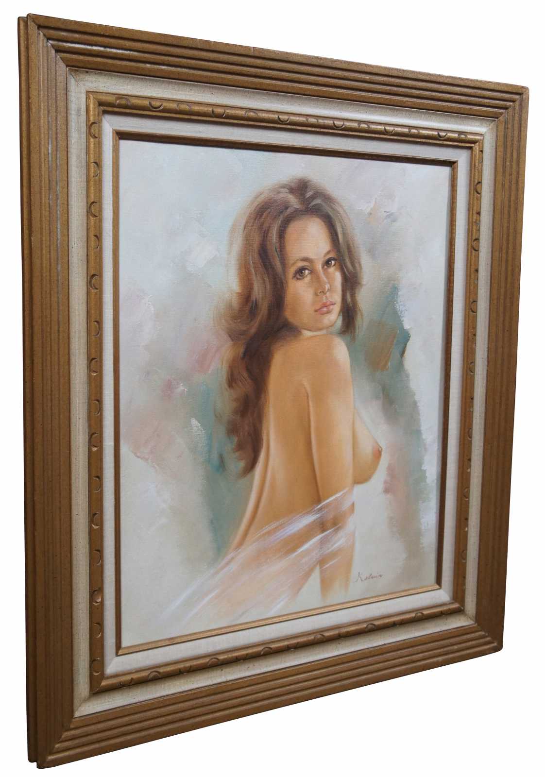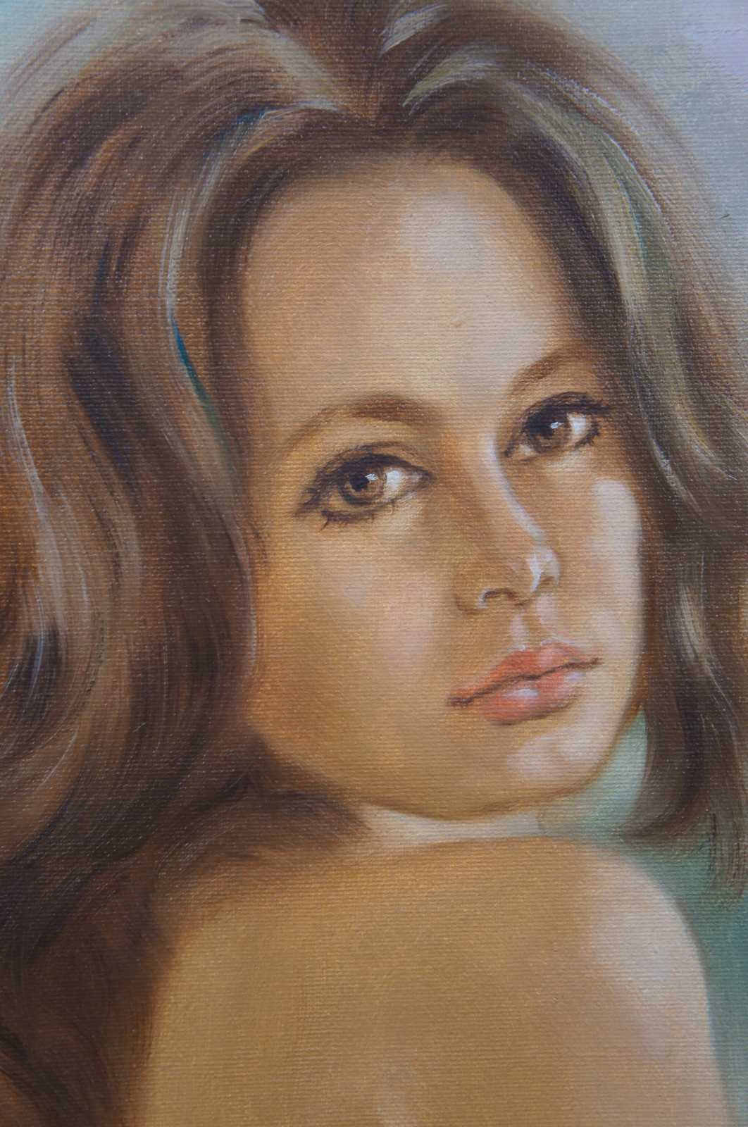 20th century original oil painting on canvas of a nude woman with brown hair, signed Kelvin.