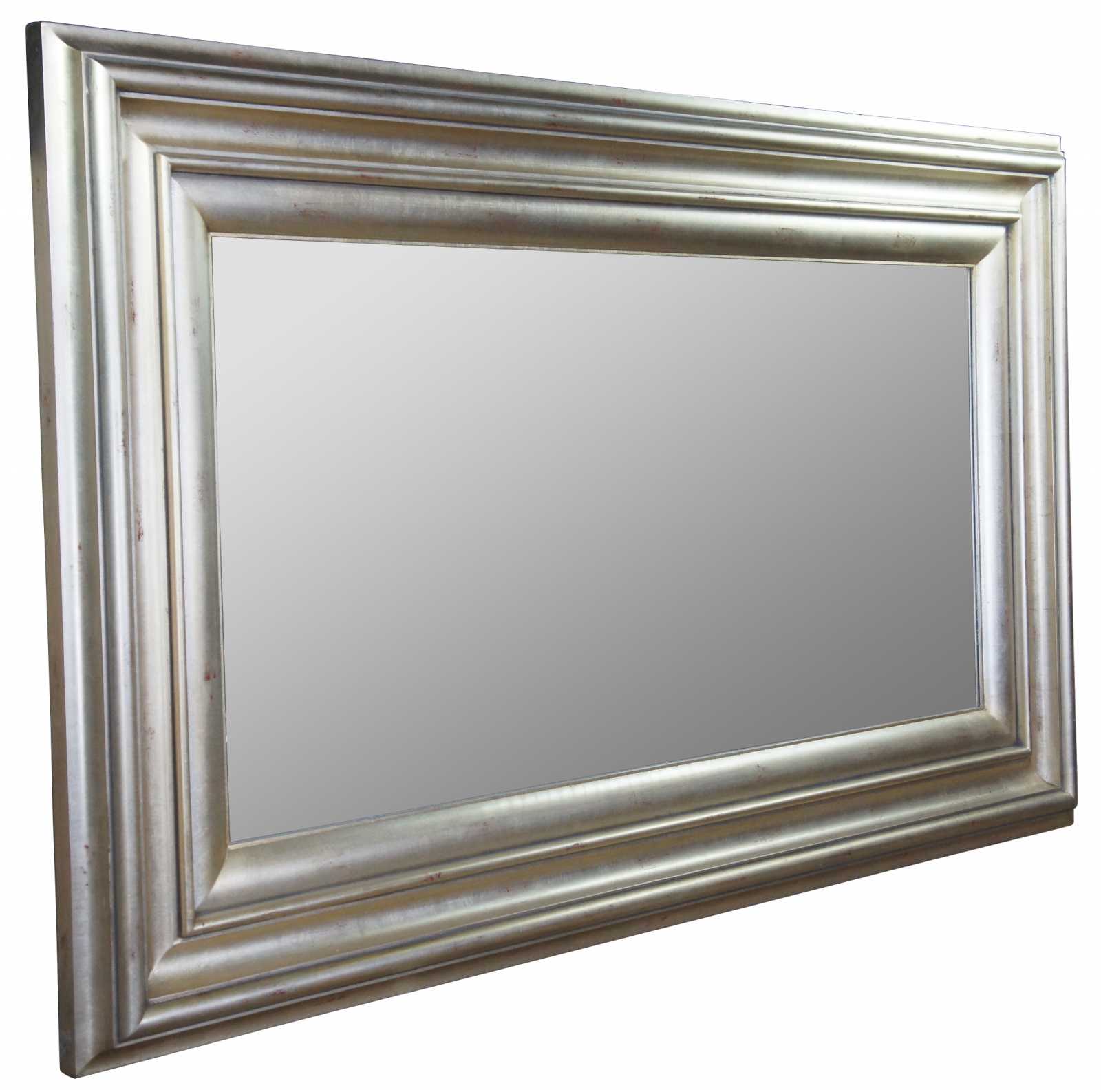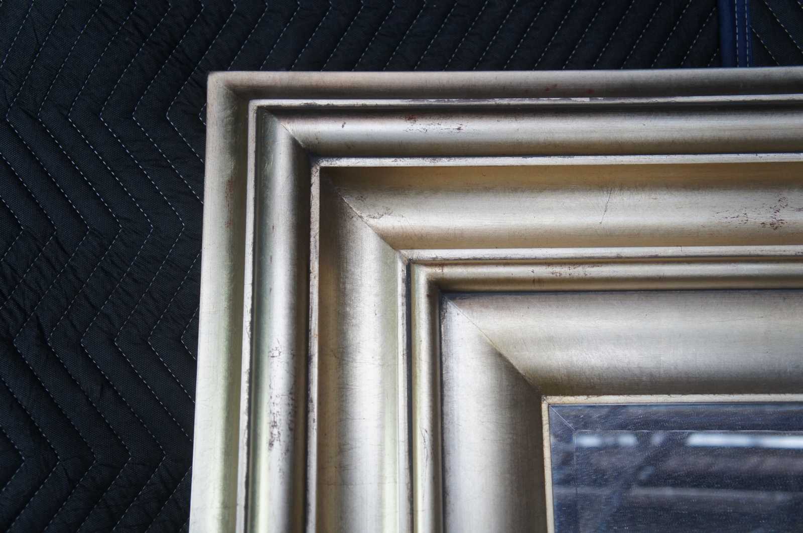 Oversized modern wall mirror. Great for user over a mantel/ along a wall. Black and gold mottled finish with beveled glass.