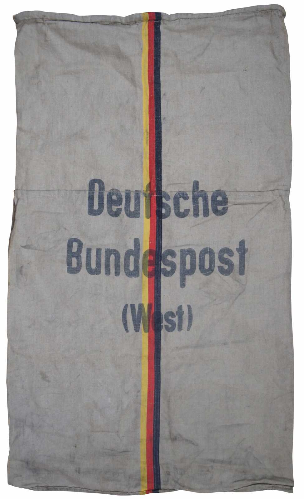 Vintage West German post office canvas mail sack, marked Deutsche Bundespost (West) 50/71.
