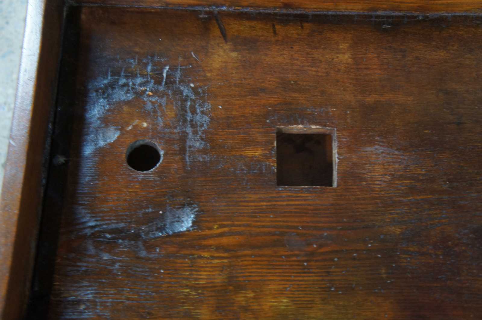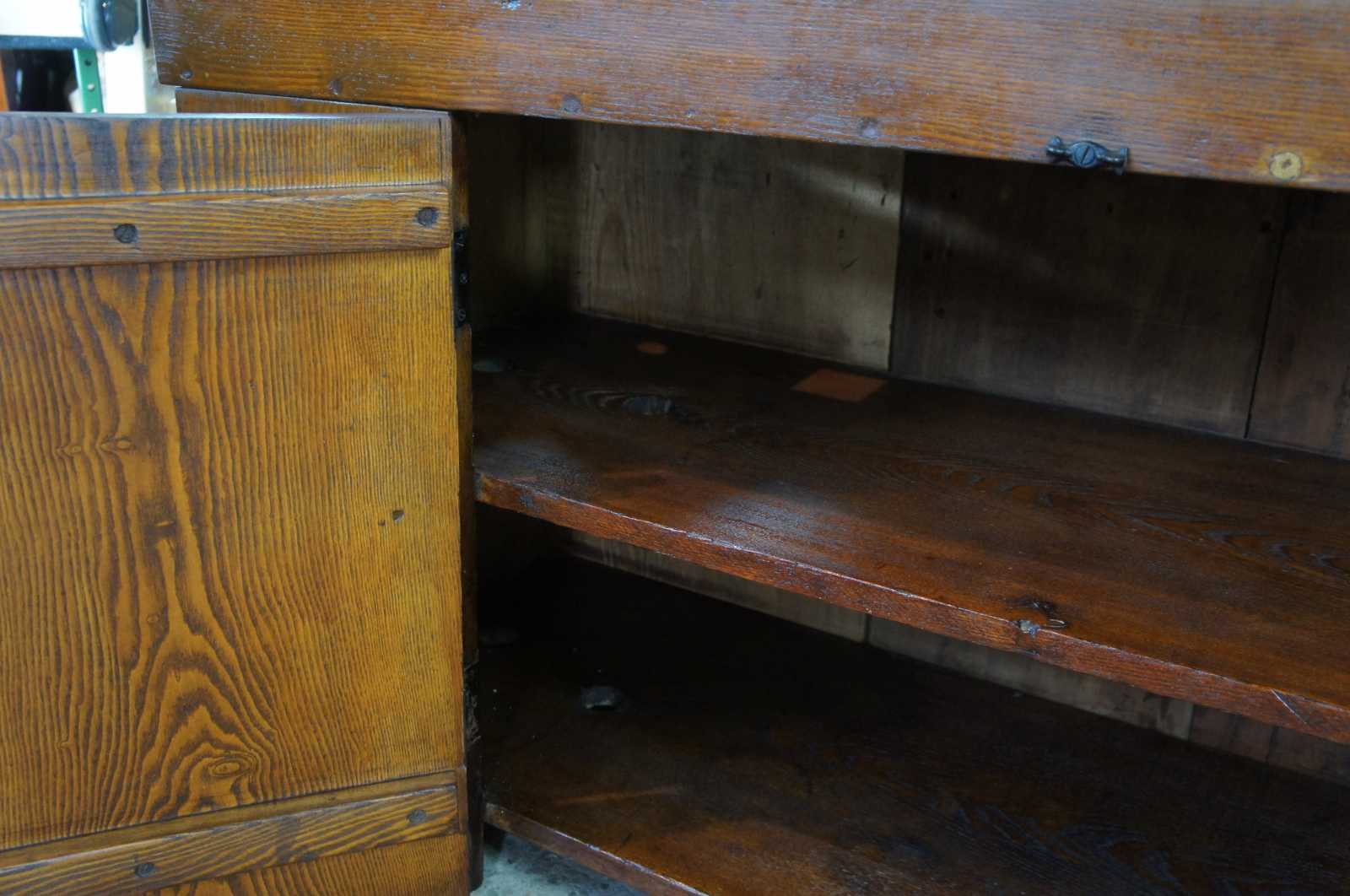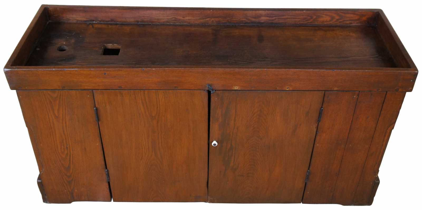 Antique Early American dry sink cabinet. Made of oak featuring primitive styling.