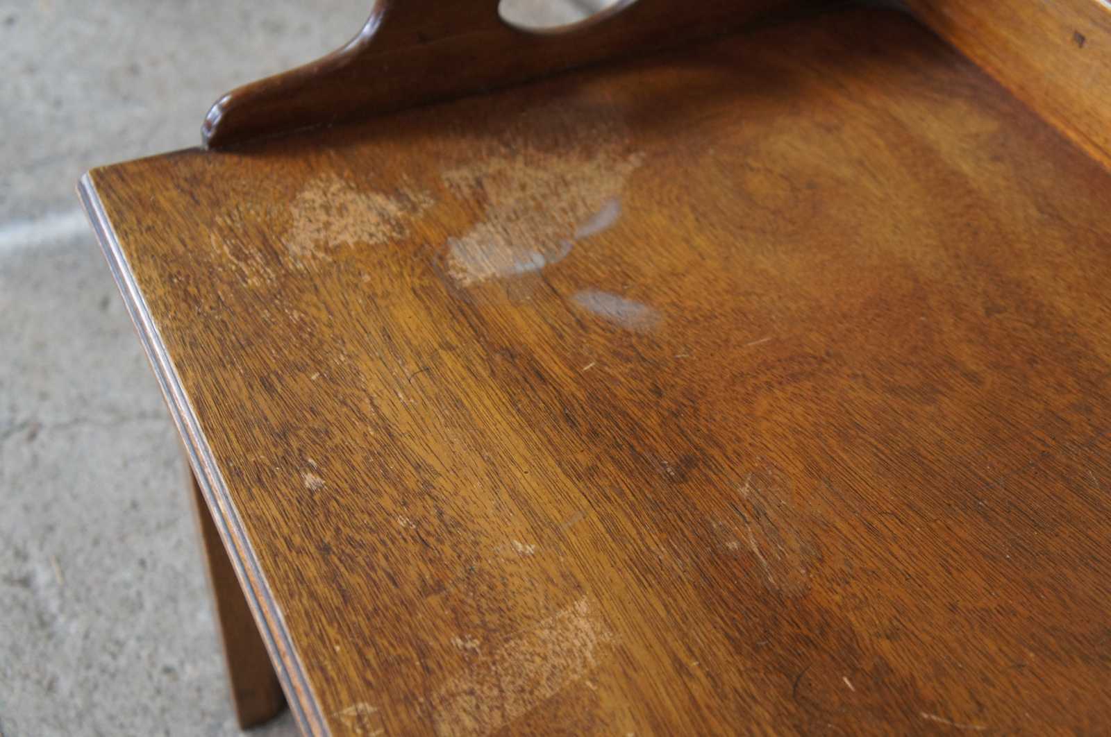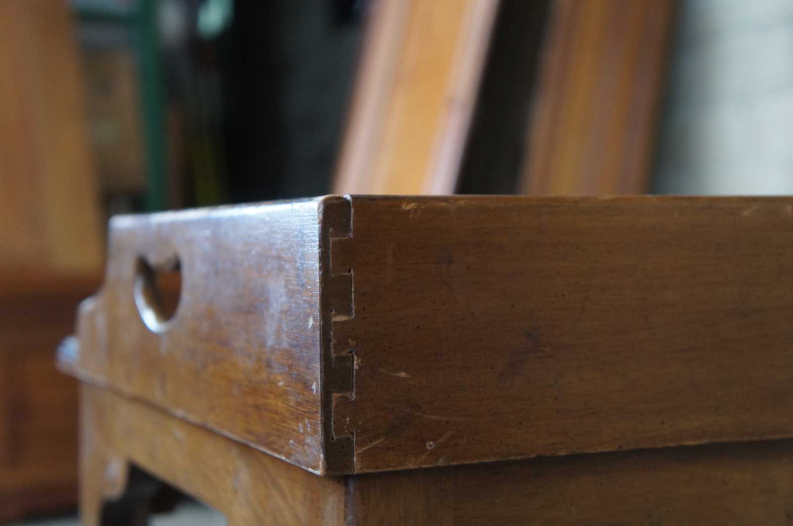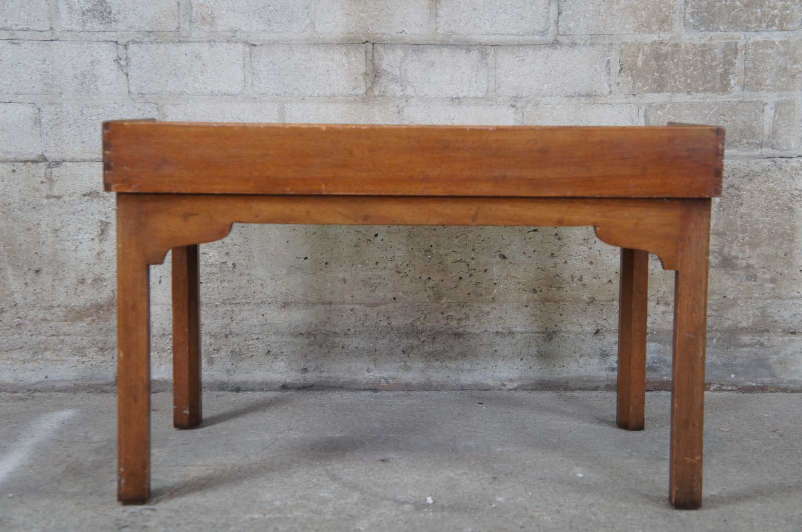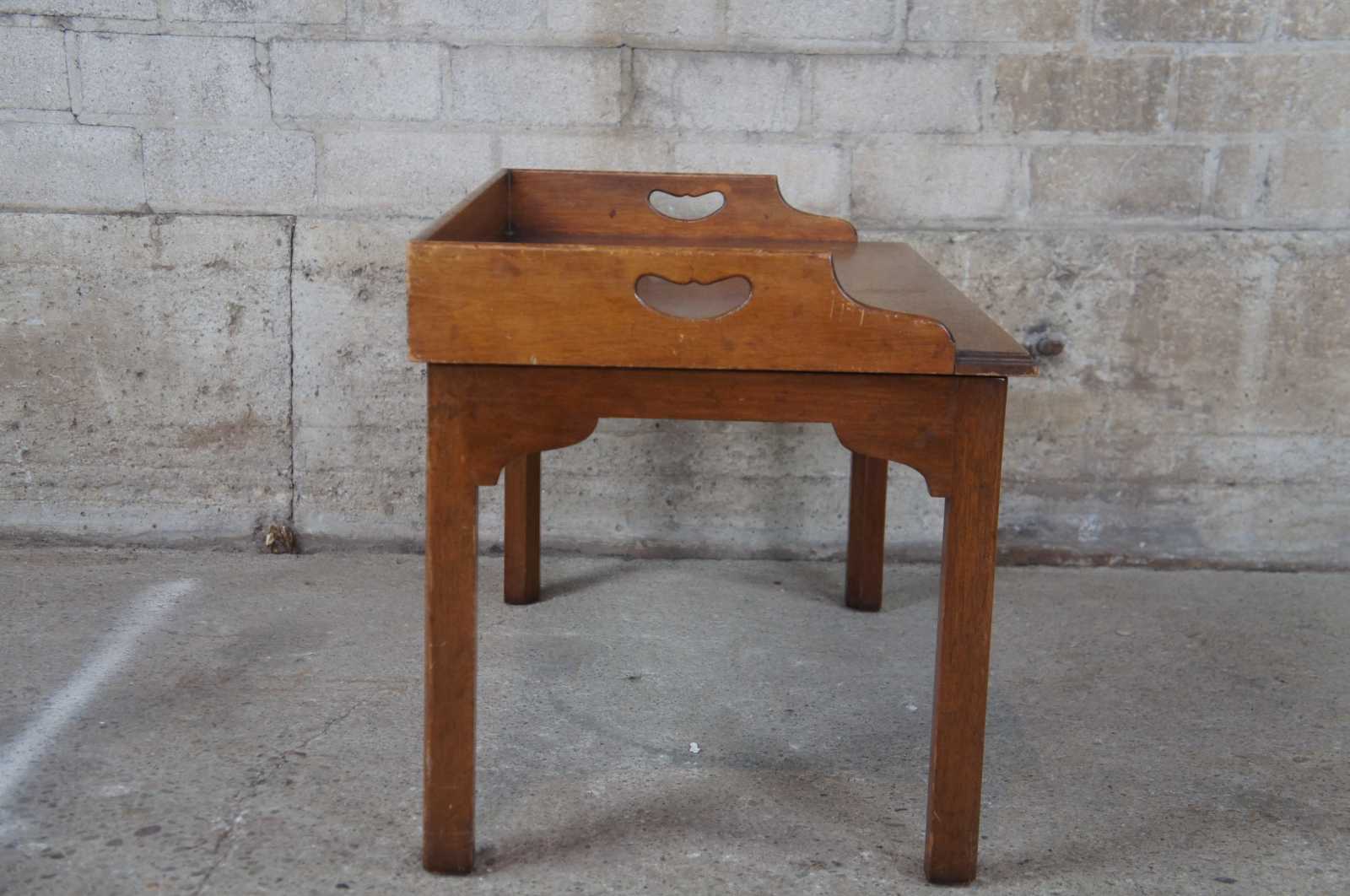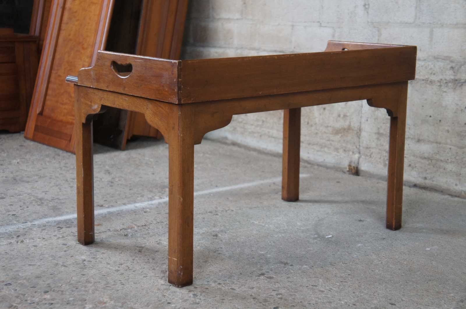 Vintage Early American style Morganton Tidewater Collection tray top butlers table 70-503. Made of oak featuring a removable butlers tray with handles.