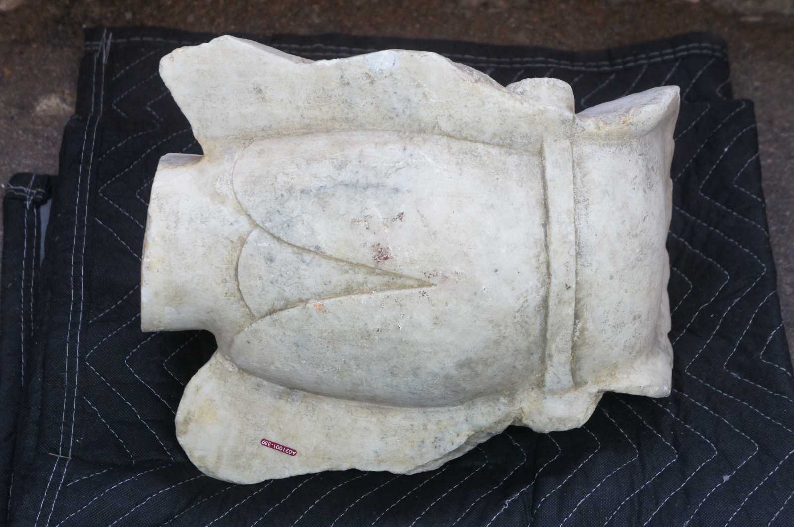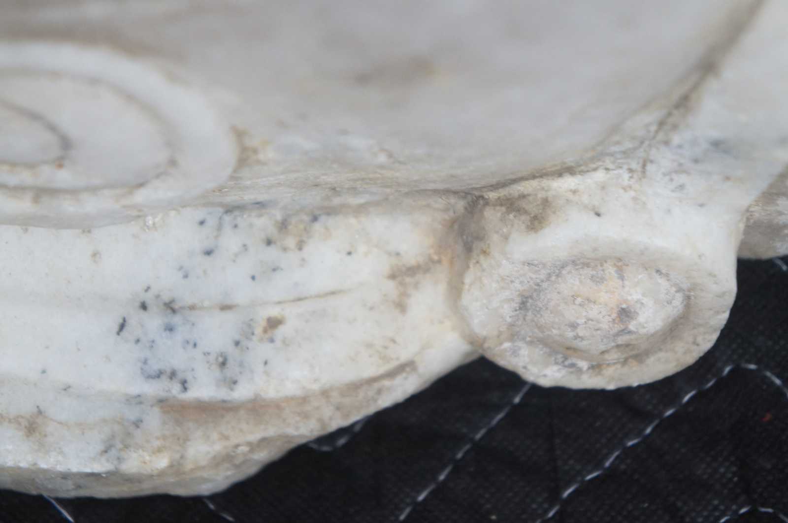 Antique carved Kwan Yin Buddha head sculpture or statue. Made of heavy white marble featuring a peaceful expression. Quan Yin (Kuan Yin or Guan Yin) is the bodhisattva of great compassion. A bodhisattva is a human being that has made a vow to dedicate all of their lifetimes to the enlightenment of all humankind. Bodhisattvas continue to reincarnate and return to the world to help guide others to enlightenment.