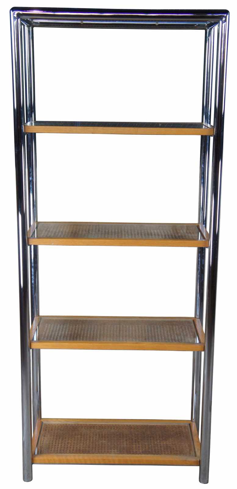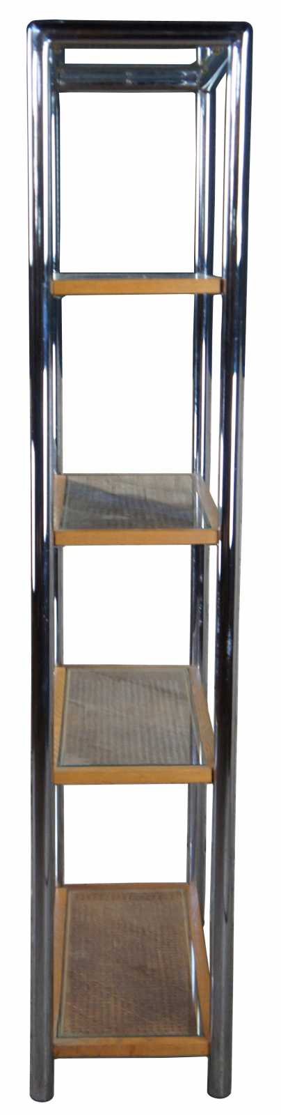 Vintage 1970s Milo Baughman for Design Institute etagere. Made of tubular chrome featuring caned shelves protected by glass.