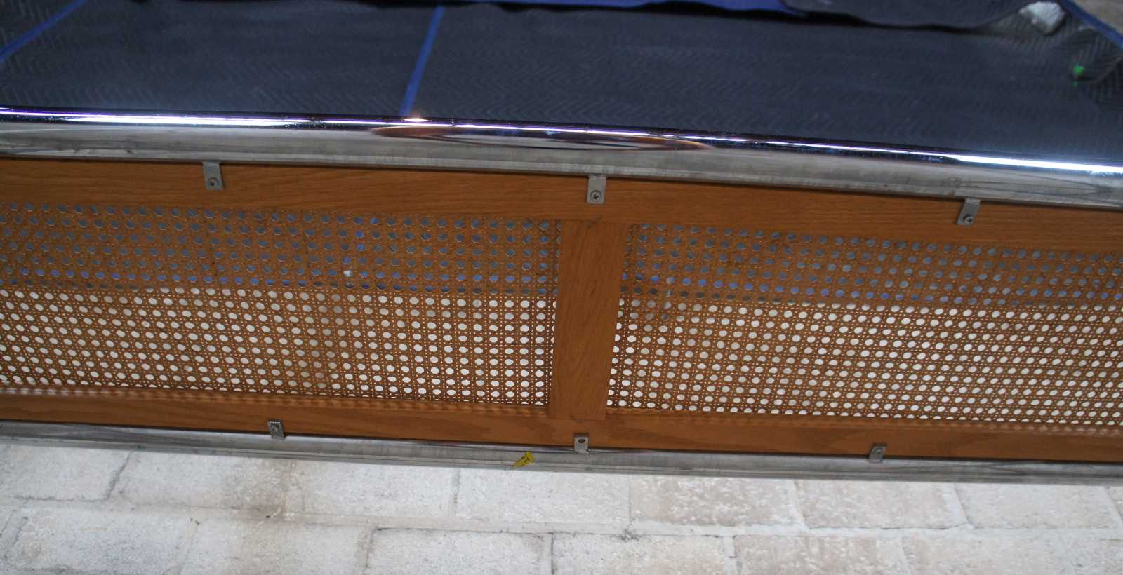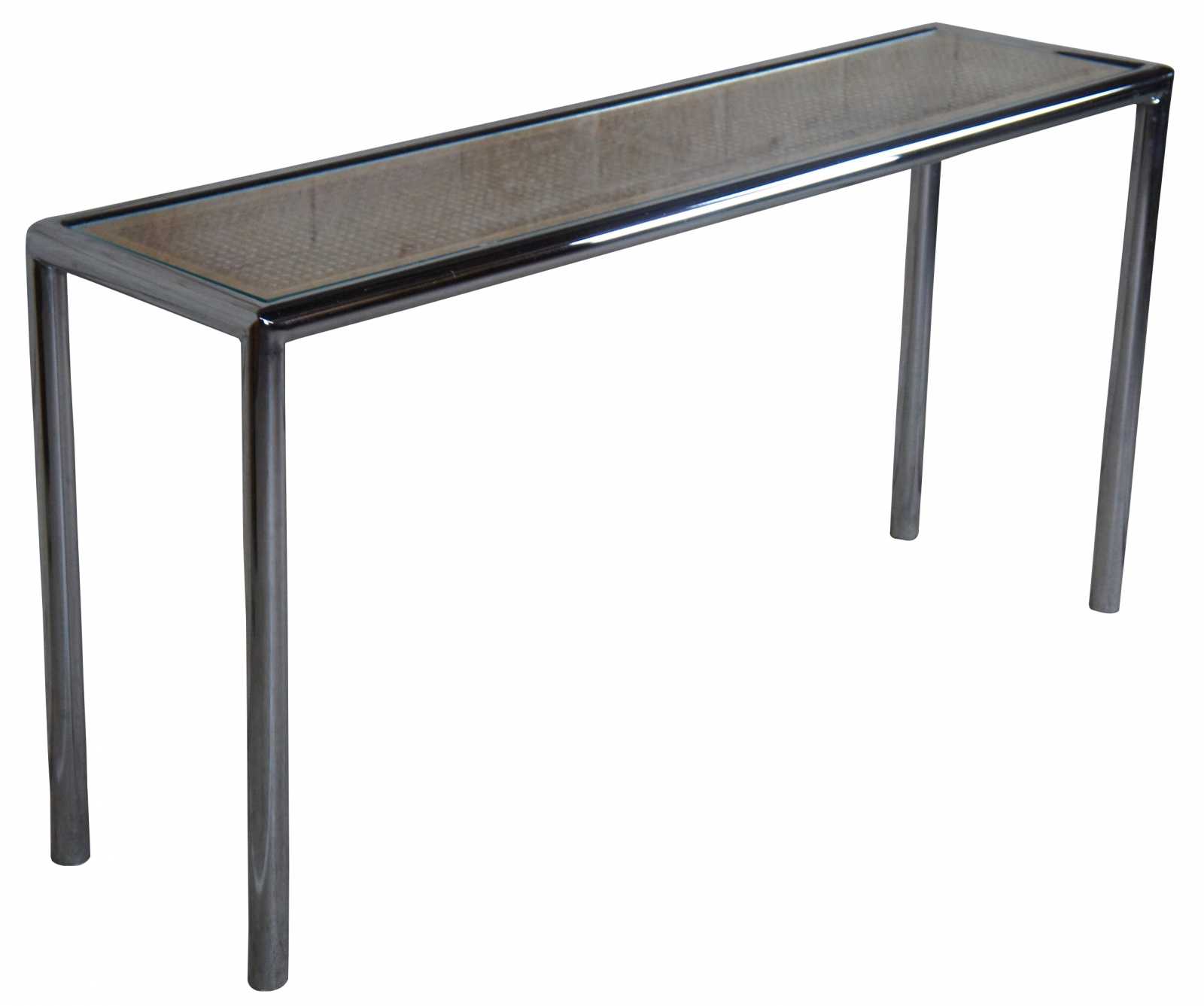 Vintage 1970s Milo Baughman for Design Institute sofa or console table. Made of tubular chrome featuring a caned top protected by glass.