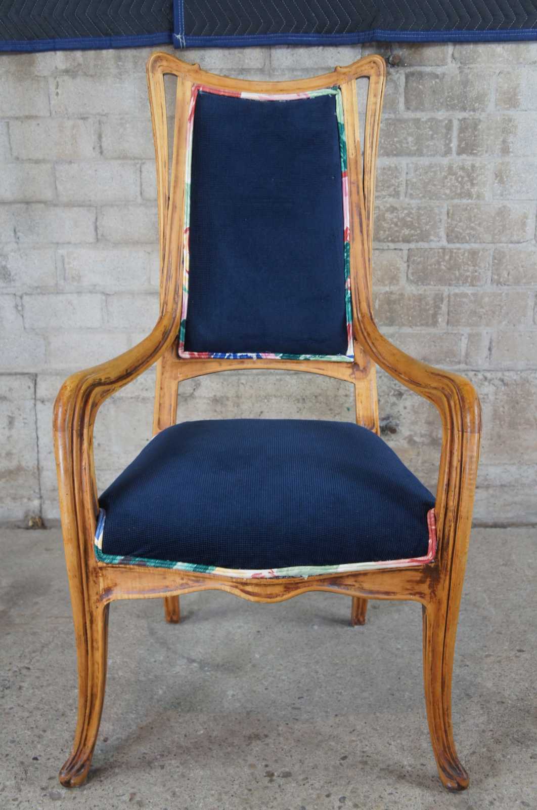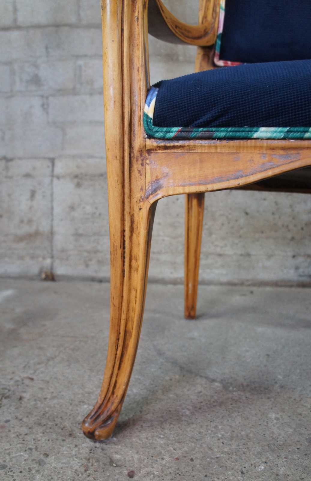 Vintage Interiors Crafts of Chicago Bentwood arm chair. Made of mahogany featuring carved frame with art nouveau and serpentine styling.