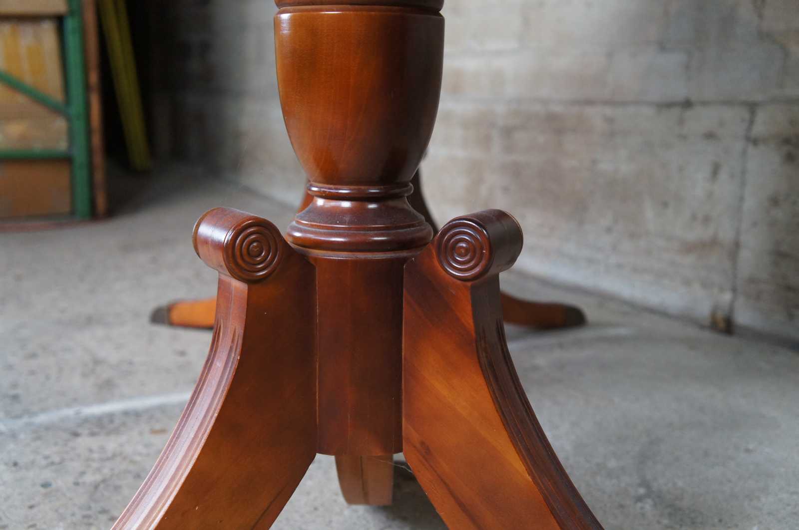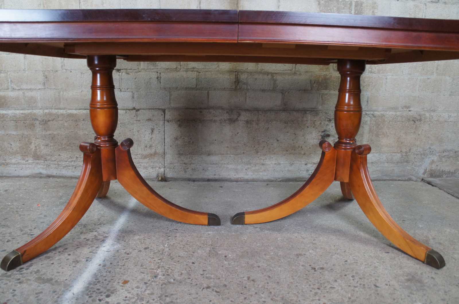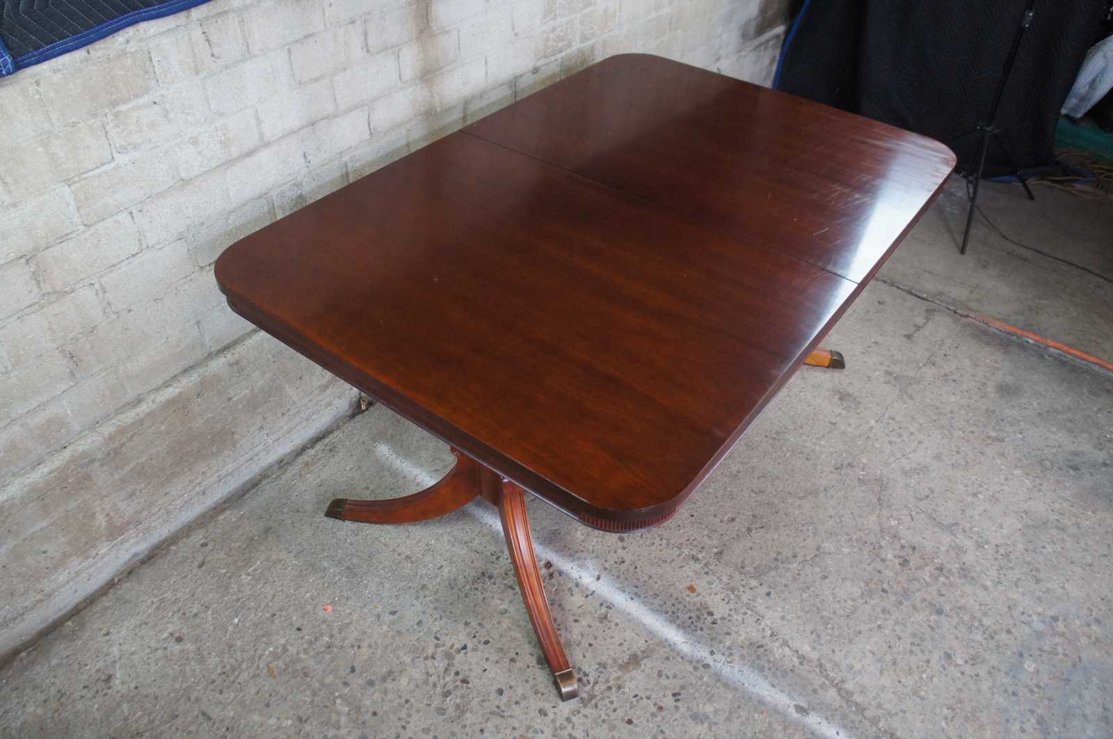 Mid Century Craddock dining table. Made of mahogany featuring Duncan Phyfe styling. 12" leaf and table pads included. Marked C900 / 64 on base.