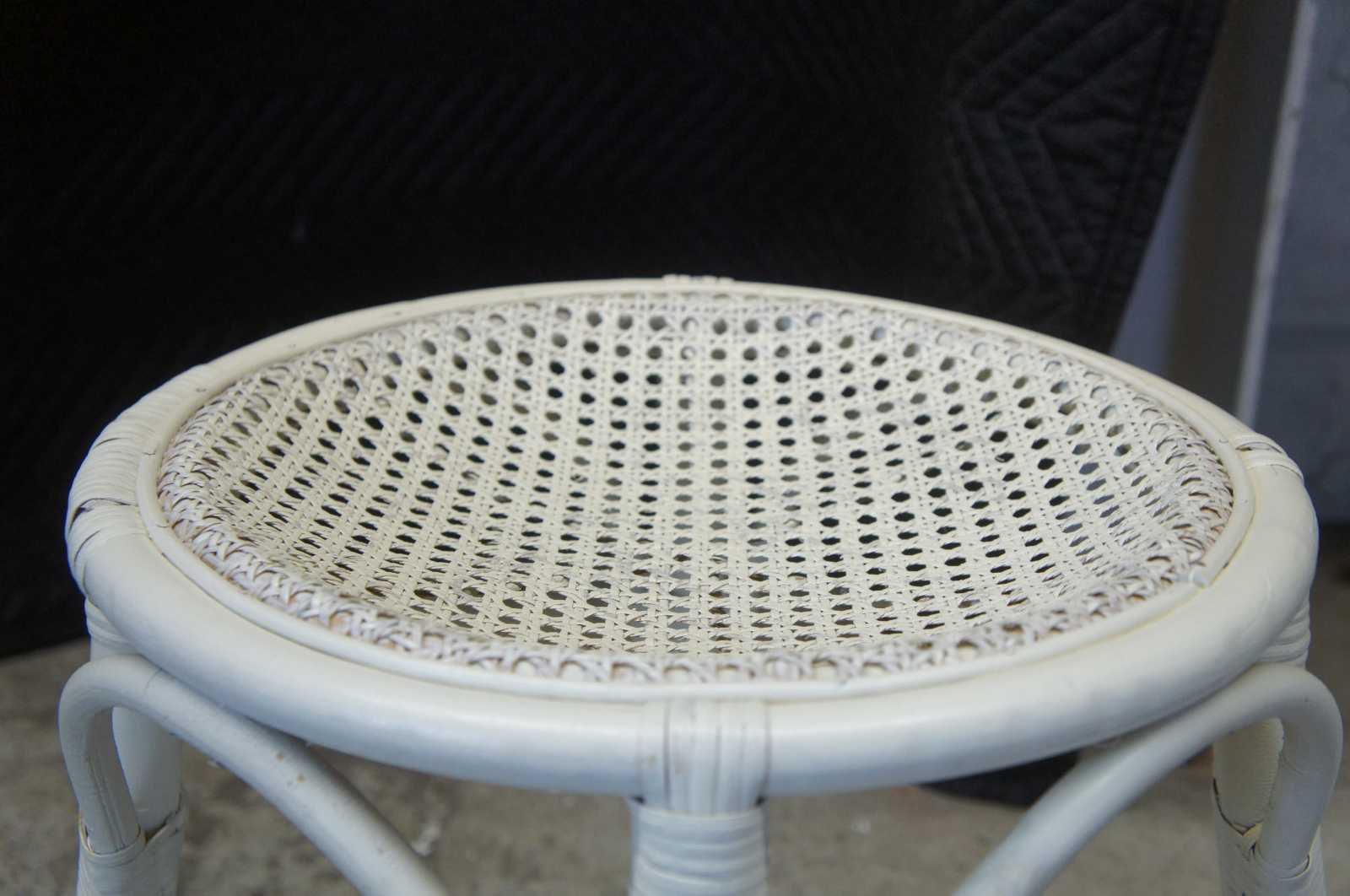 Antique wicker and bamboo caned stool or vanity seat.