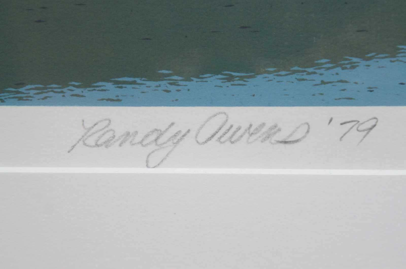 “Randy Owens was born in Baltimore, Maryland on July 24, 1955 and grew up in Vienna, Virginia. Randy majored in fine art at Northern Virginia Community College and shortly pursued a career as a tennis professional. Randy was drawn to the vibrant colors, clean form and crisp edges of serigraphy (silkscreen printmaking) and after being introduced to auto racing in 1978, Randy began making serigraphs of motor racing subjects in his own unique style.